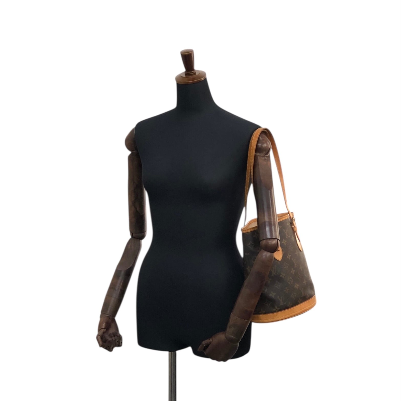 LOUIS VUITTON ルイヴィトン モノグラム ハンドバッグ ブラウン PVC レザー プチバケット M42238 vintage ヴィンテージ オールド wxysxm