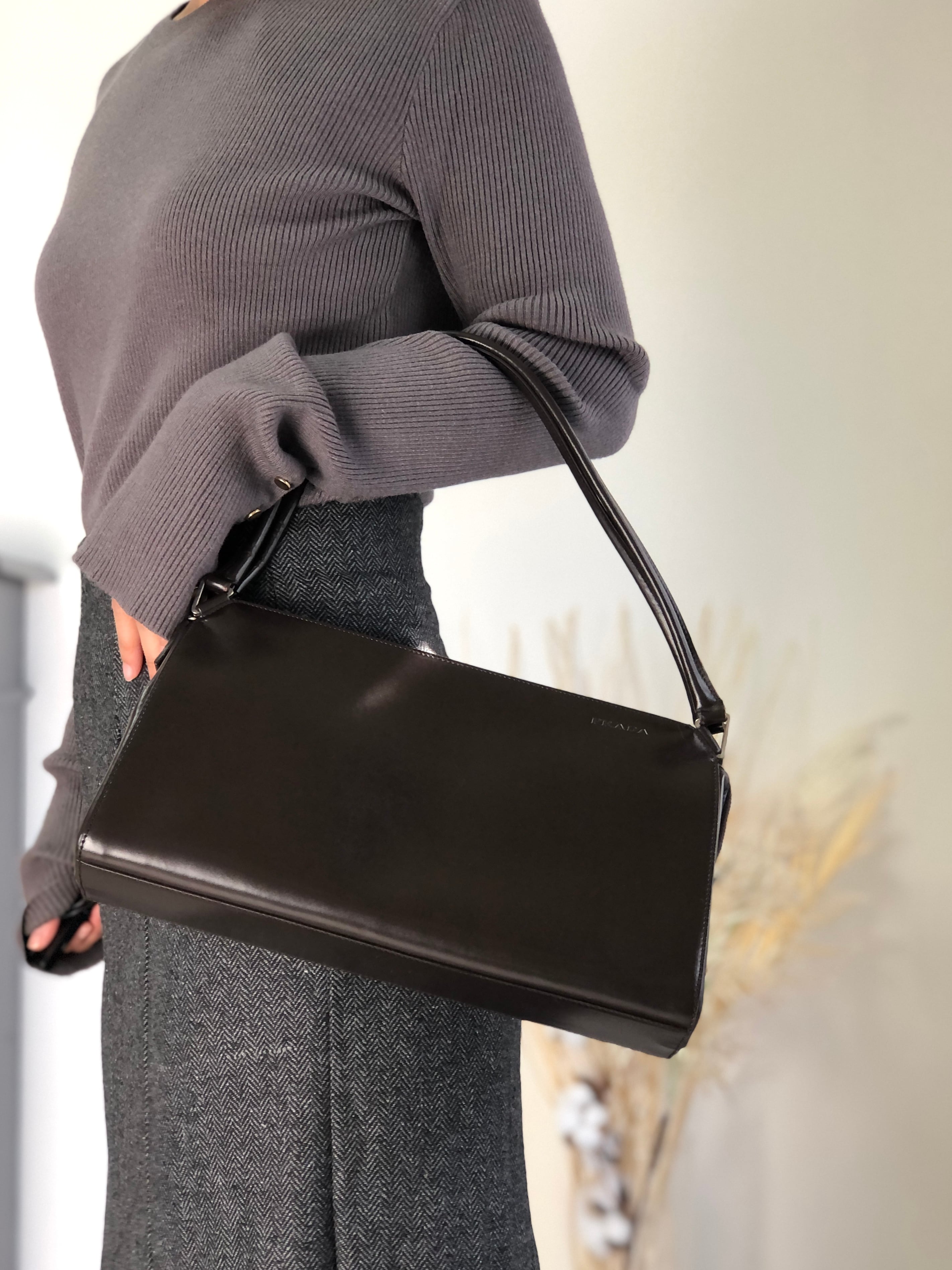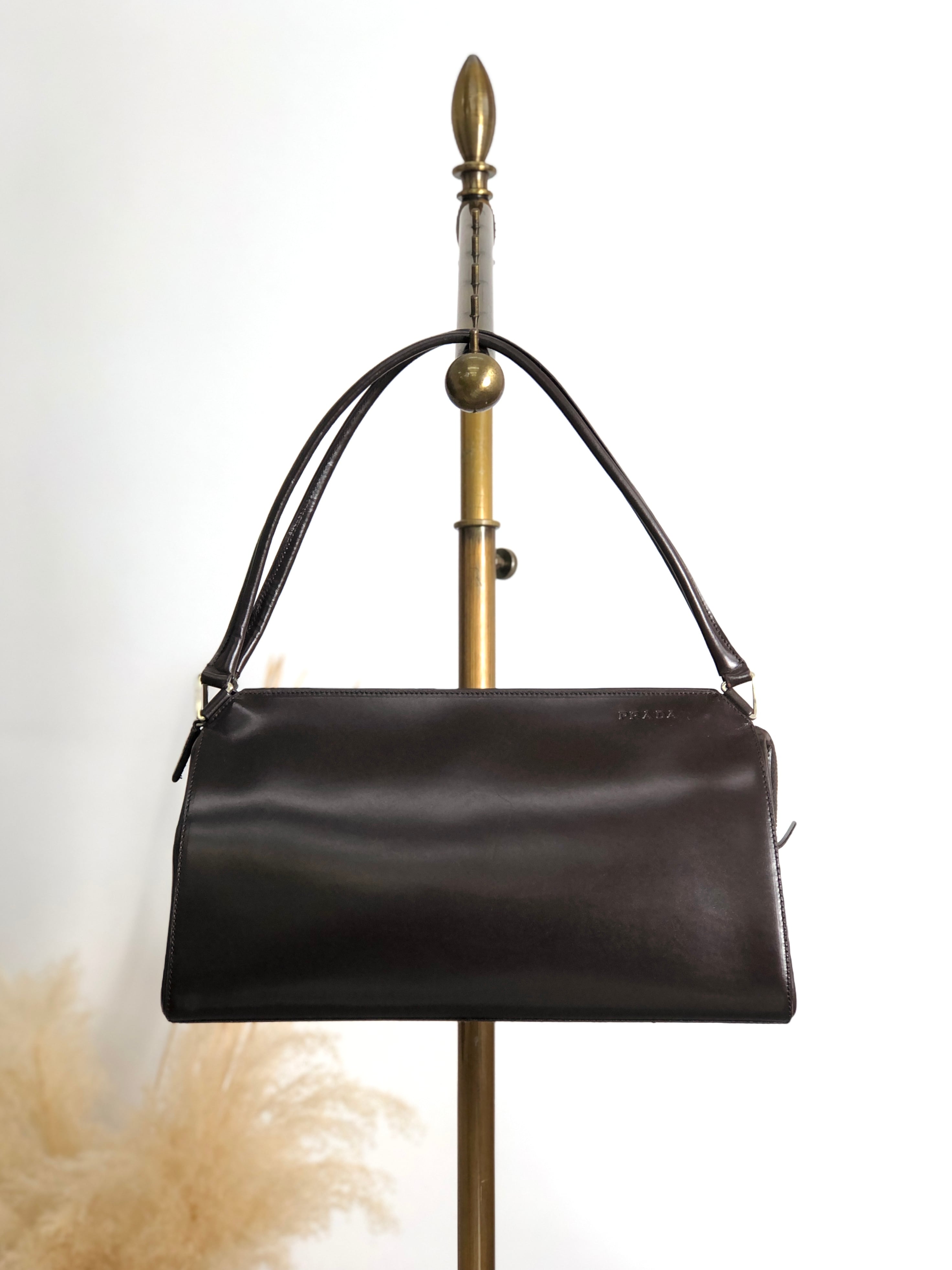 PRADA プラダ ショルダーバッグ ダークブラウン ロゴ レザー vintage ヴィンテージ オールド vrh6c7