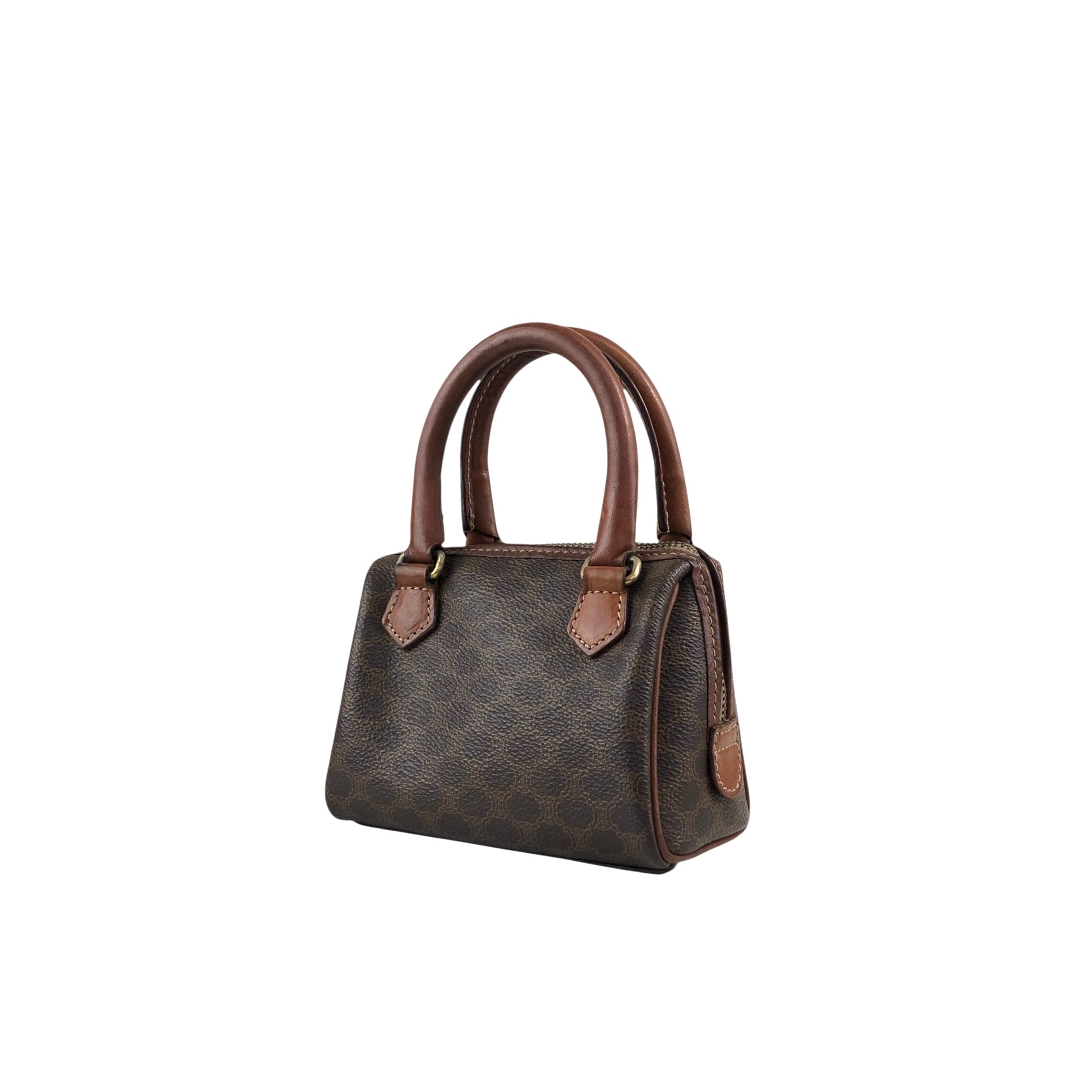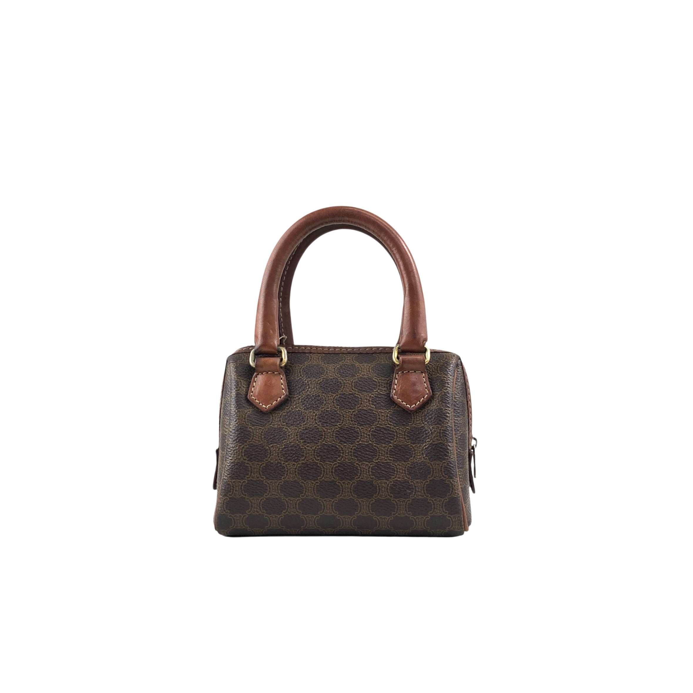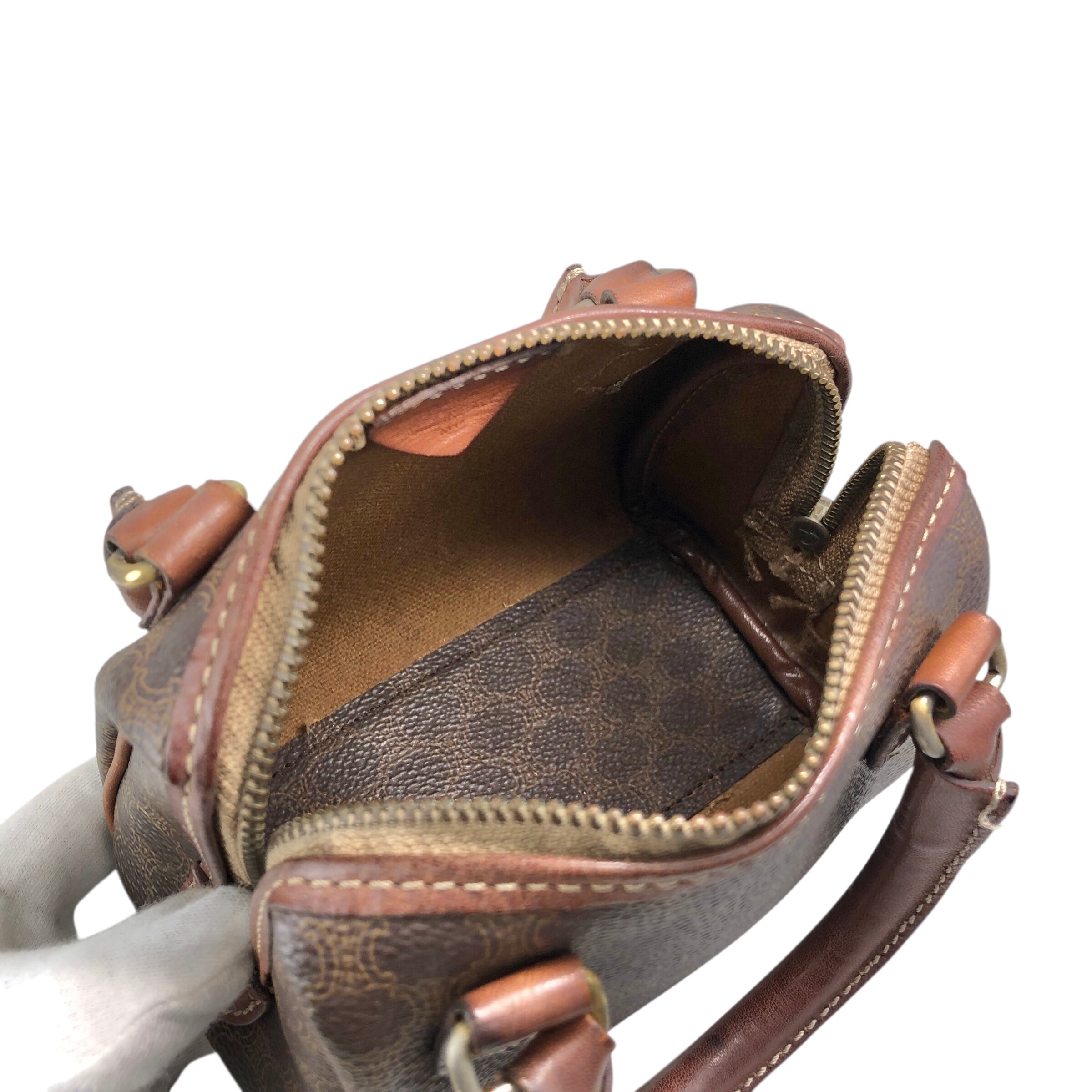 CELINE セリーヌ マカダム ショルダーバッグ ブラウン PVC レザー マイクロボストン 2way vintage ヴィンテージ オールド bnscrs