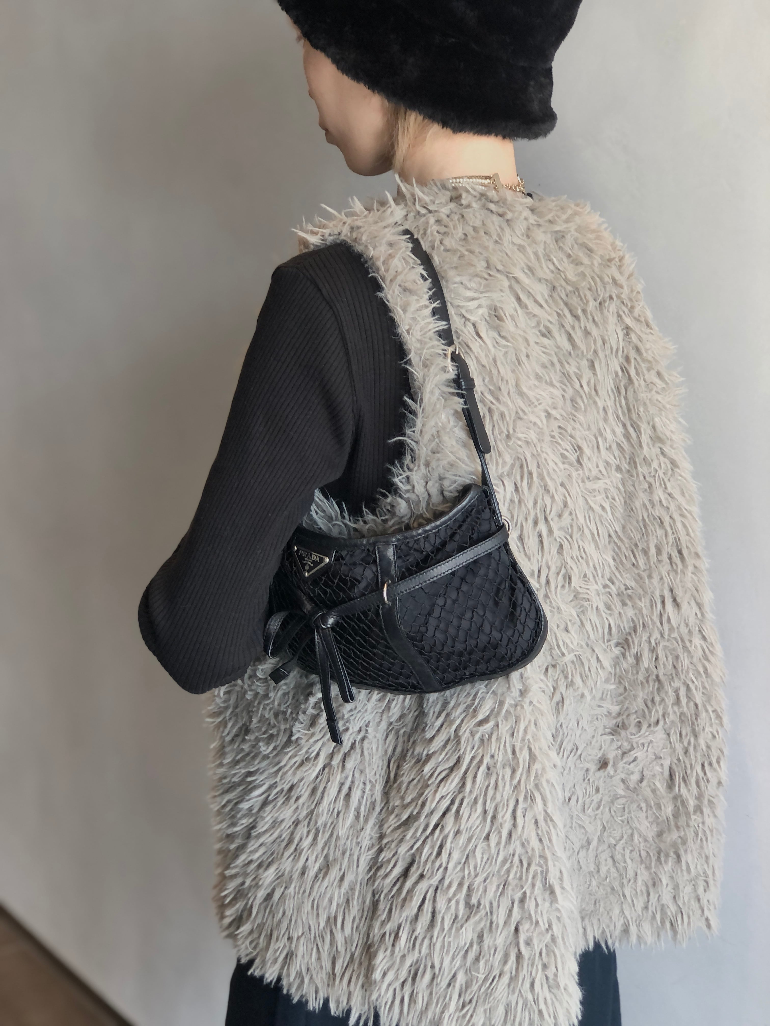 PRADA プラダ ショルダーバッグ ブラック トライアングルロゴ ナイロン メッシュ セミショルダーバッグ vintage ヴィンテージ オールド 7hmnip
