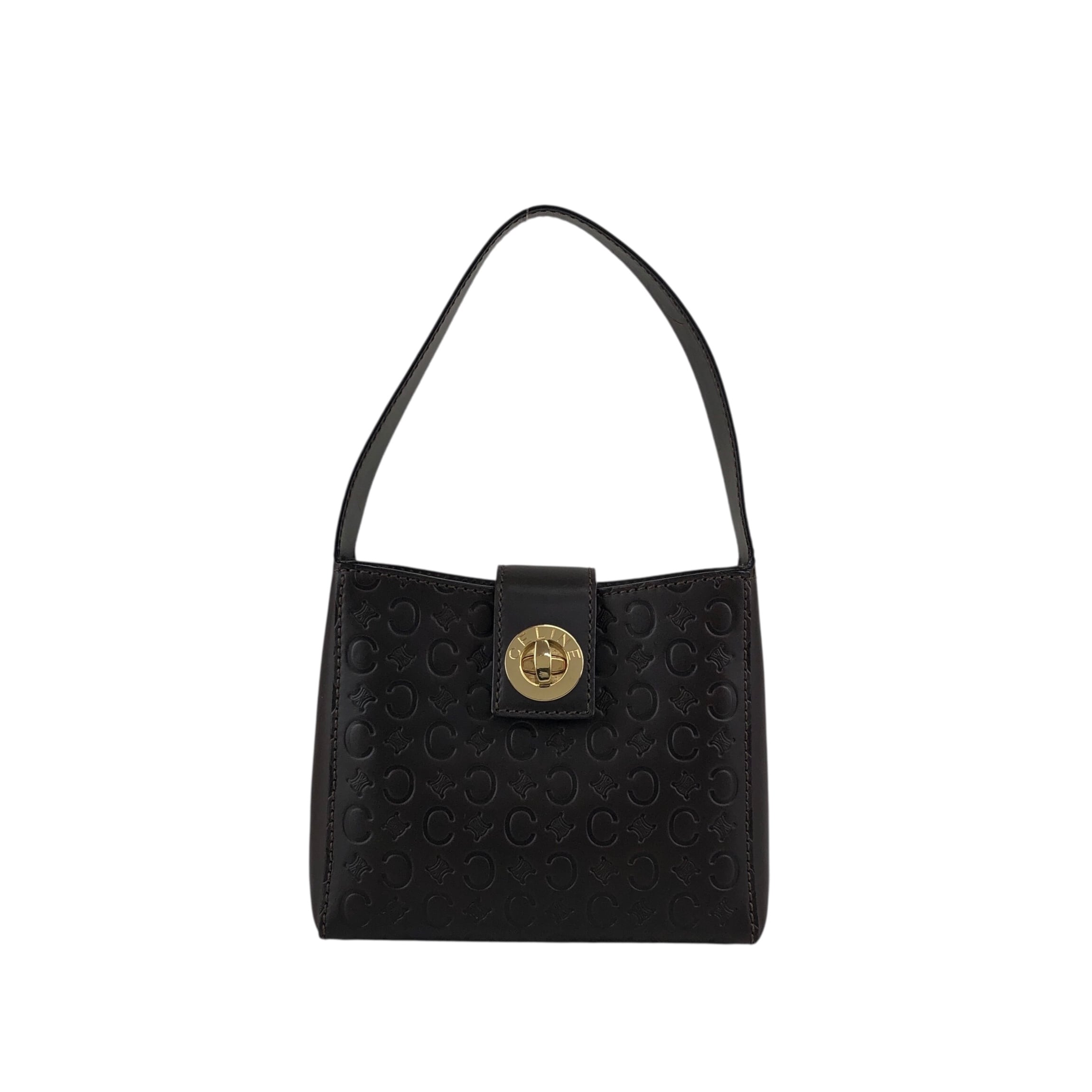 CELINE セリーヌ Cマカダム ハンドバッグ ブラウン ターンロック レザー ミニバッグ vintage ヴィンテージ オールド 2h8bw4