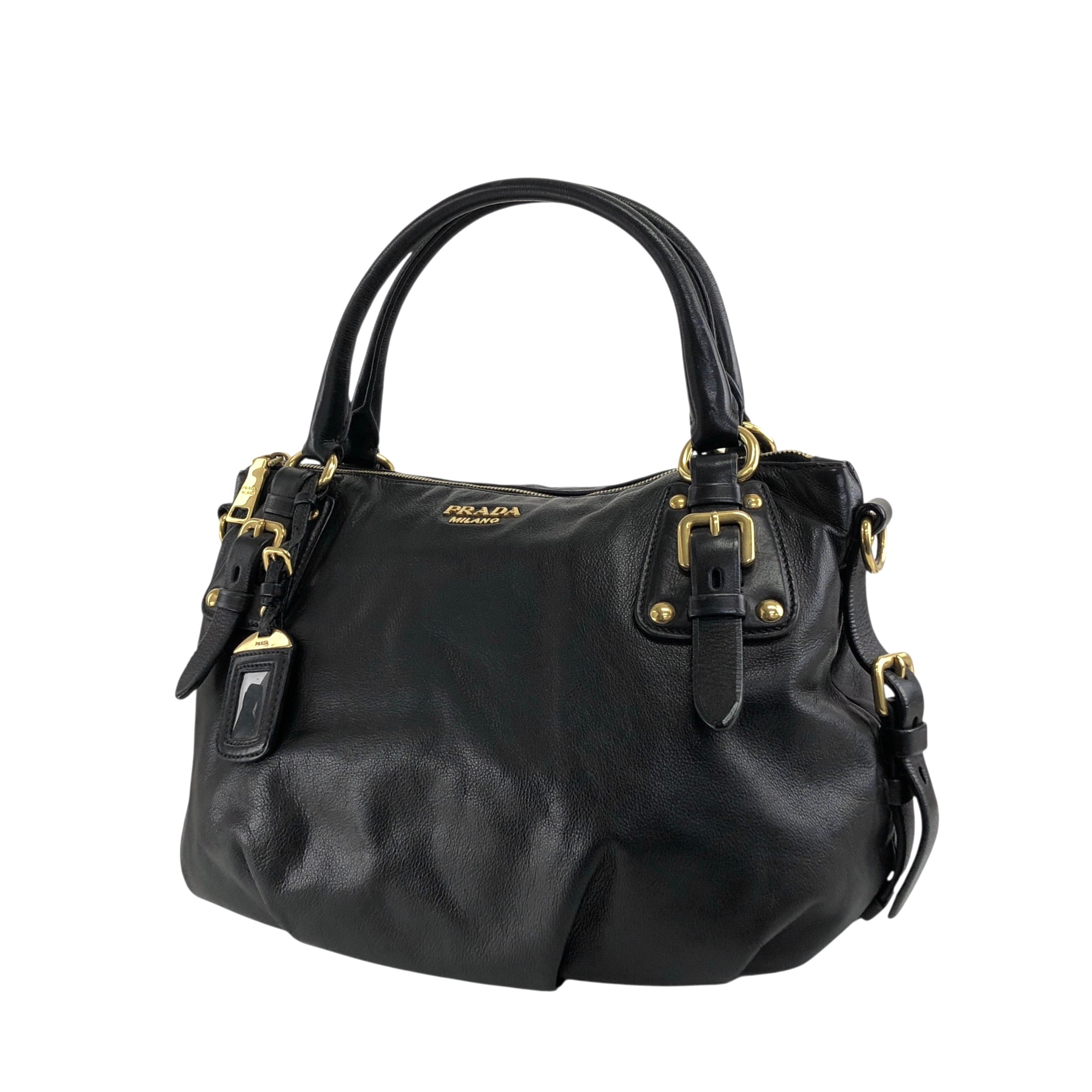 PRADA プラダ ハンドバッグ ブラック ロゴ レザー ラウンド vintage ヴィンテージ オールド jkn44z