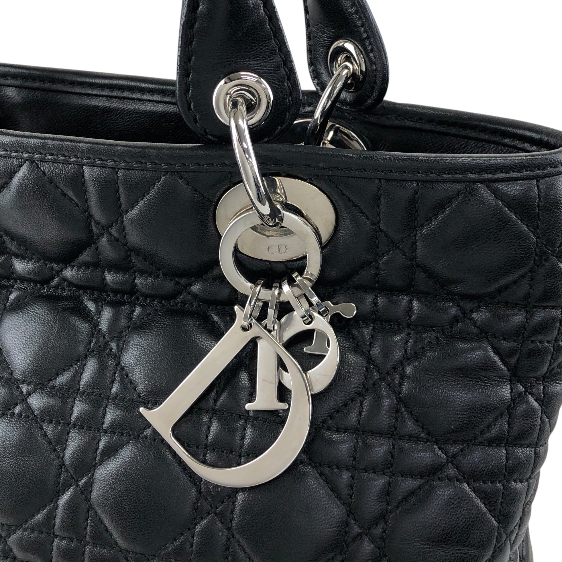 Christian Dior クリスチャン ディオール レディディオール ハンドバッグ ブラック カナージュ ロゴチャーム レザー vintage ヴィンテージ オールド ymgxfh