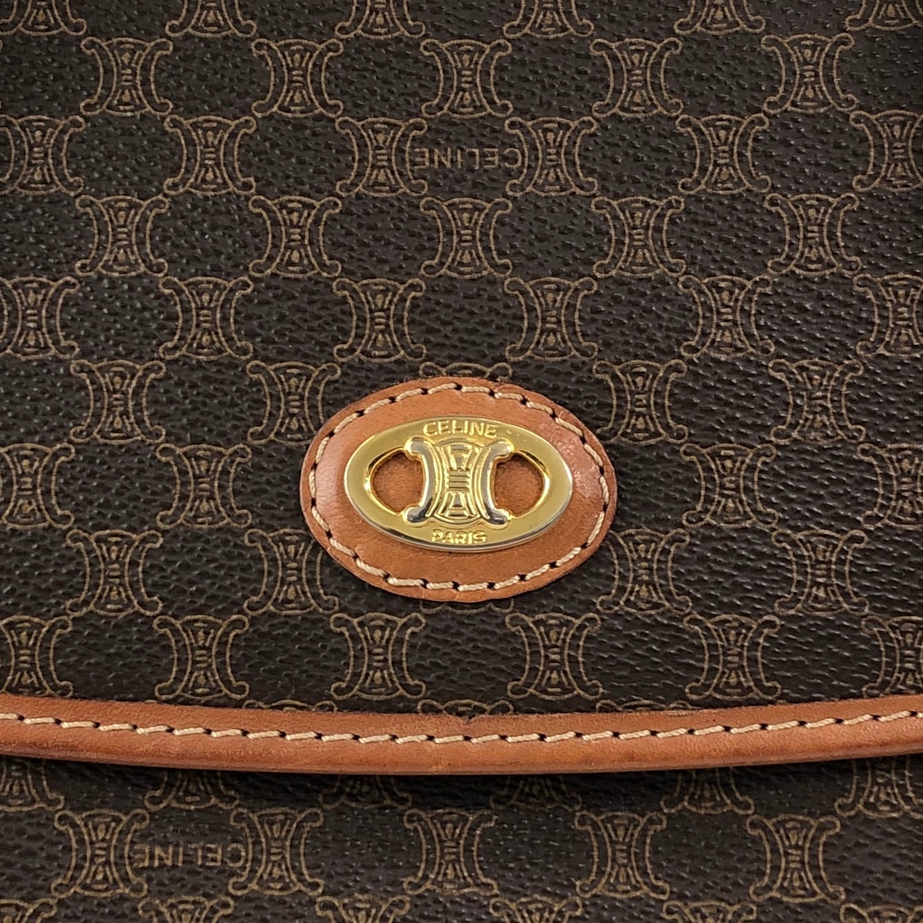 CELINE セリーヌ マカダム ハンドバッグ ブラウン PVCレザー vintage ヴィンテージ オールド 5fmrk2