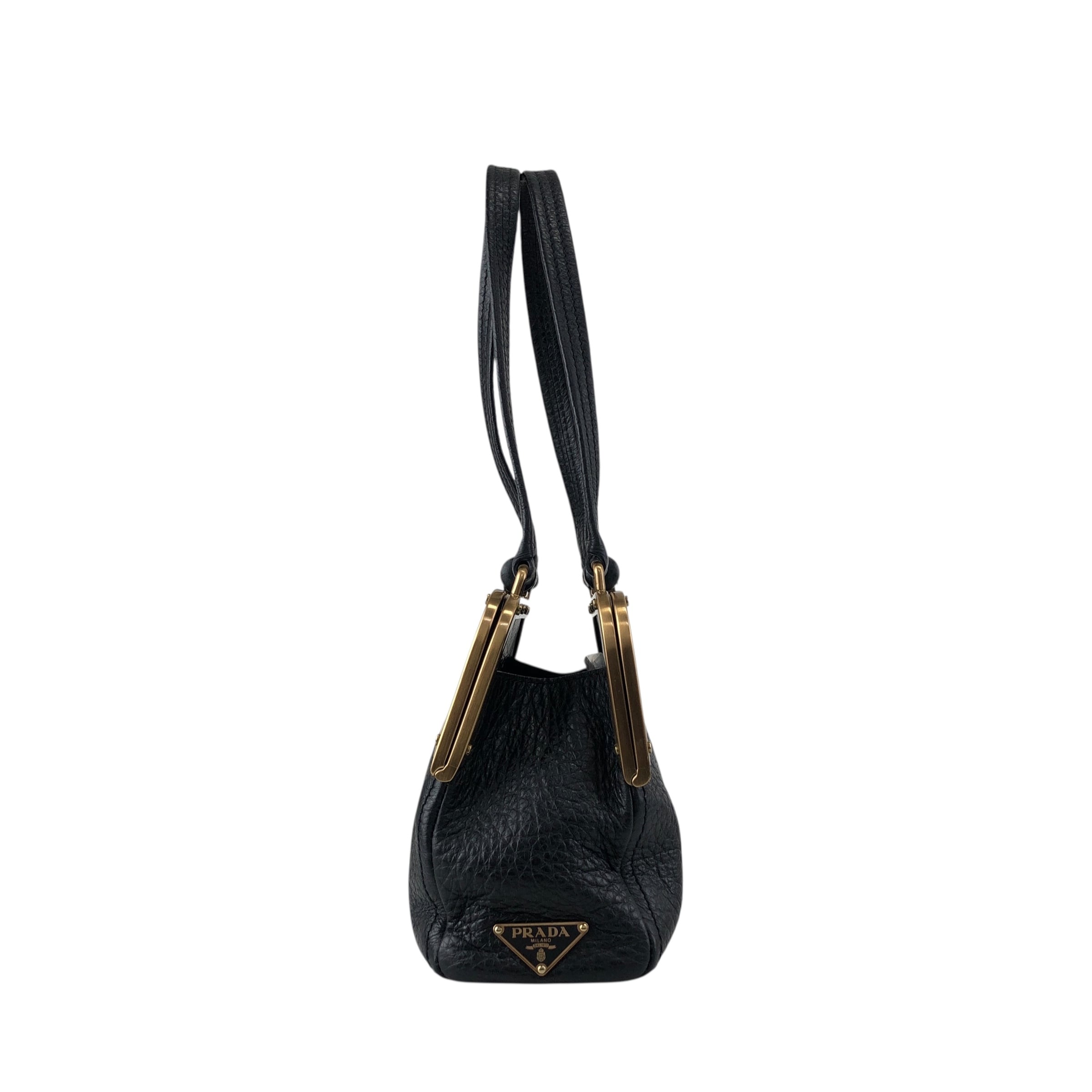 PRADA プラダ ハンドバッグ ブラック トライアングルロゴ レザー がま口 vintage ヴィンテージ オールド epwvbd