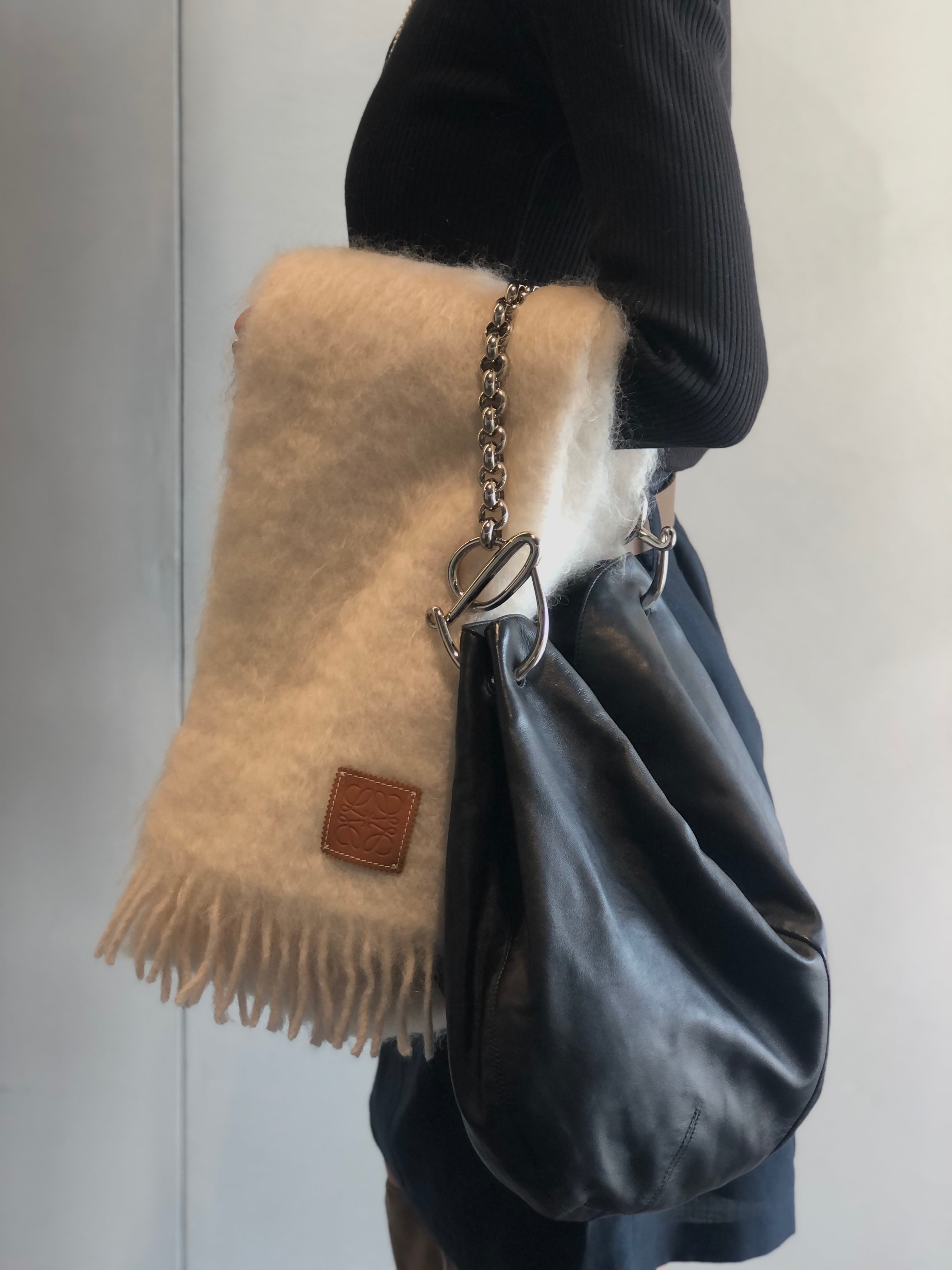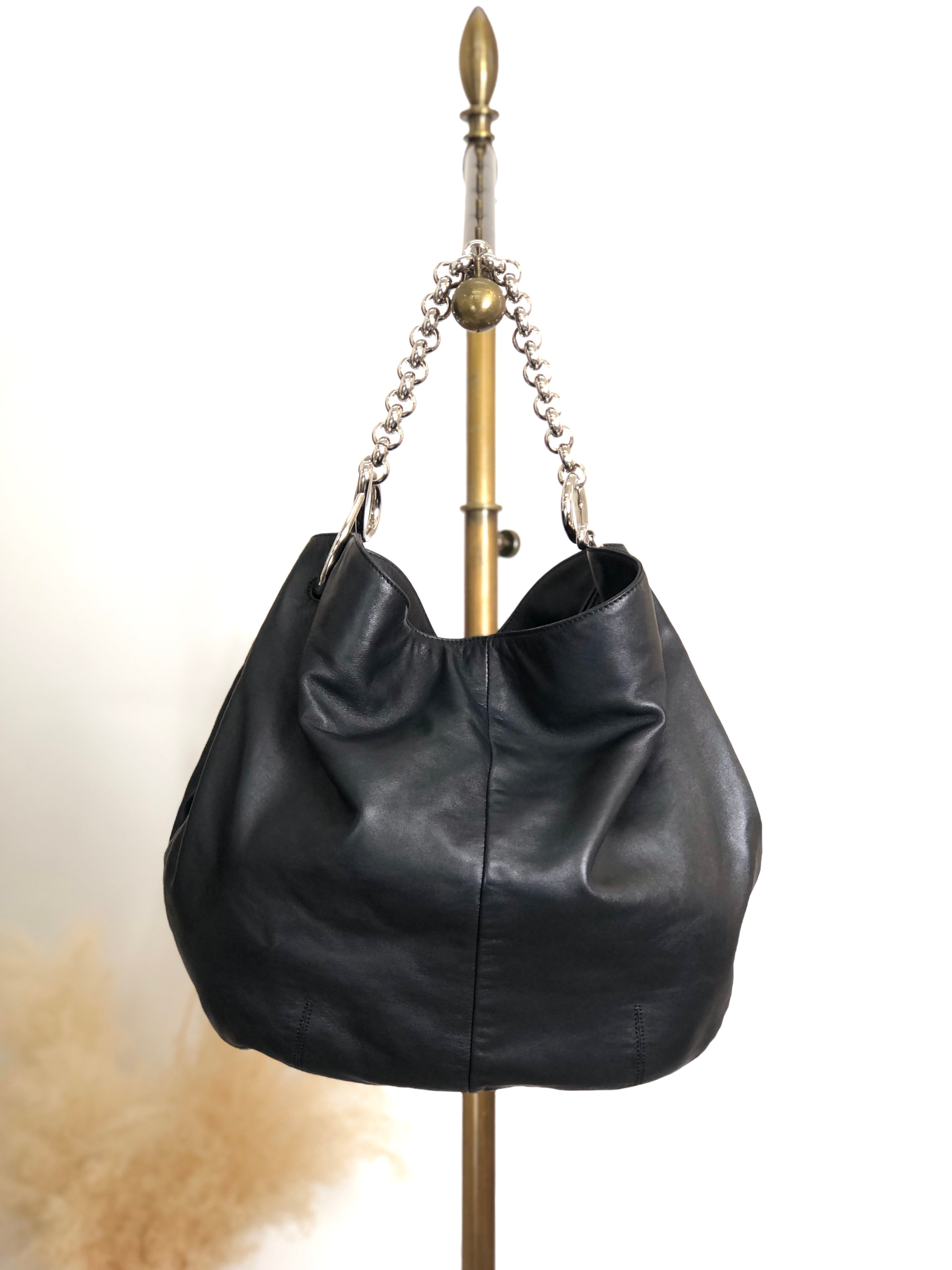 LOEWE ロエベ ショルダーバッグ ブラック ロゴ レザー チェーン ホーボーバッグ vintage ヴィンテージ オールド zm3zxy