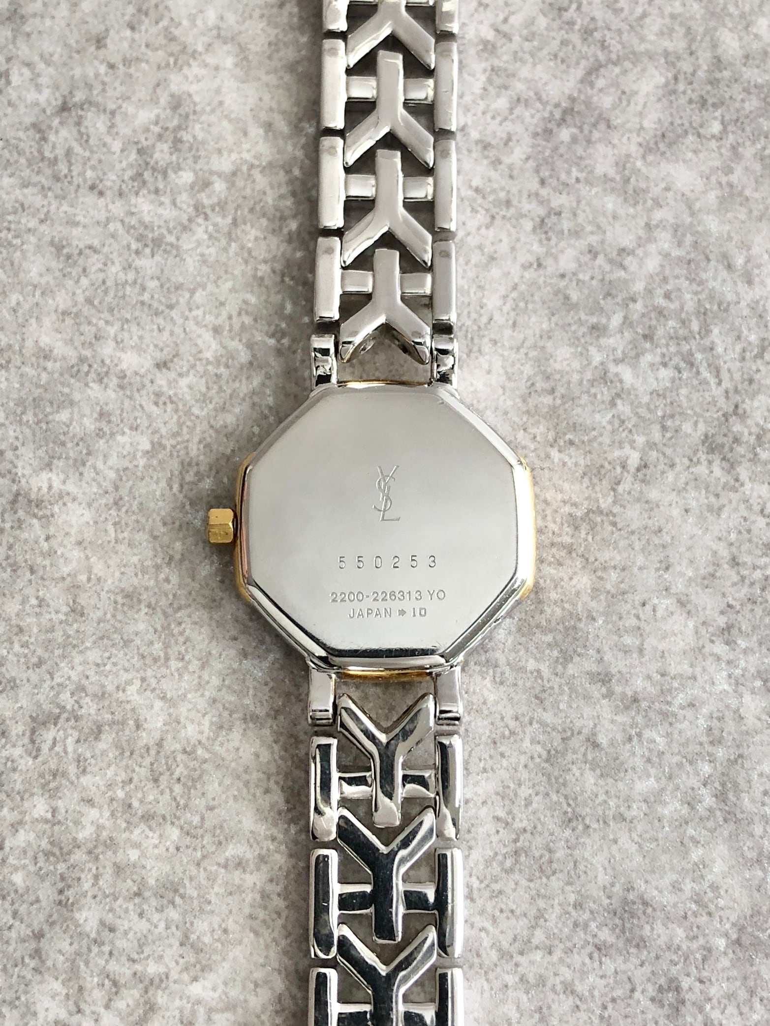 Yves Saint Laurent イヴ・サンローラン 腕時計 シルバー ゴールド YSL オクタゴン ステンレススチール クウォーツ 2200-226313 YO vintage ヴィンテージ オールド bpd4zh