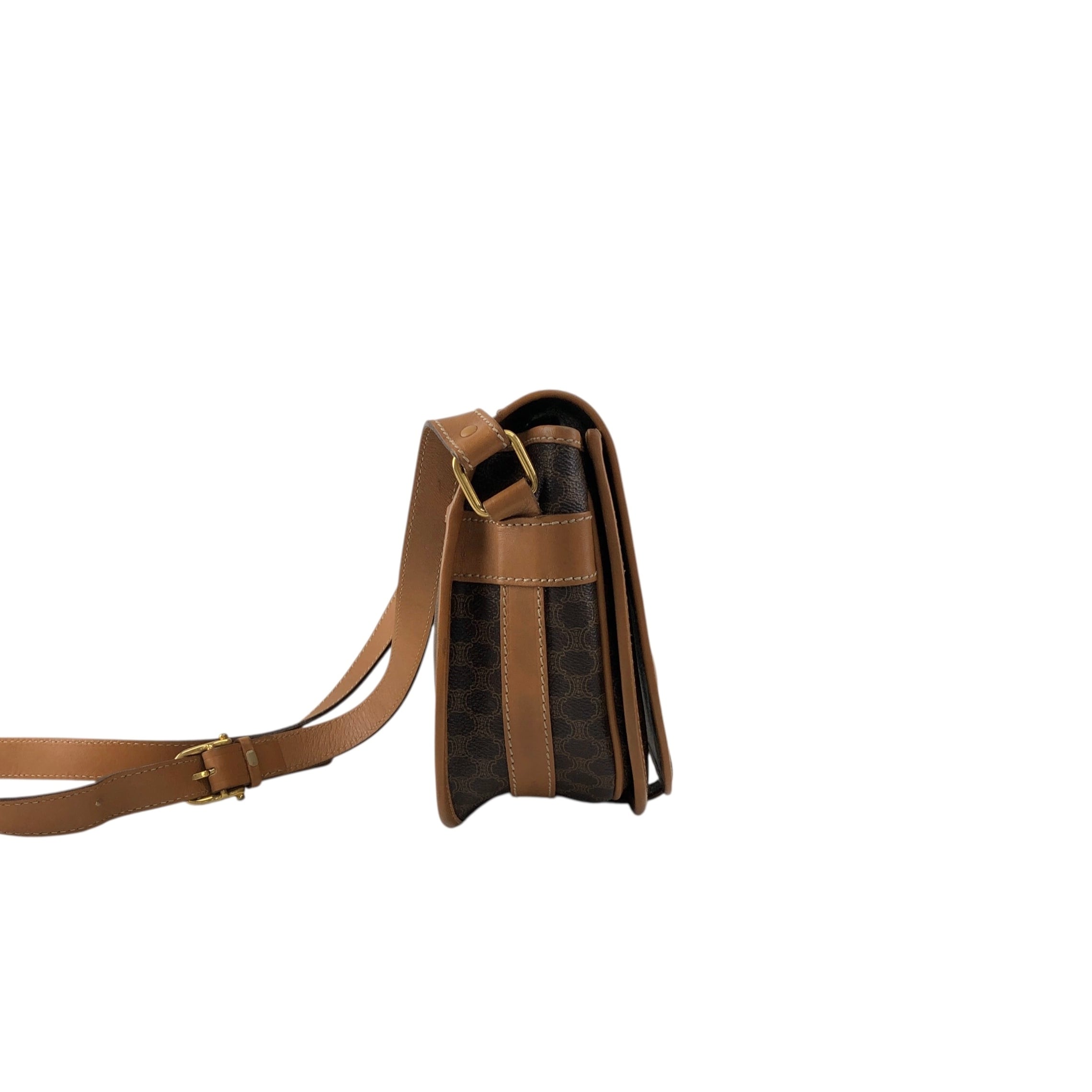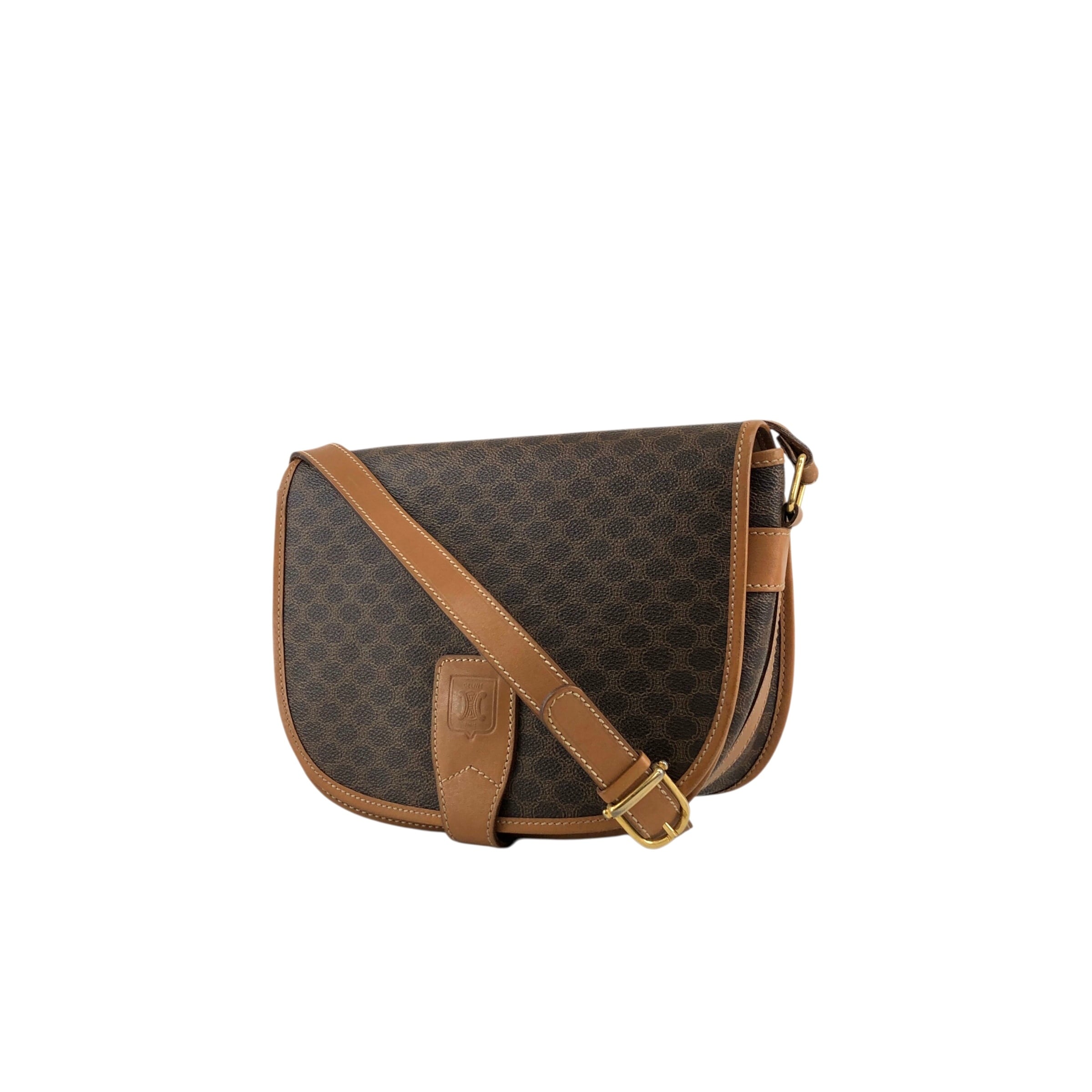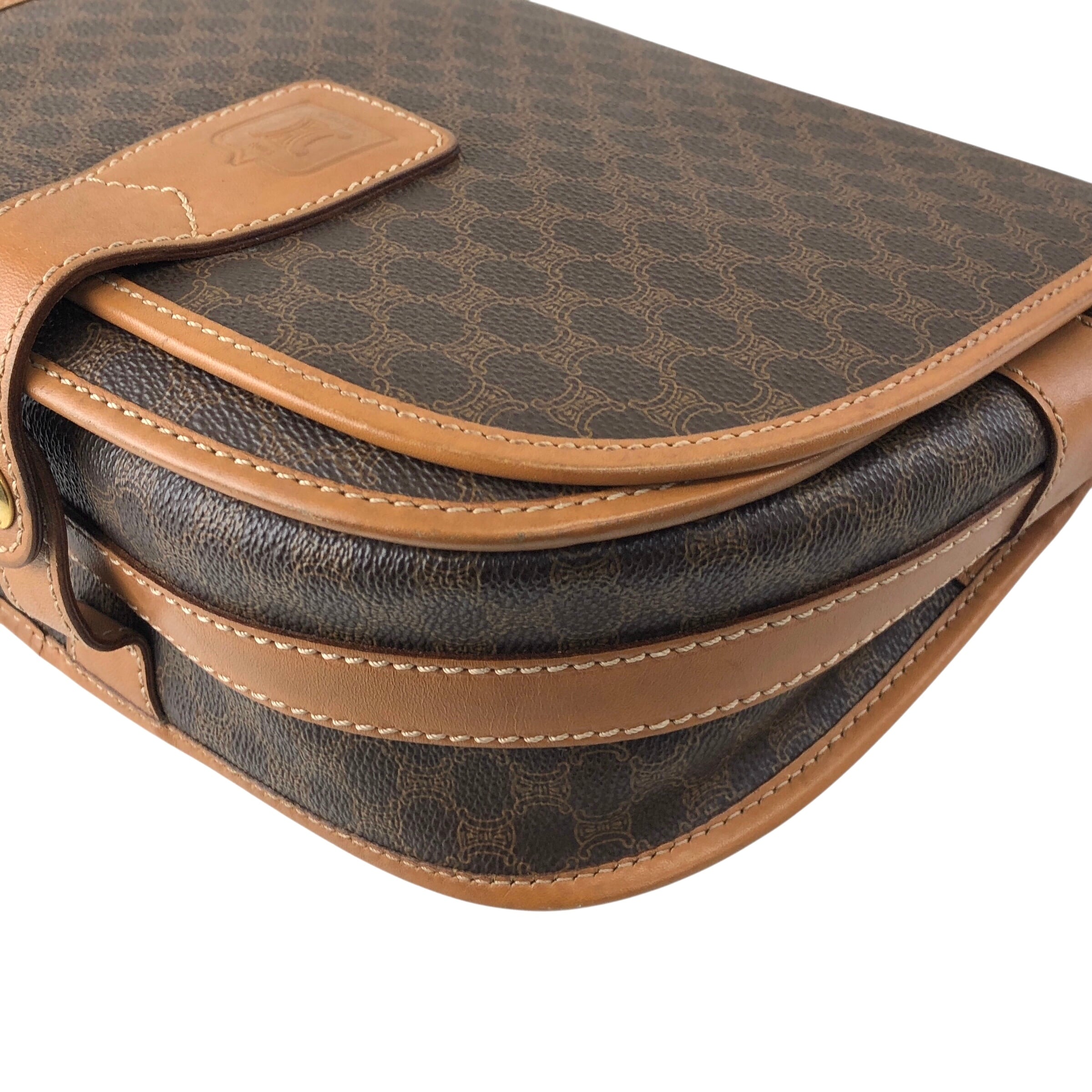 CELINE セリーヌ マカダム ショルダーバッグ ブラウン ブラゾン型押し PVCレザー vintage ヴィンテージ オールド z58jxy
