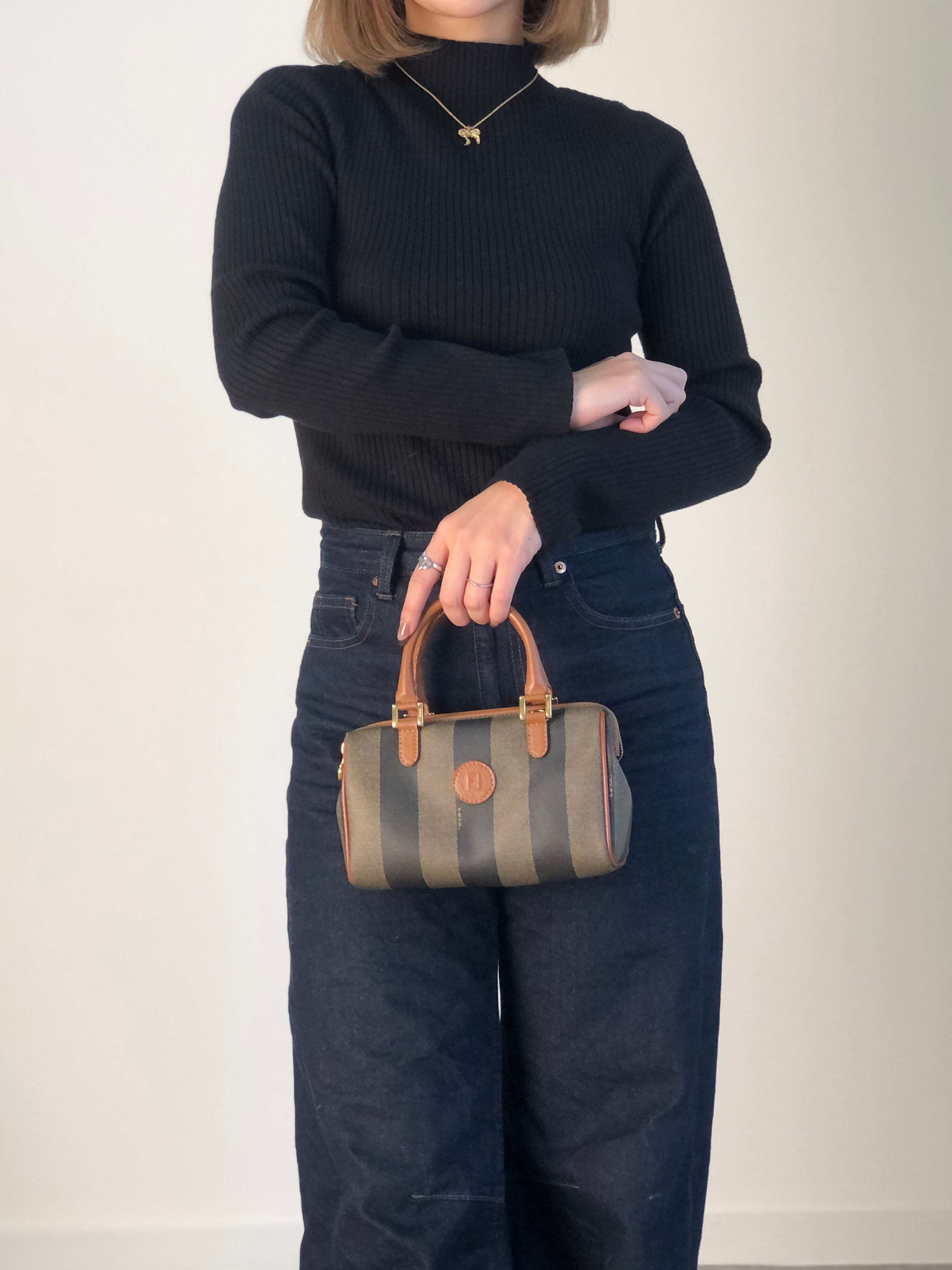 FENDI フェンディ ぺカン ハンドバッグ ブラウン FF PVCレザー ミニボストン vintage ヴィンテージ オールド bcu358