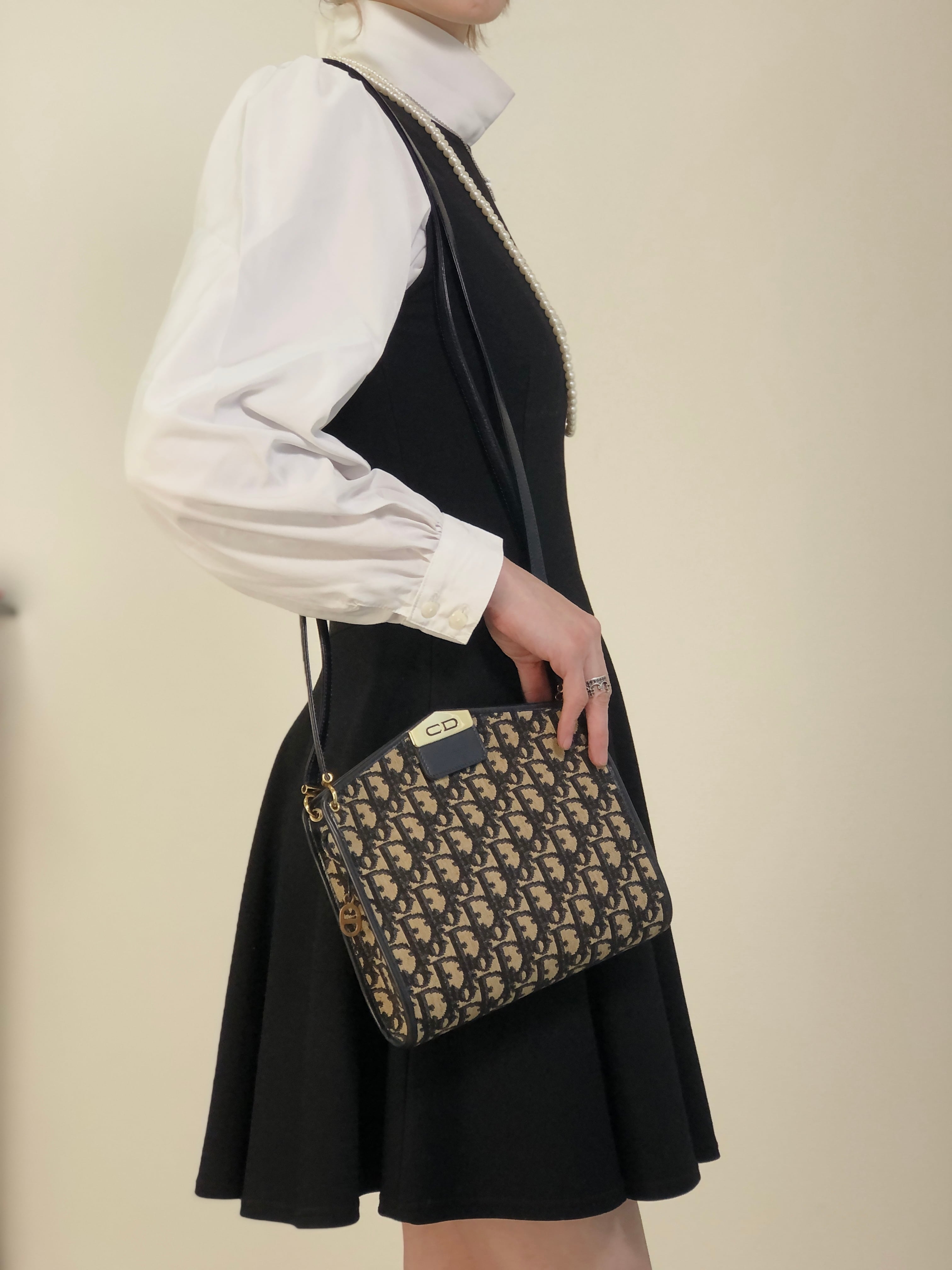 Christian Dior クリスチャン ディオール トロッター ショルダーバッグ ネイビー CD ジャガード vintage ヴィンテージ オールド 2vvpv4
