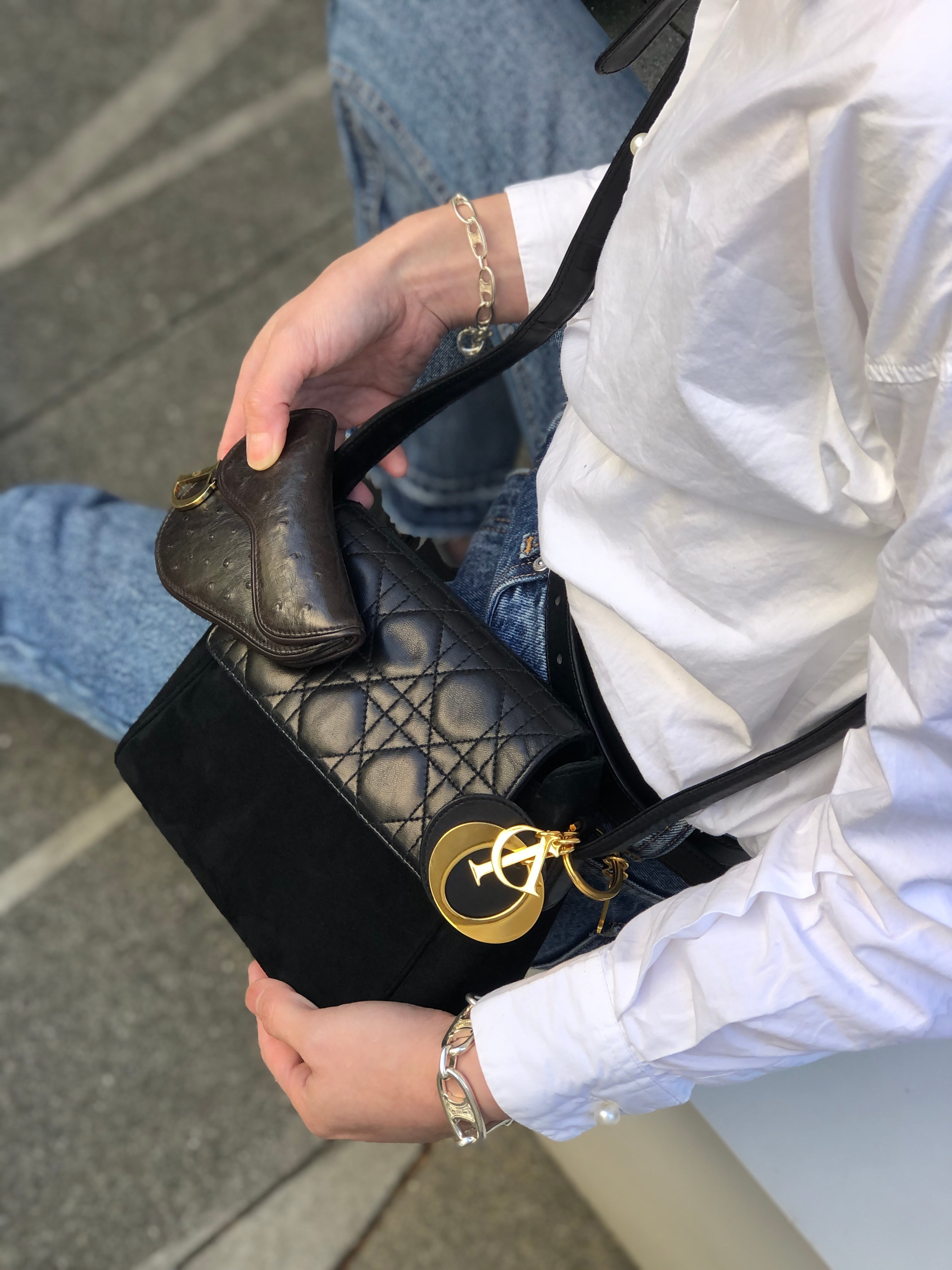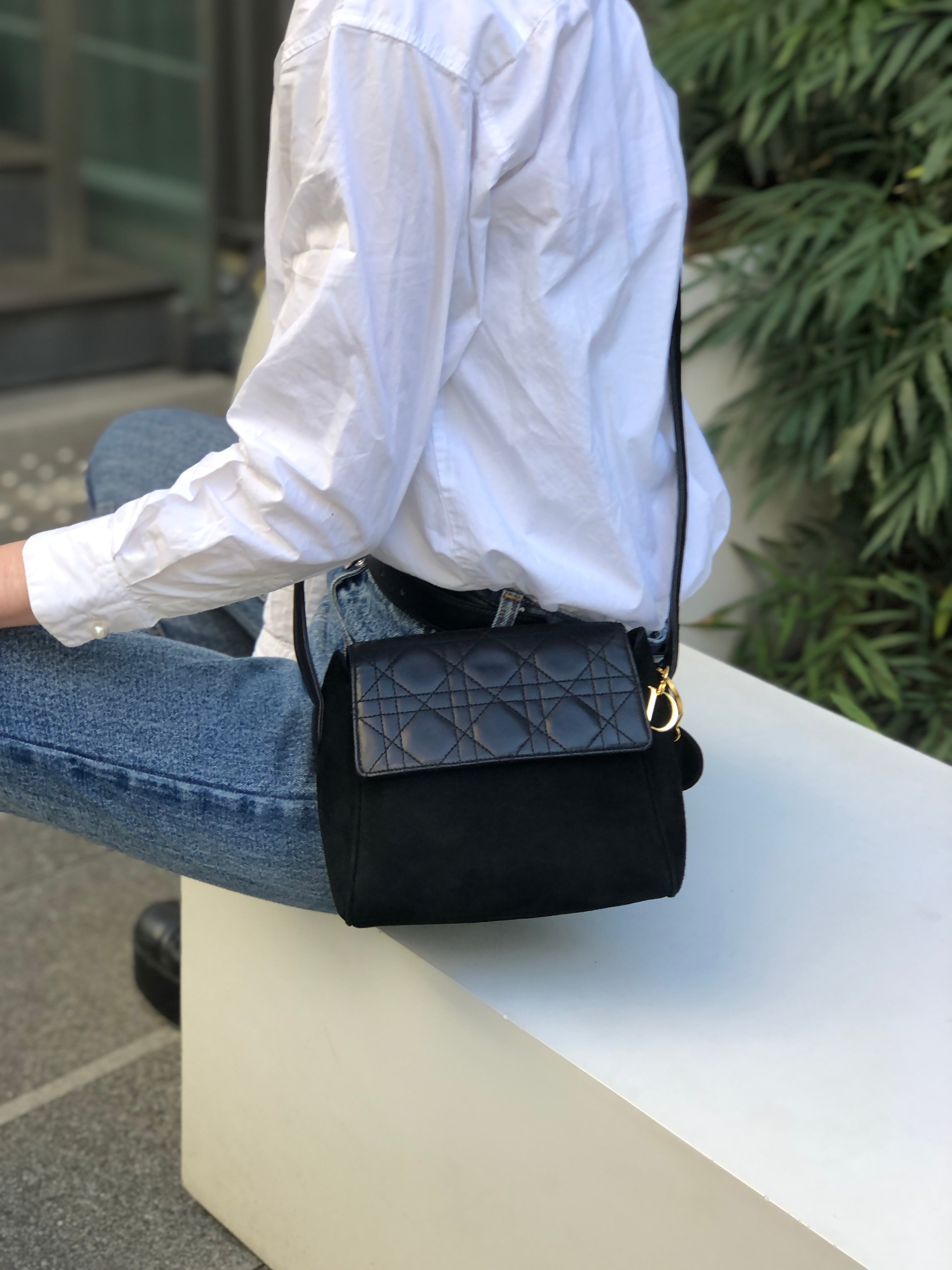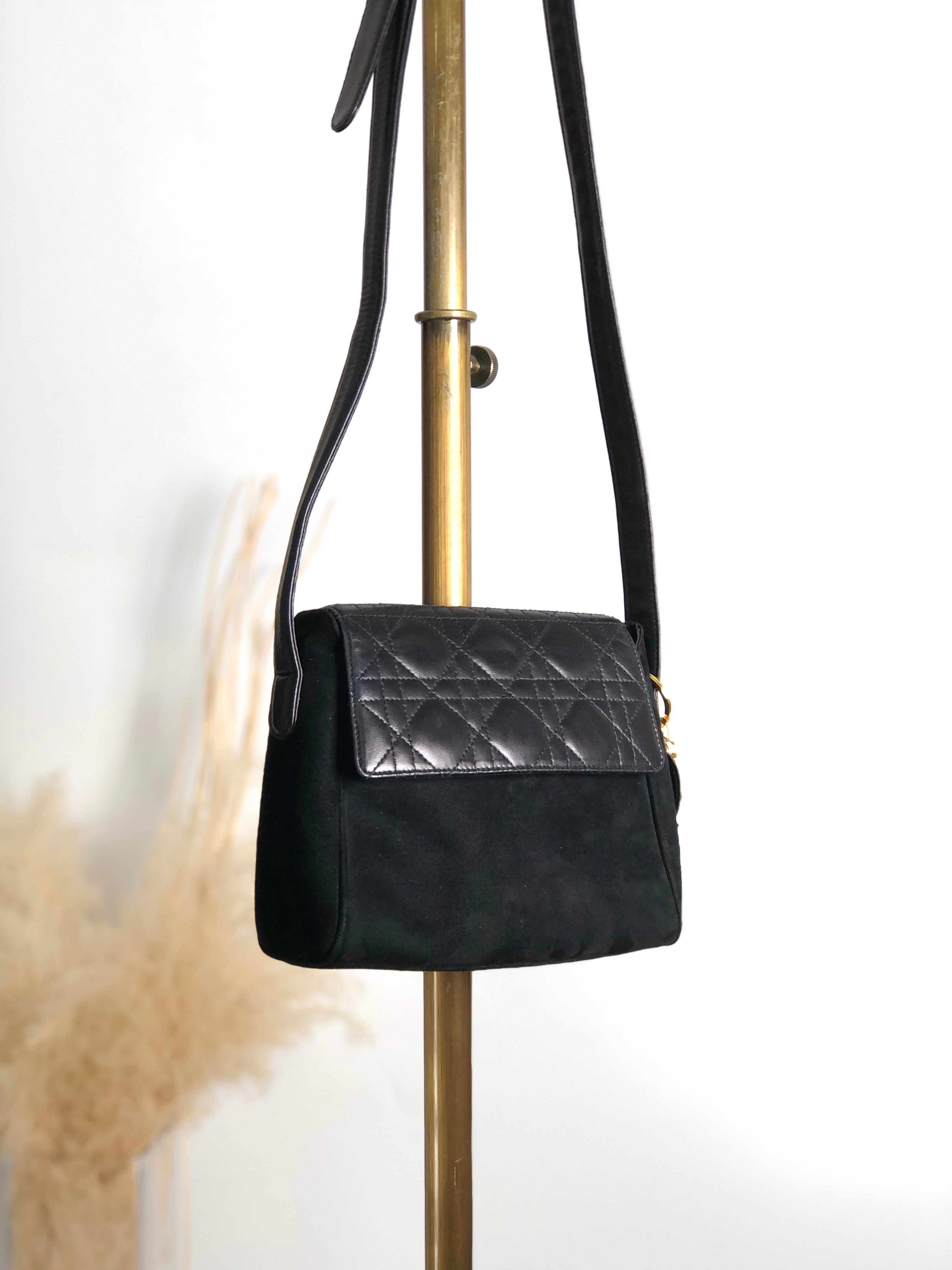 Christian Dior クリスチャン ディオール カナージュ ショルダーバッグ ブラック ロゴチャーム スエード コンビレザー vintage ヴィンテージ オールド 8sntxu
