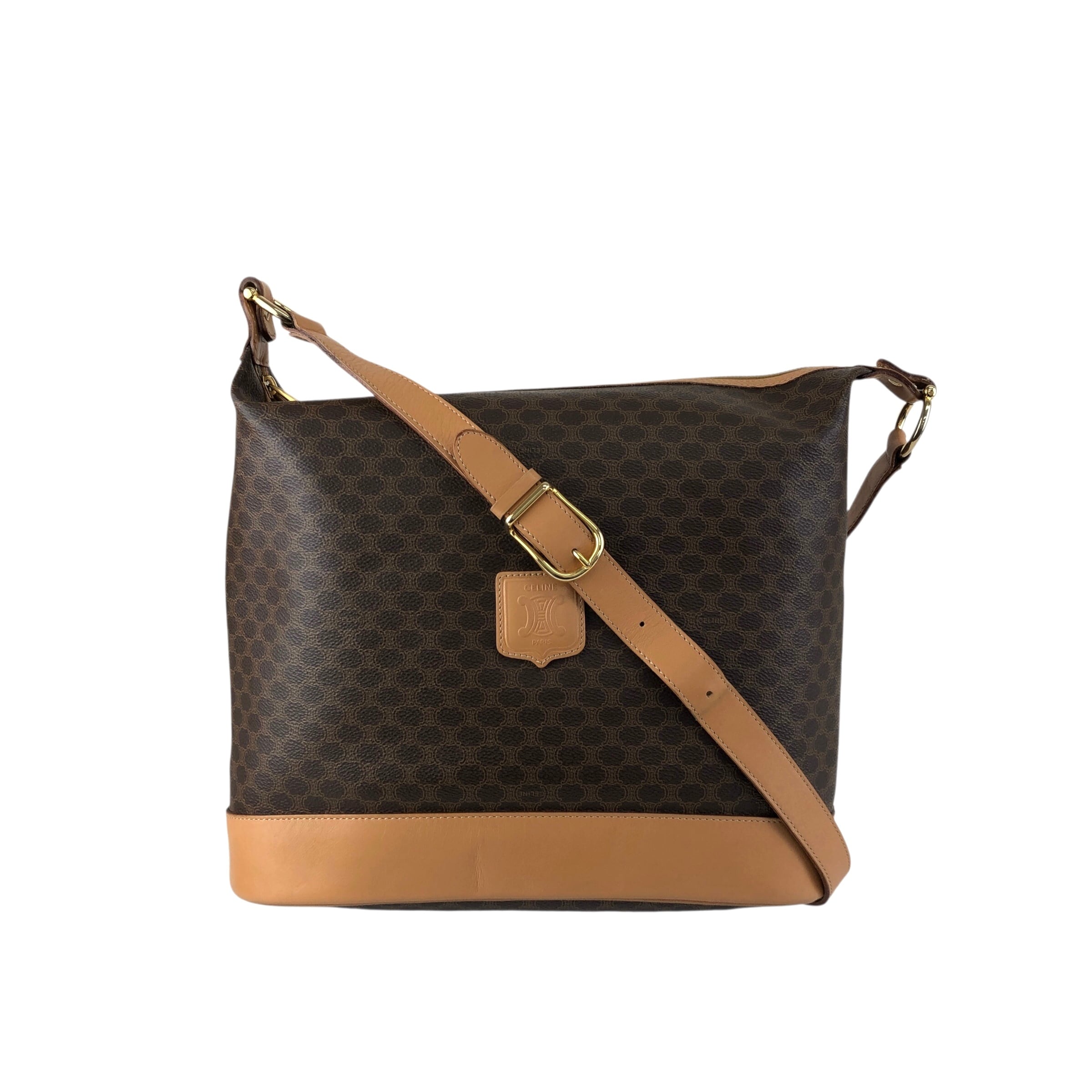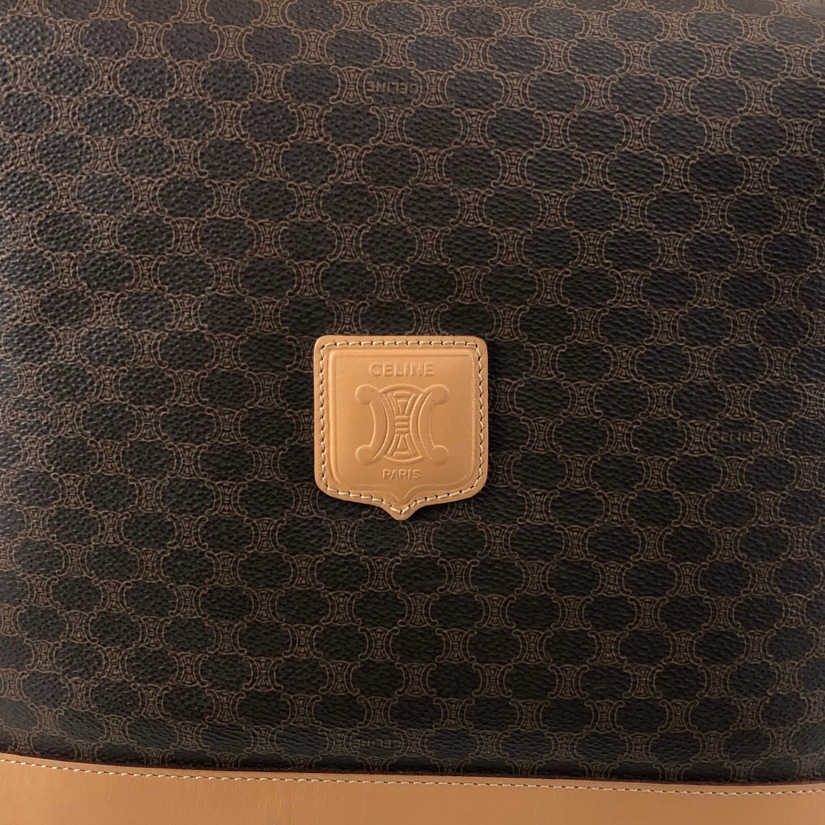 CELINE セリーヌ マカダム ショルダーバッグ ブラウン ブラゾン型押し PVCレザー vintage ヴィンテージ オールド g3s2vt