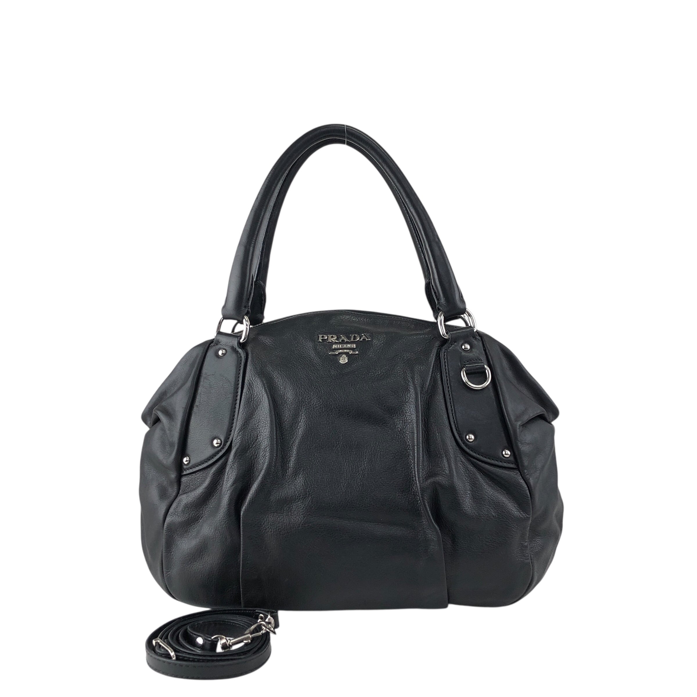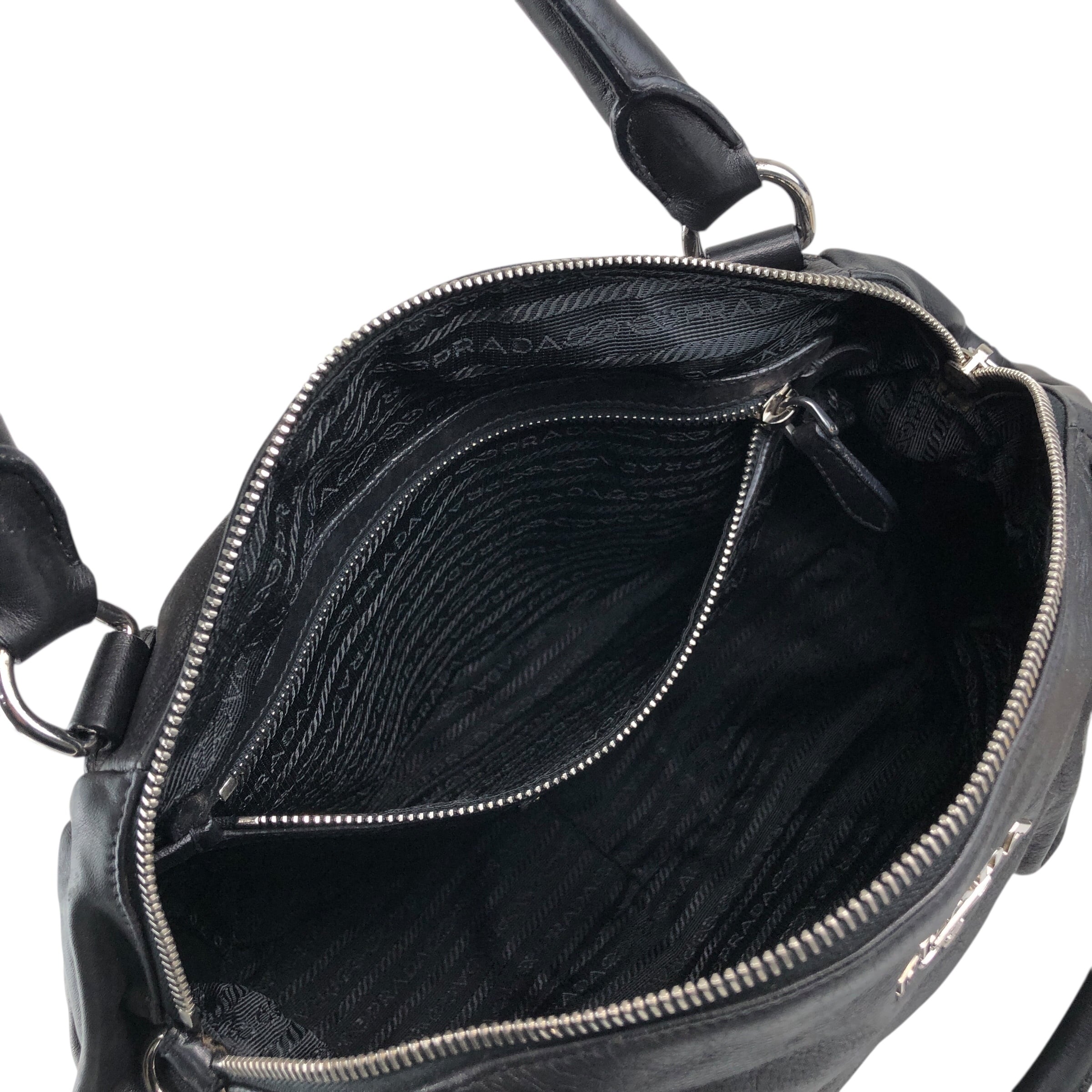 PRADA プラダ ショルダーバッグ ブラック ロゴ レザー 2way ラウンド vintage ヴィンテージ オールド 28pkhx