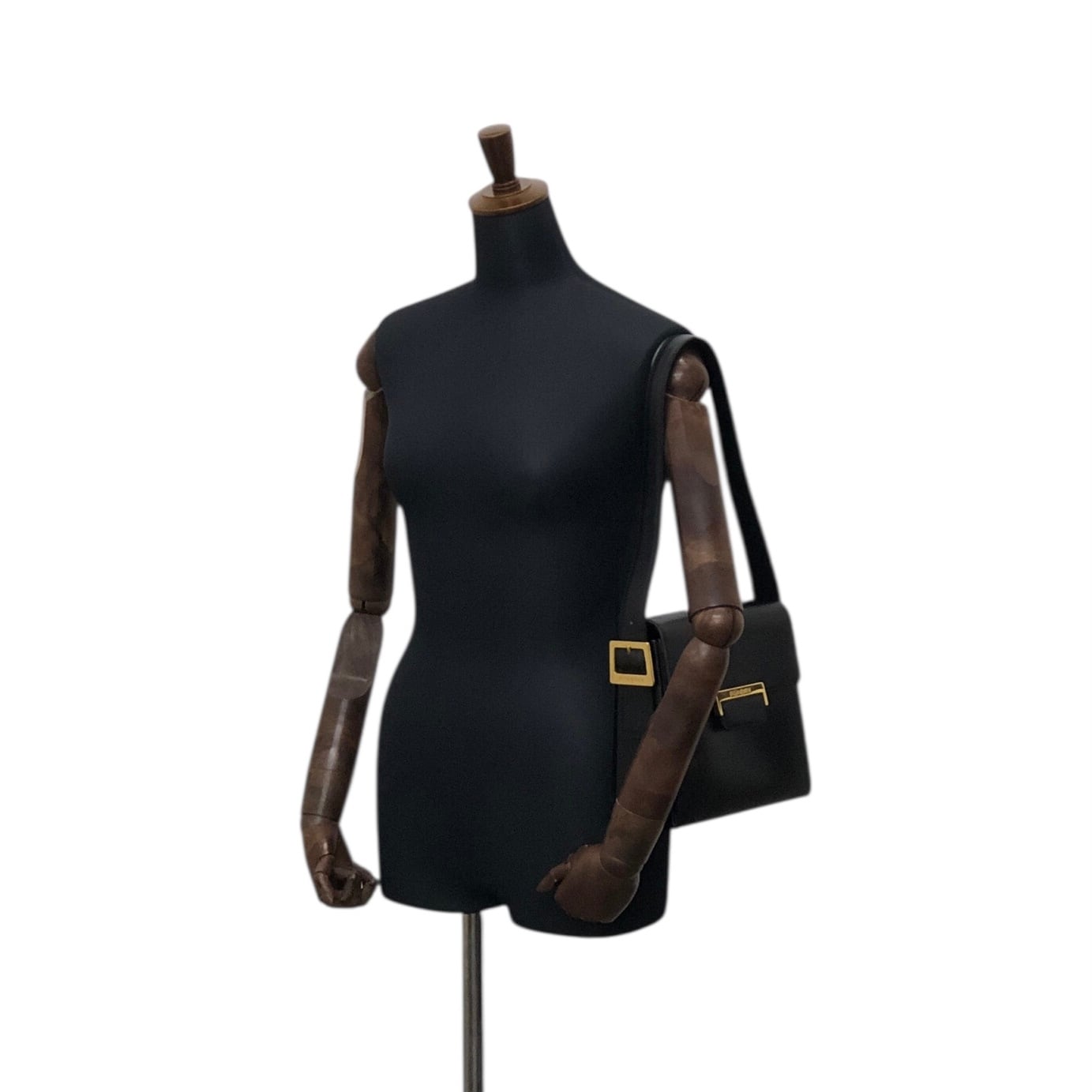 Yves Saint Laurent イヴ・サンローラン ショルダーバッグ ブラック ロゴ レザー セミショルダーバッグ vintage ヴィンテージ オールド avbr5u