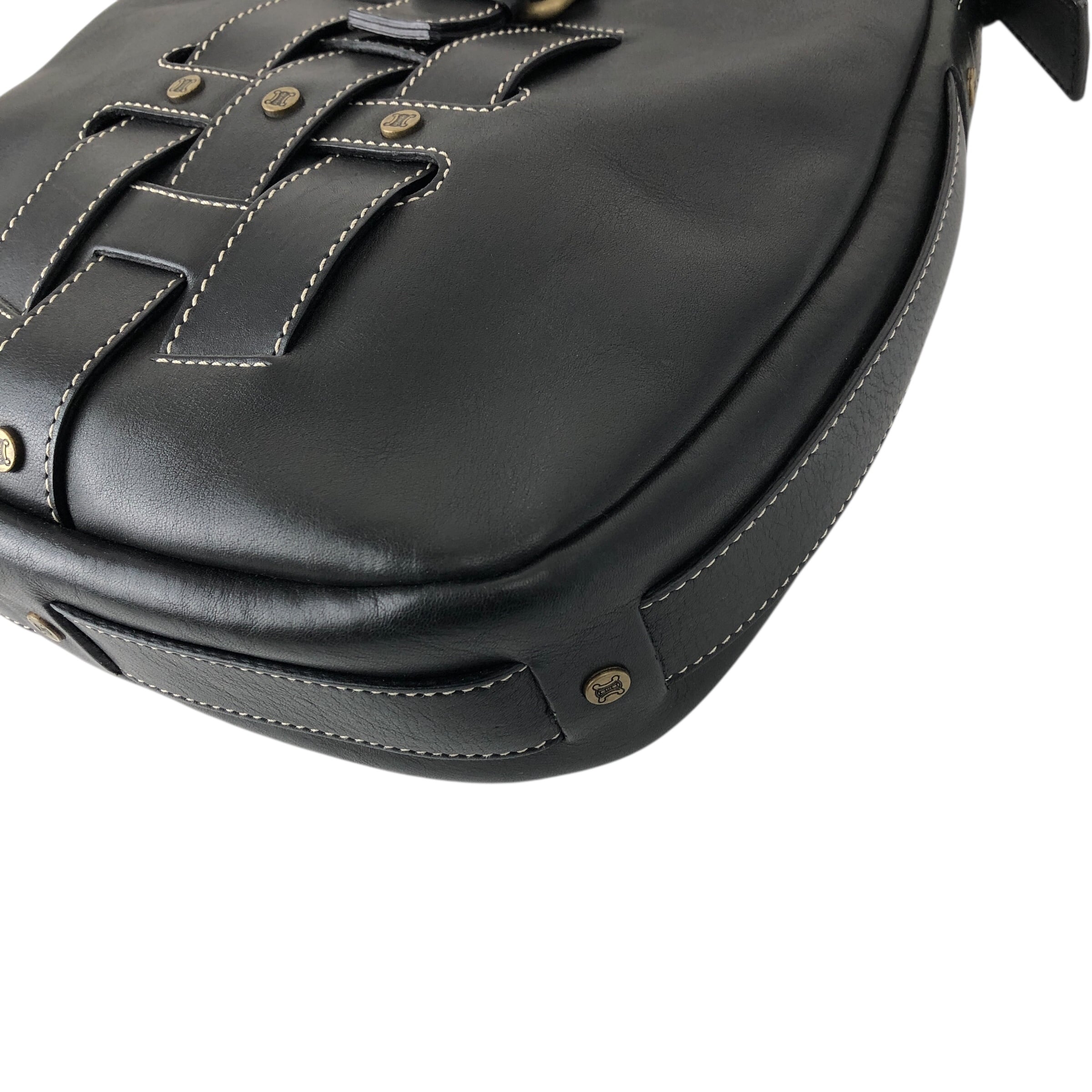 CELINE セリーヌ ブラック レザー フロントバックル セミショルダー vintage ヴィンテージ オールド f5ds3s