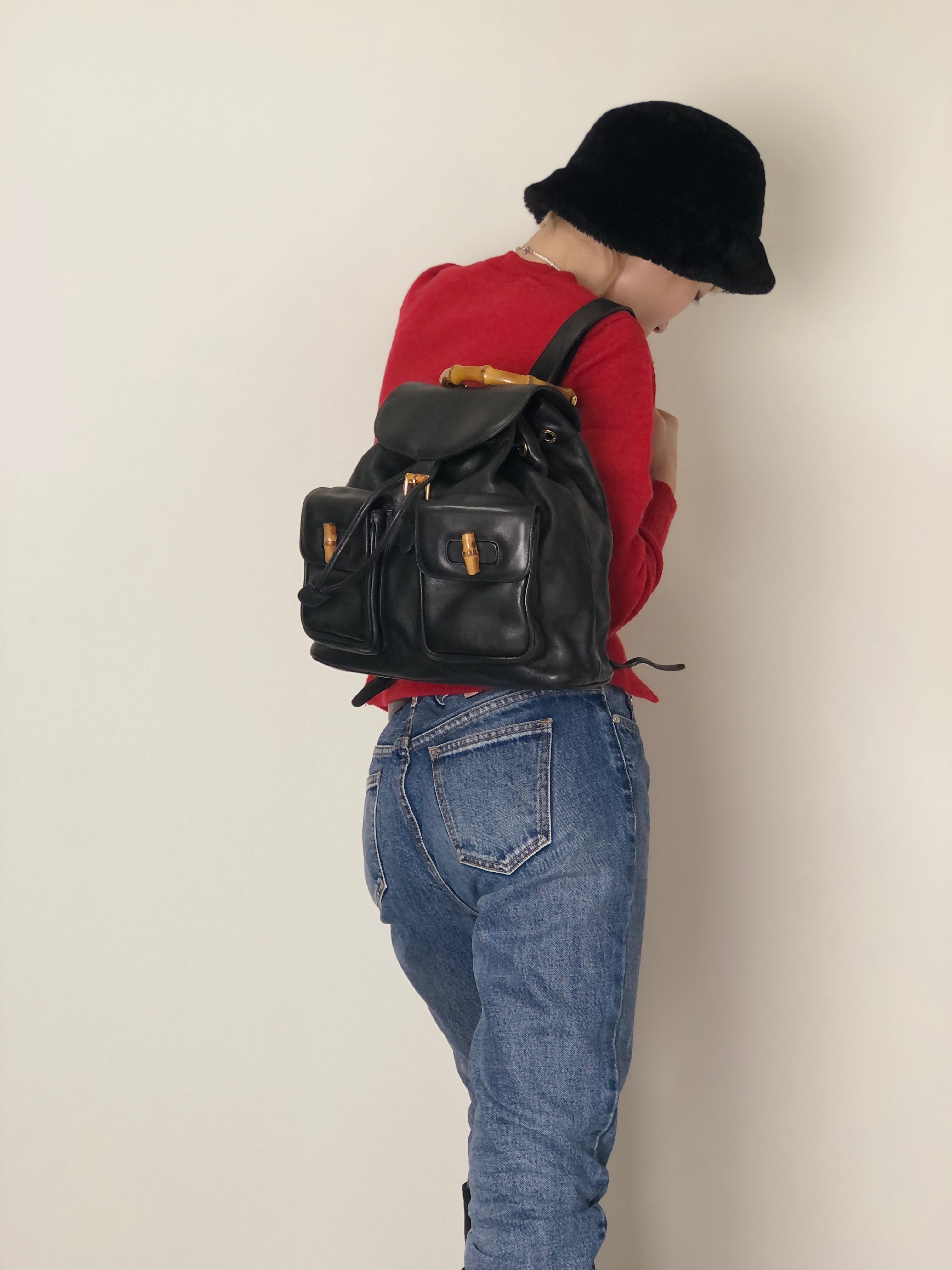GUCCI グッチ バックパック ブラック バンブー レザー フロントバックル vintage ヴィンテージ オールド gaic2f