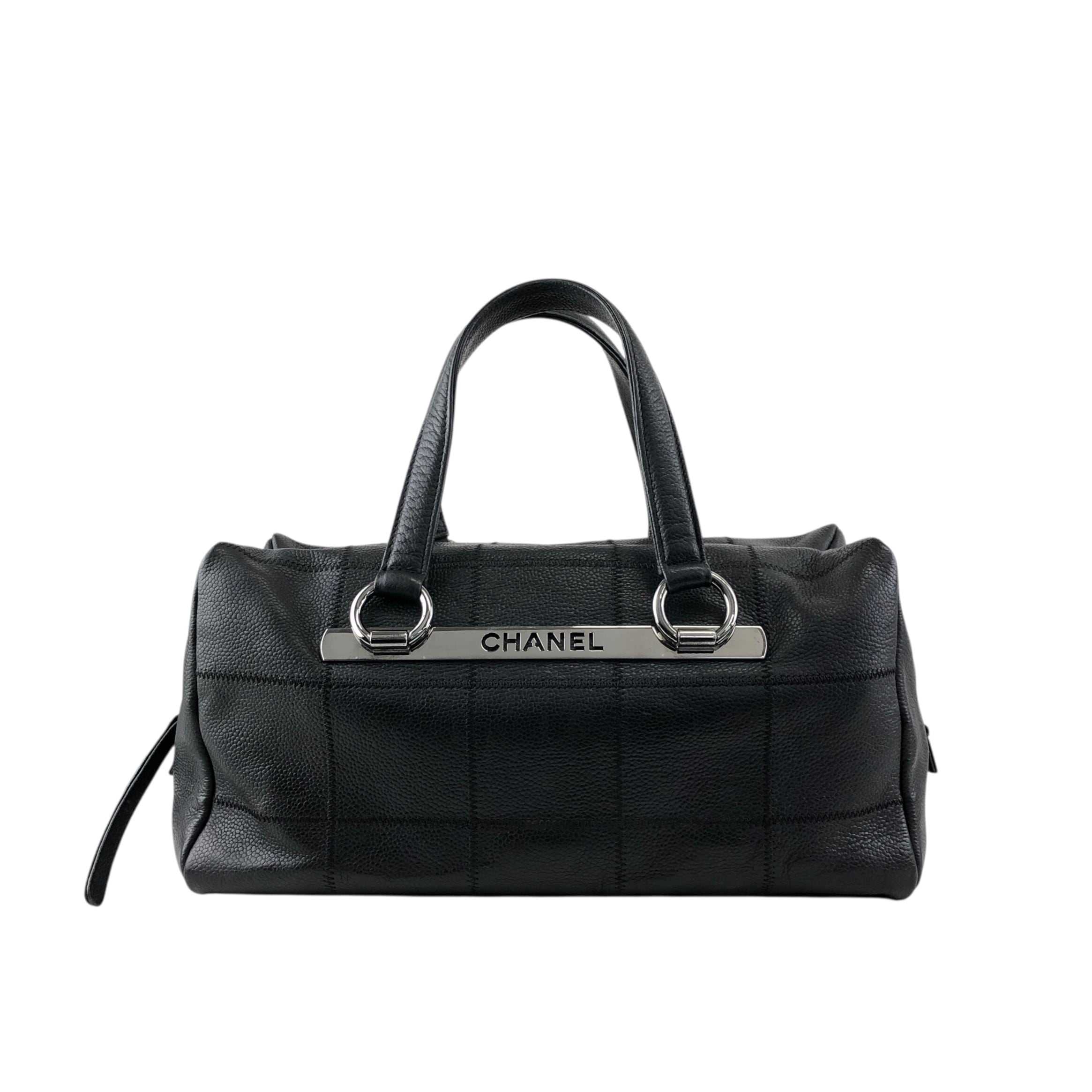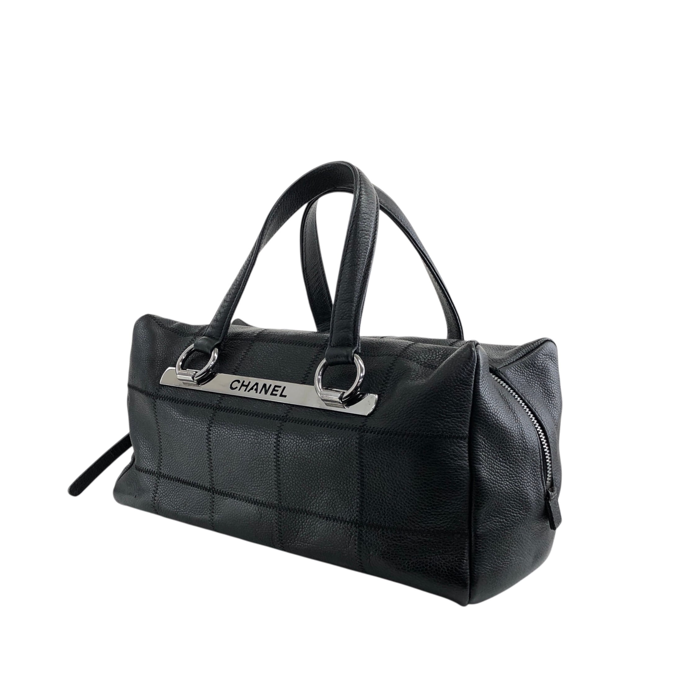 CHANEL シャネル ハンドバッグ ブラック ロゴ キャビアスキン チョコバー ミニボストンバック vintage ヴィンテージ オールド iez78z