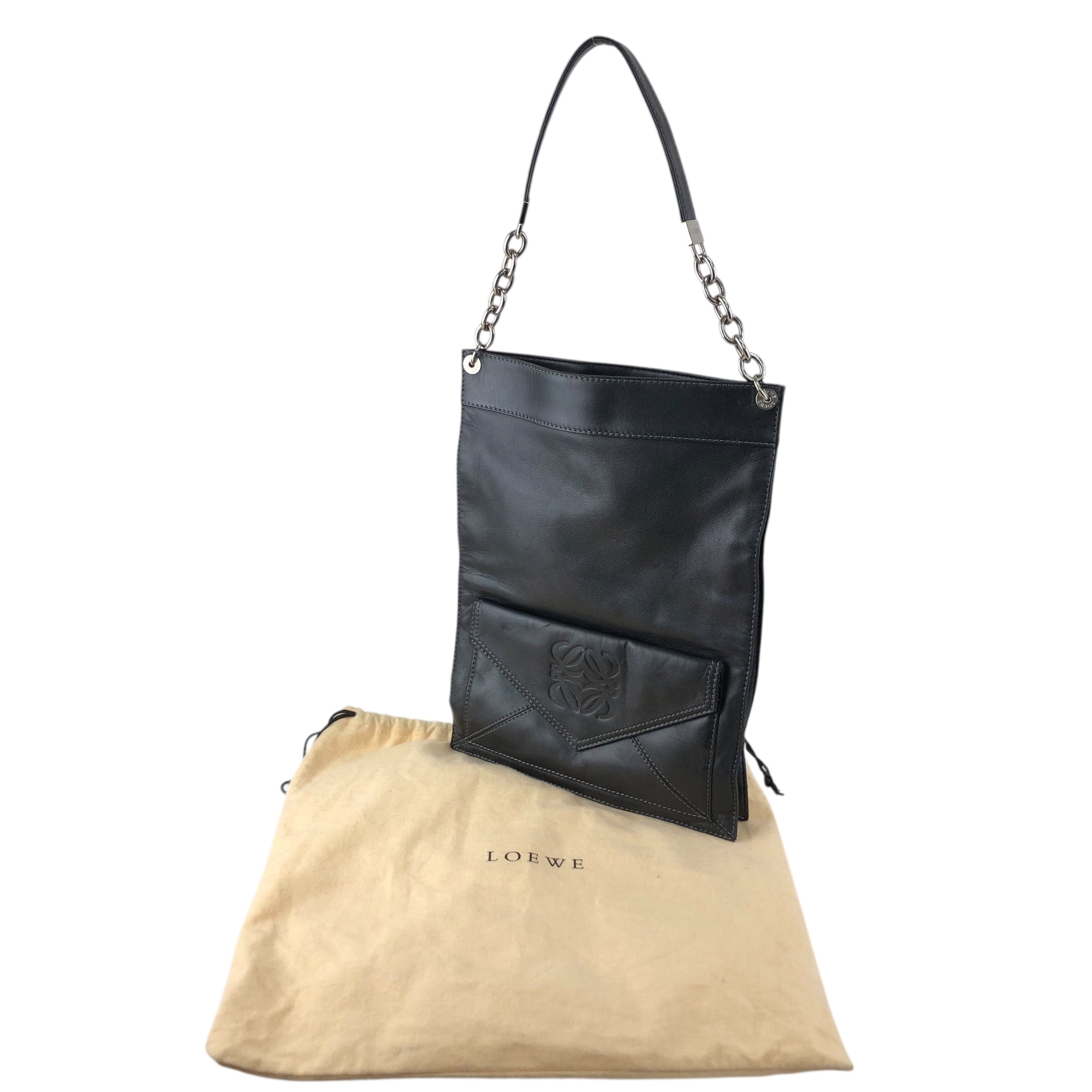LOEWE ロエベ トートバッグ ブラック アナグラム レザー チェーン vintage ヴィンテージ オールド yutn3y