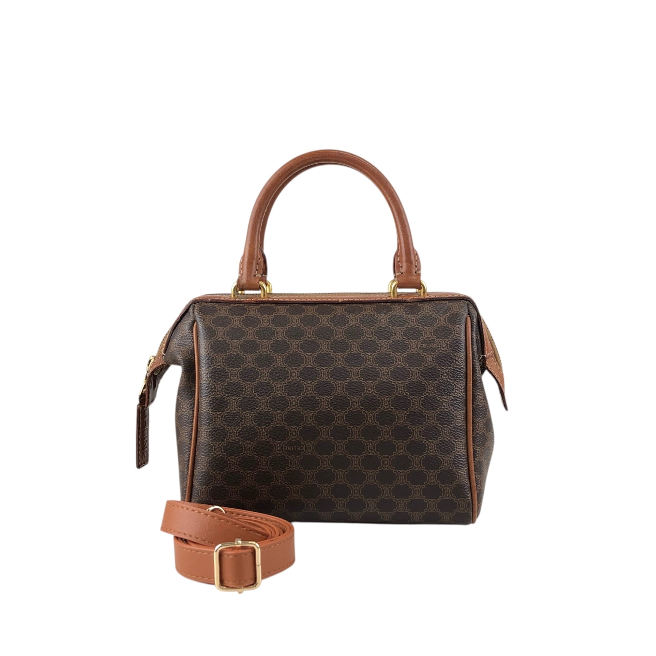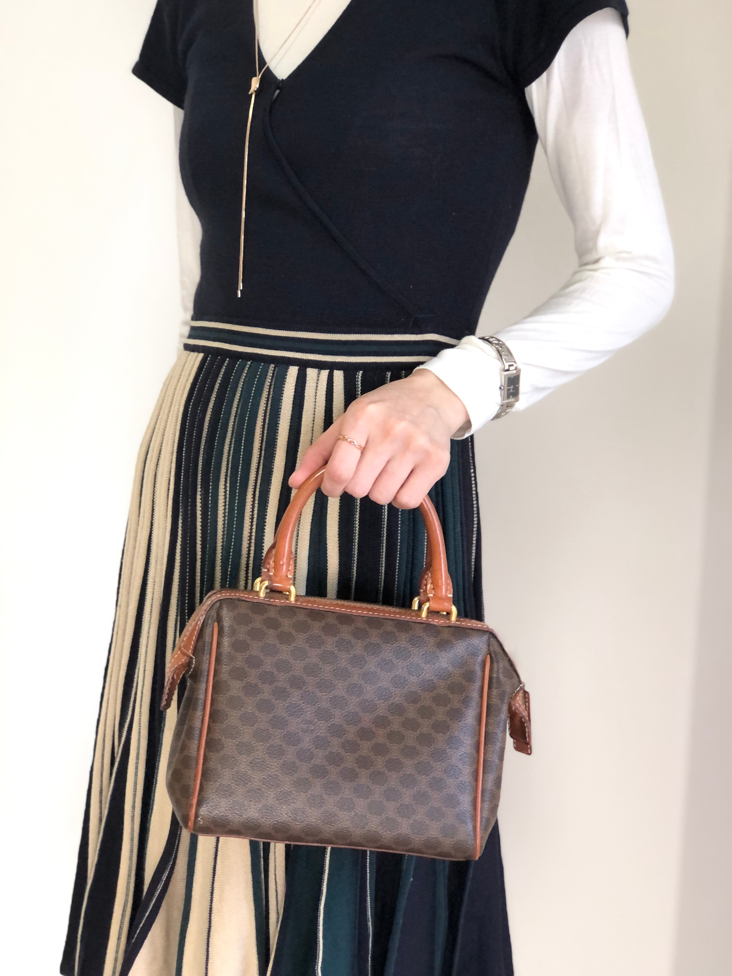 CELINE セリーヌ マカダム ショルダーバッグ ブラウン PVC レザー 2way ミニボストン ミニバッグ vintage ヴィンテージ オールド fdr2bd