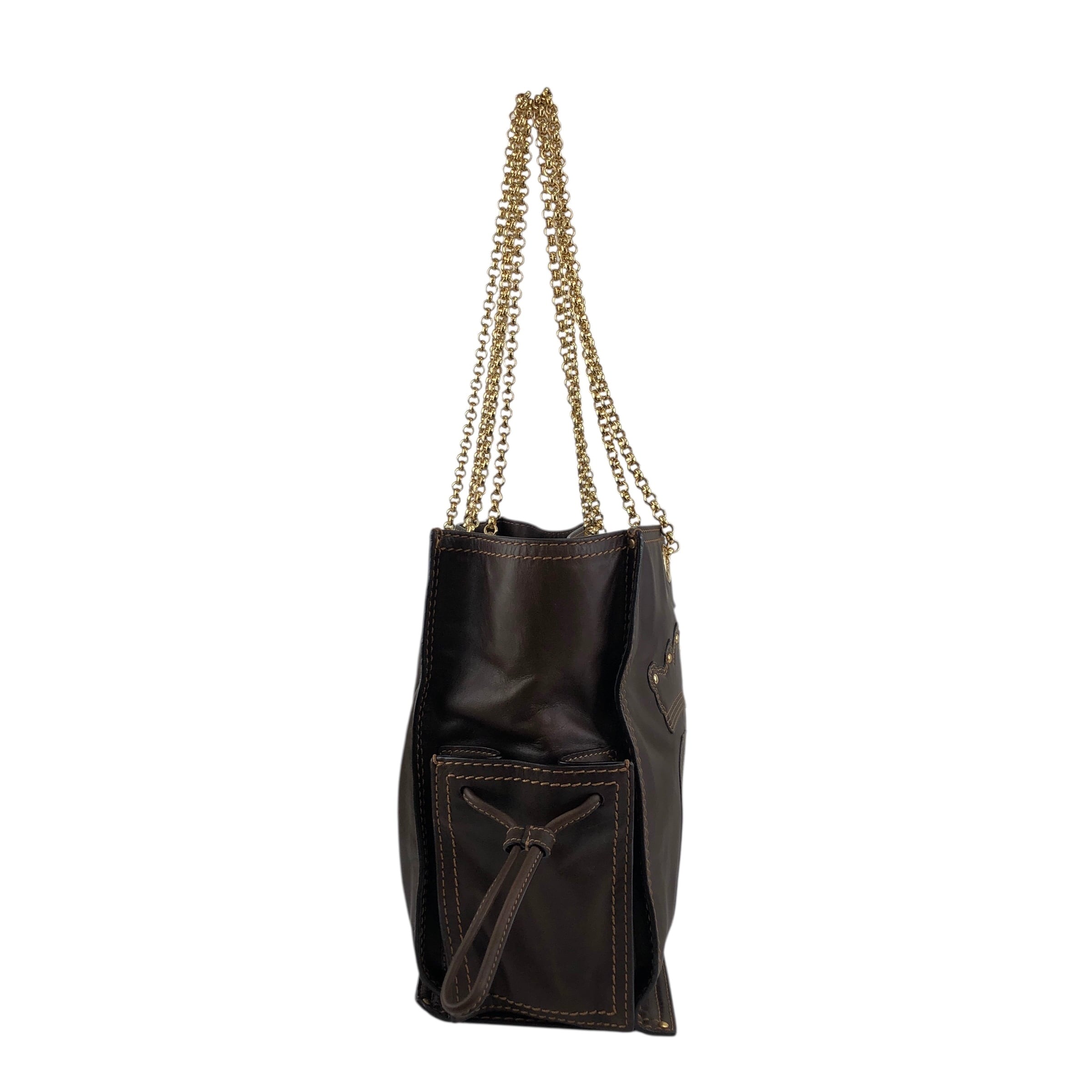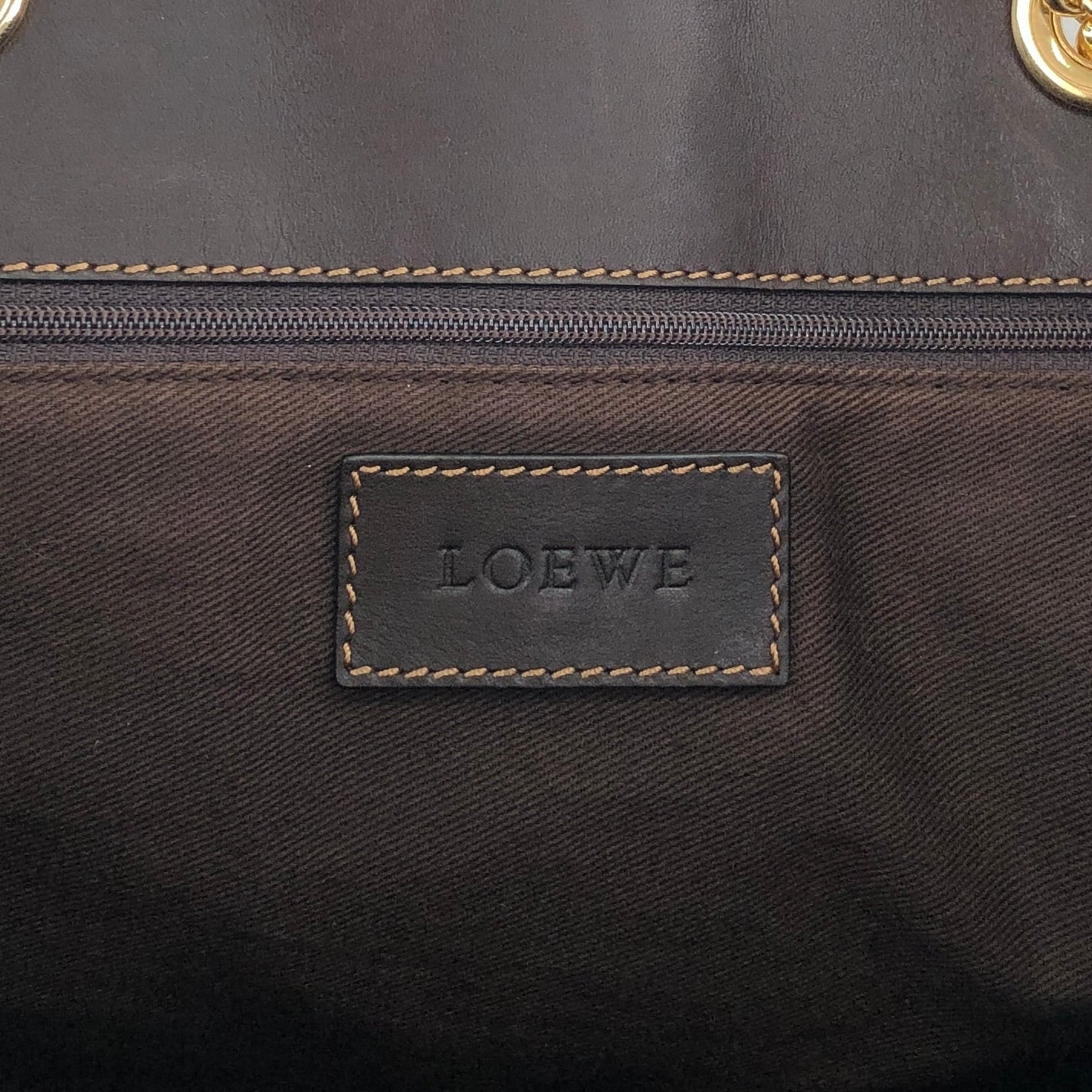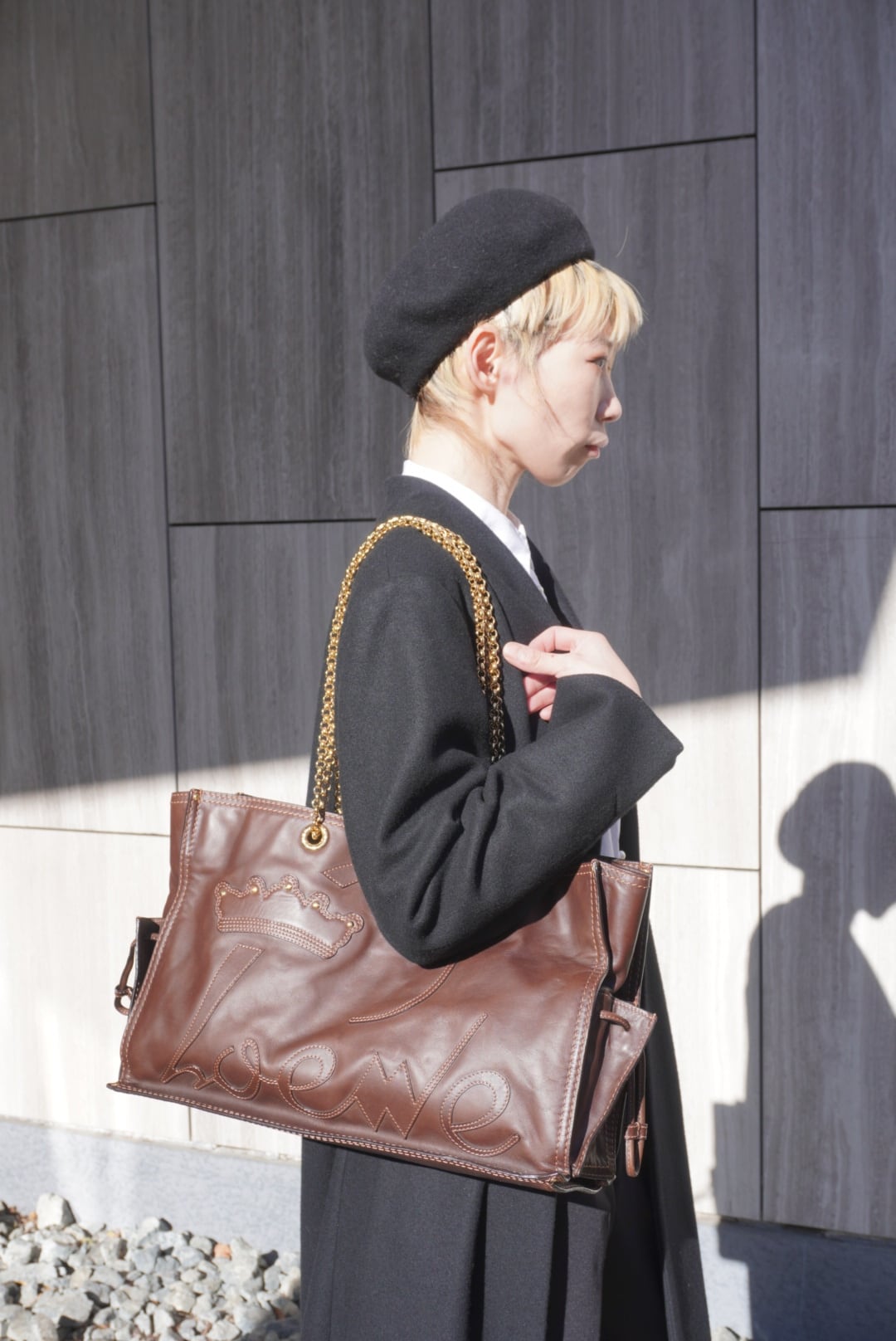 LOEWE ロエベ トートバッグ ブラウン ロゴ レザー チェーン vintage ヴィンテージ オールド xy3fjn