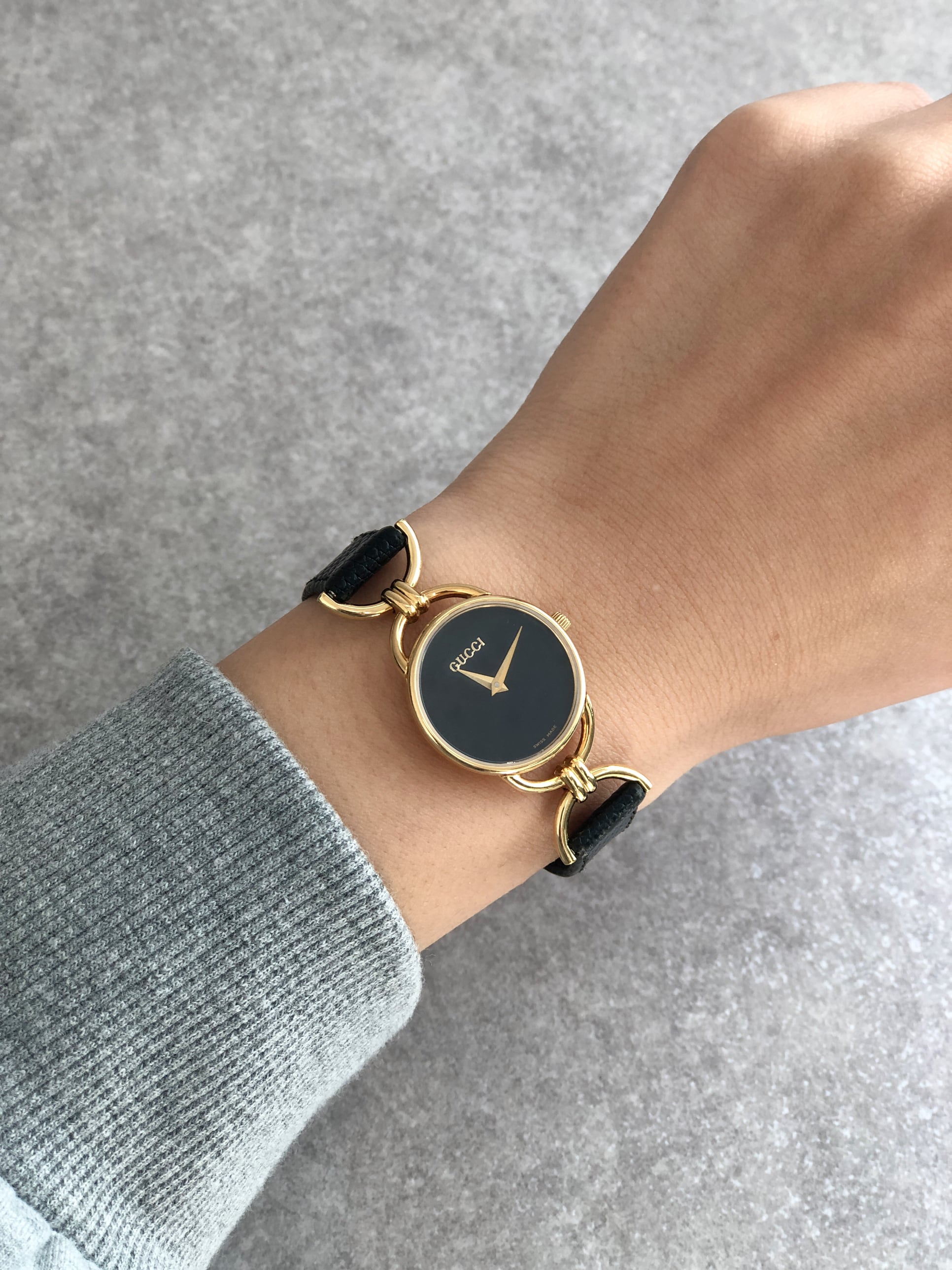 GUCCI グッチ 腕時計 ブラック レザー クウォーツ 6000L vintage ヴィンテージ オールド yav34a