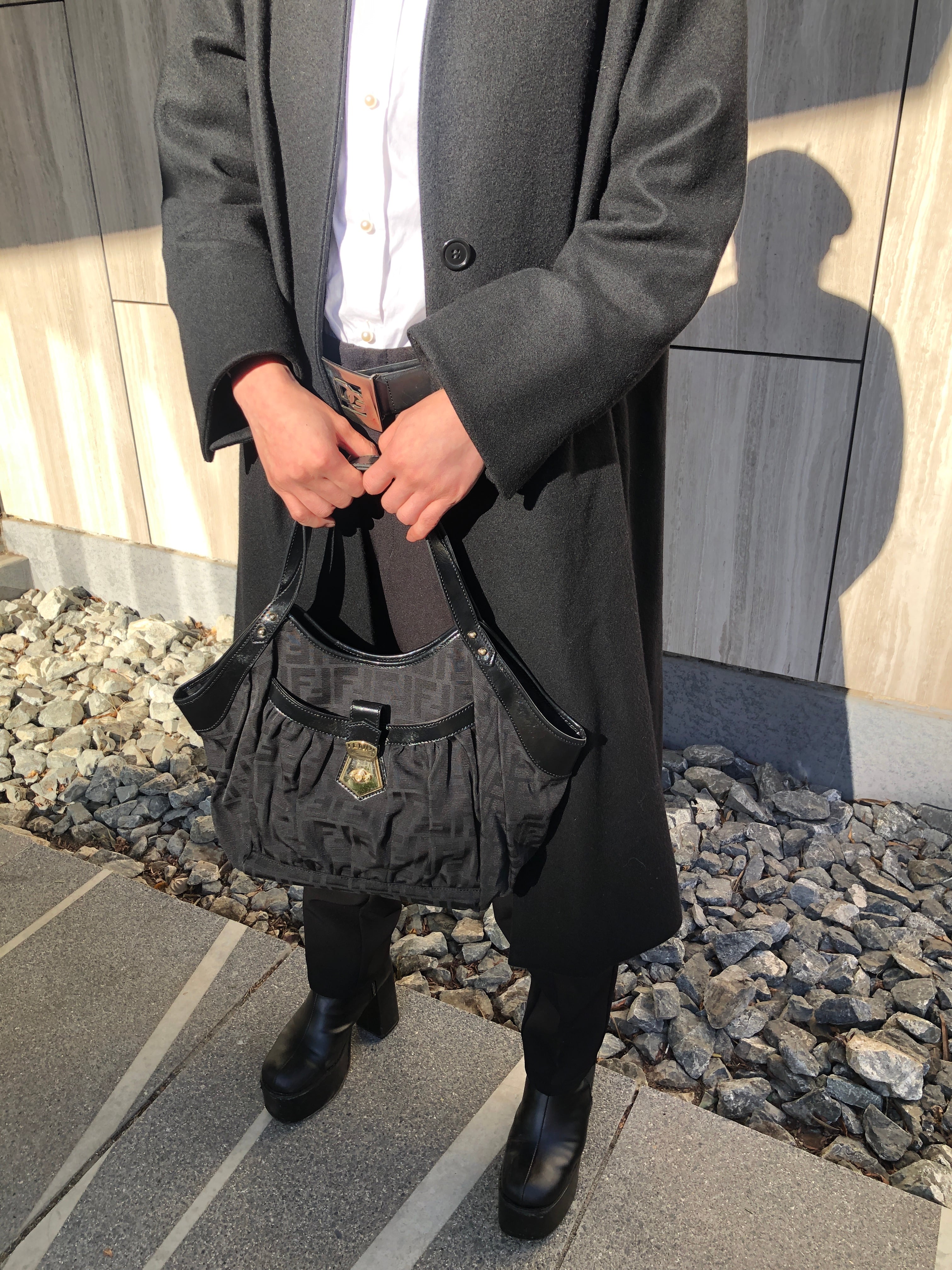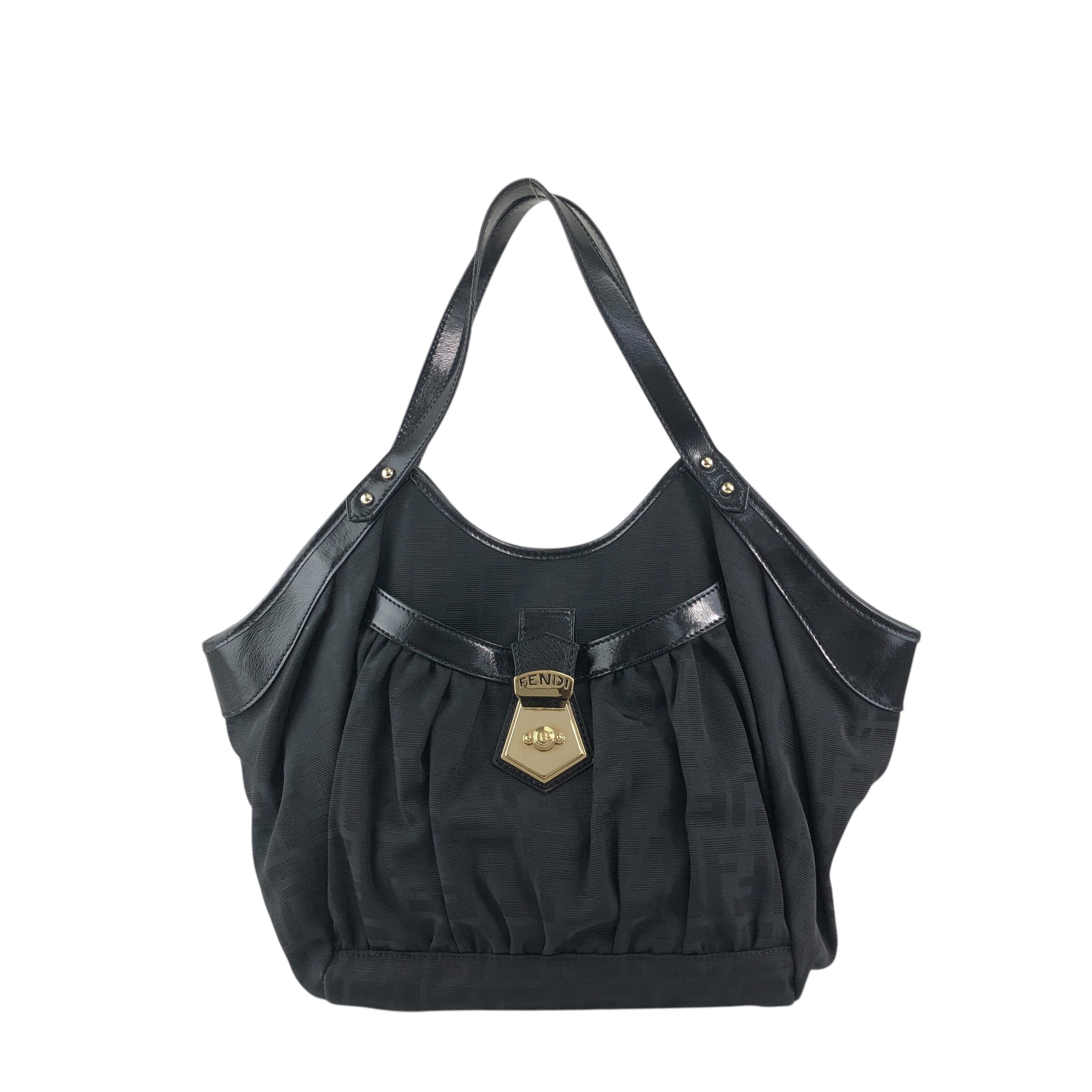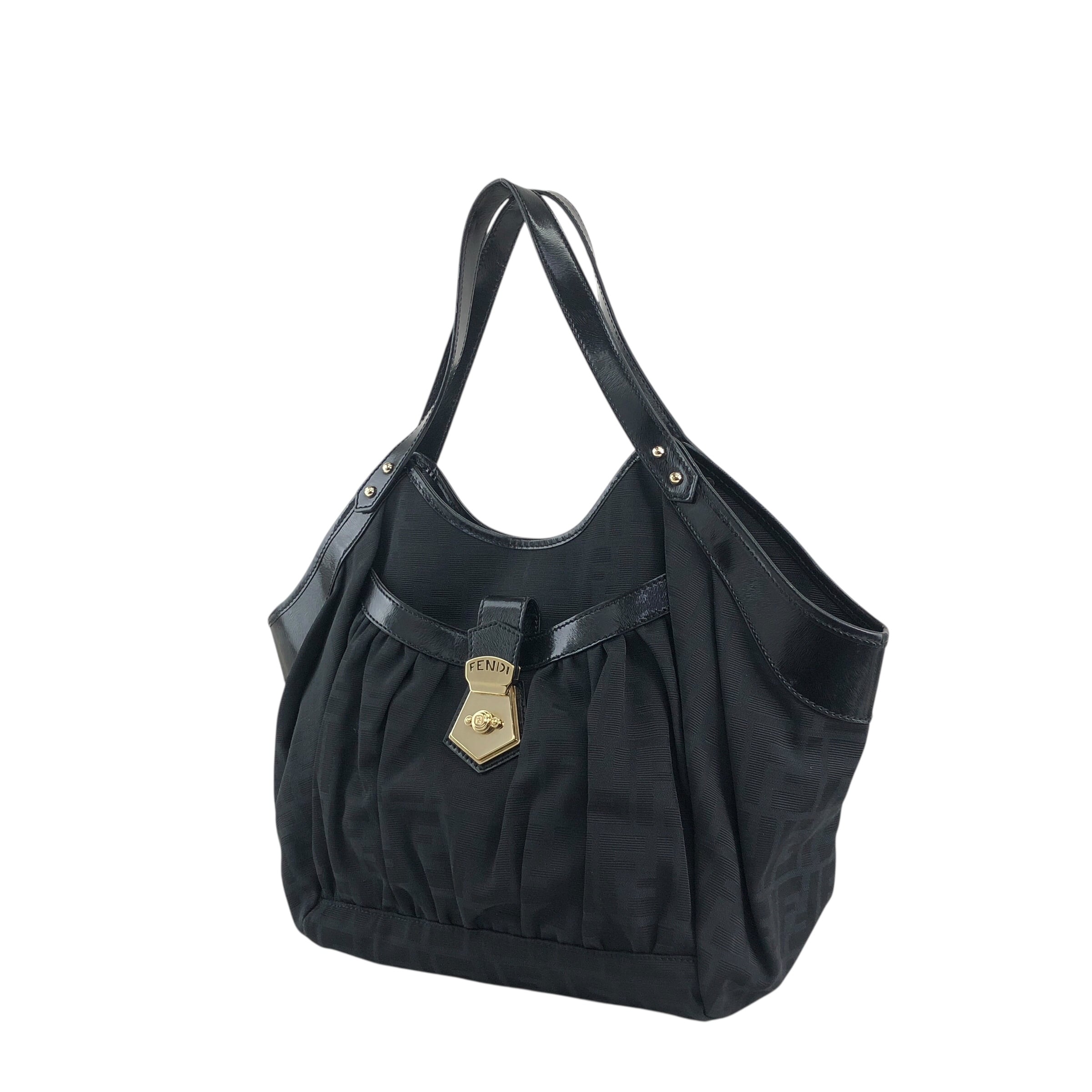 FENDI フェンディ ズッカ ハンドバッグ ブラック フロントバックル ジャガード vintage ヴィンテージ オールド evvwep