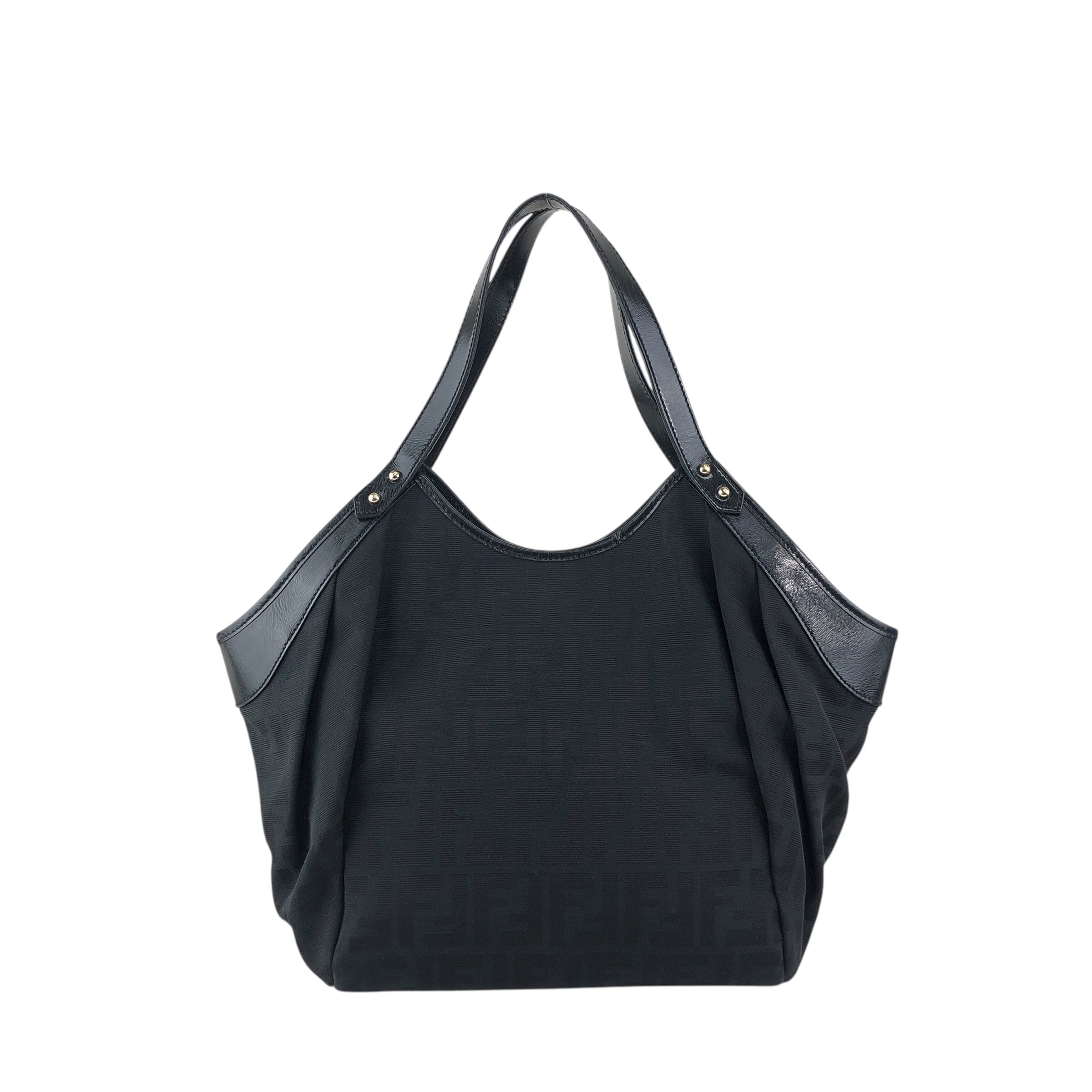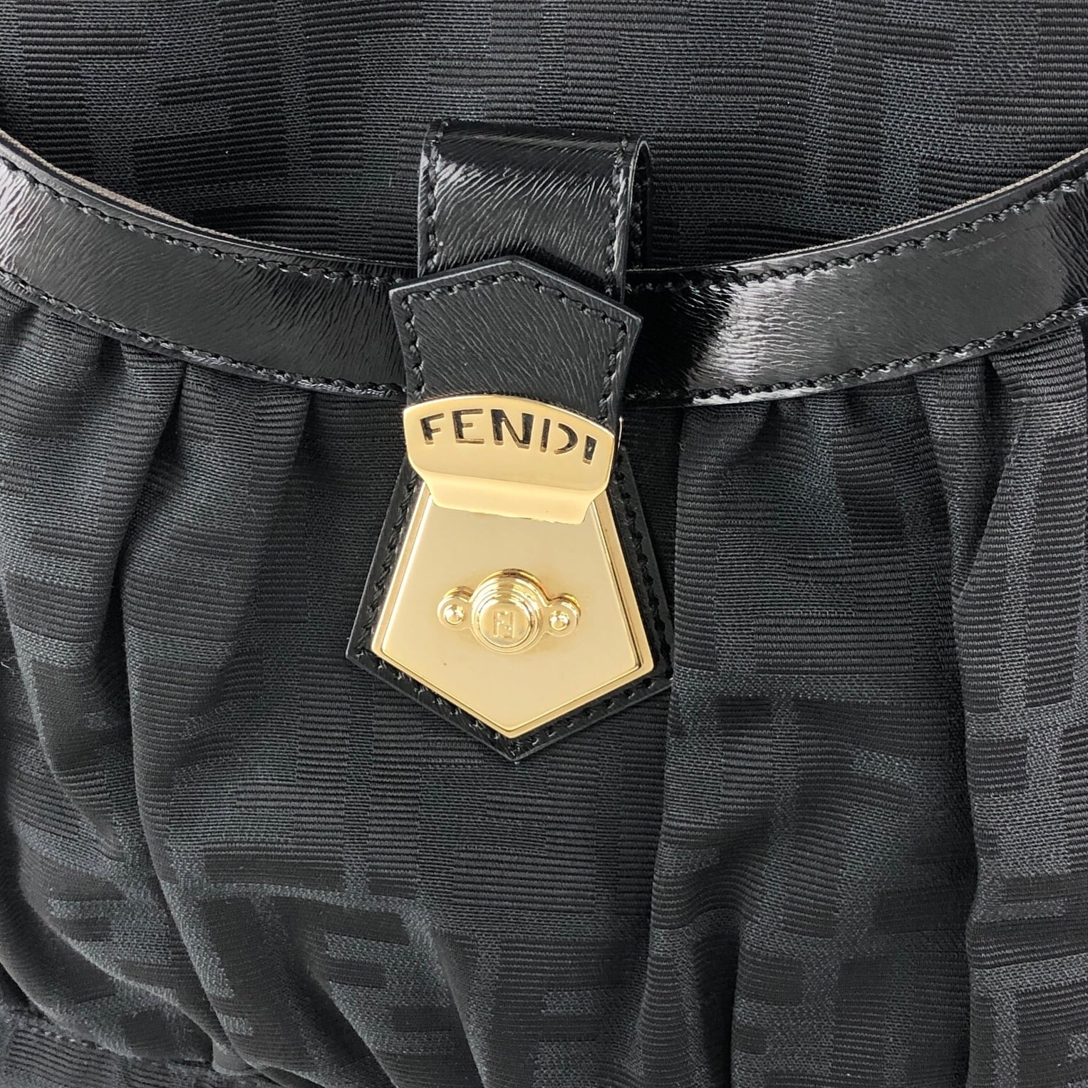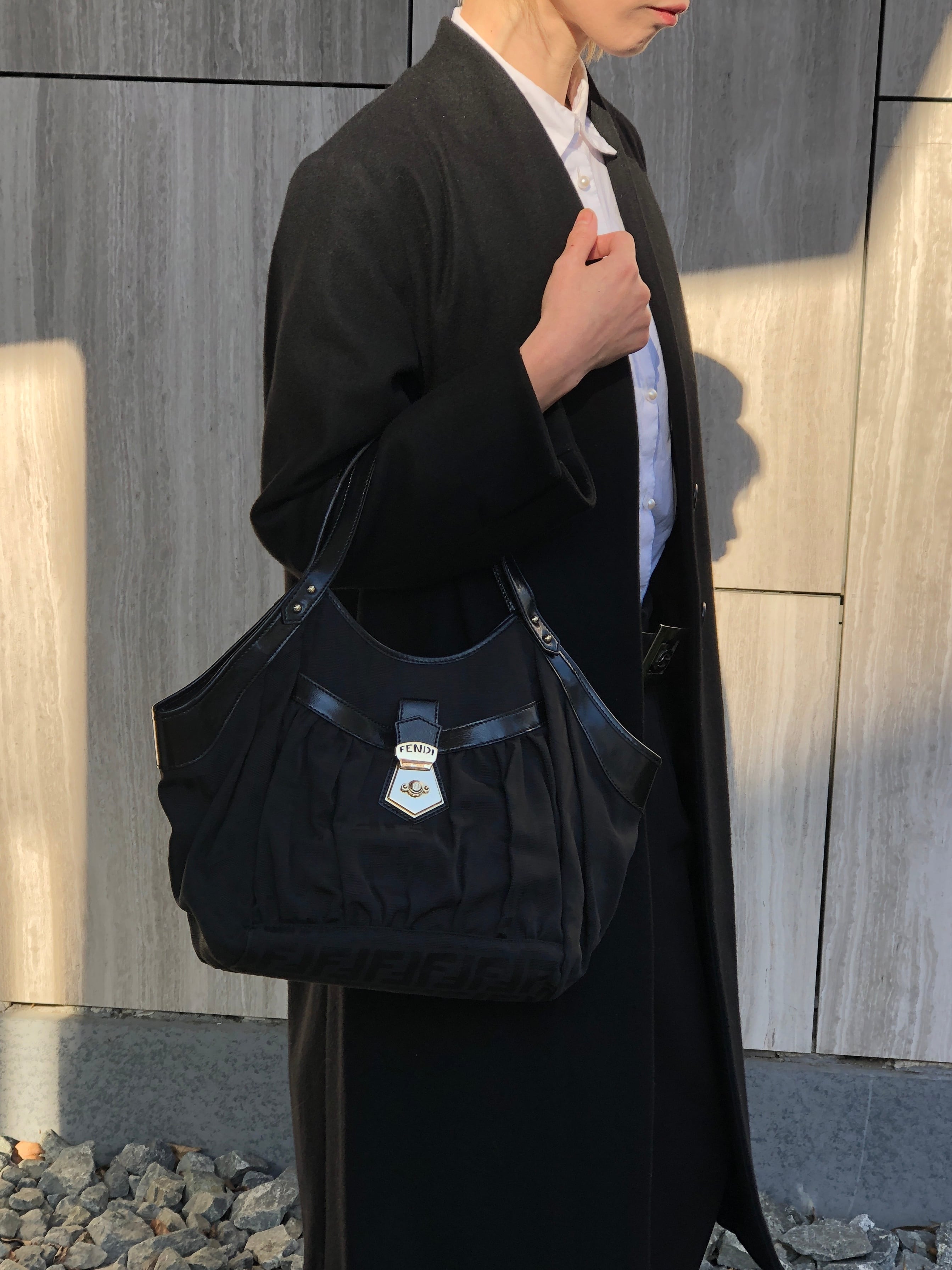 FENDI フェンディ ズッカ ハンドバッグ ブラック フロントバックル ジャガード vintage ヴィンテージ オールド evvwep