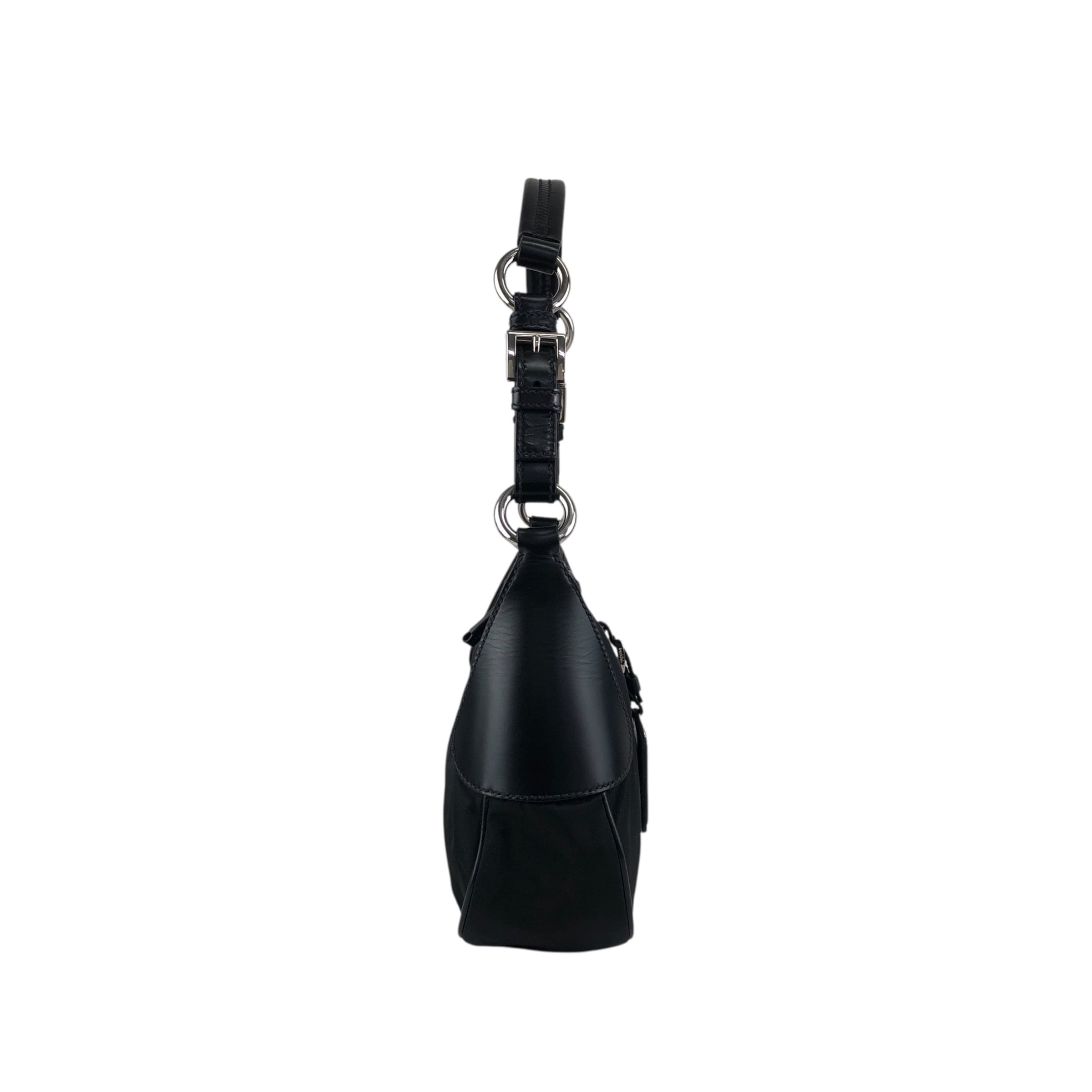 PRADA プラダ ショルダーバッグ ブラック トライアングルロゴ ナイロン レザー ホーボーバッグ vintage ヴィンテージ オールド 4nfw5t