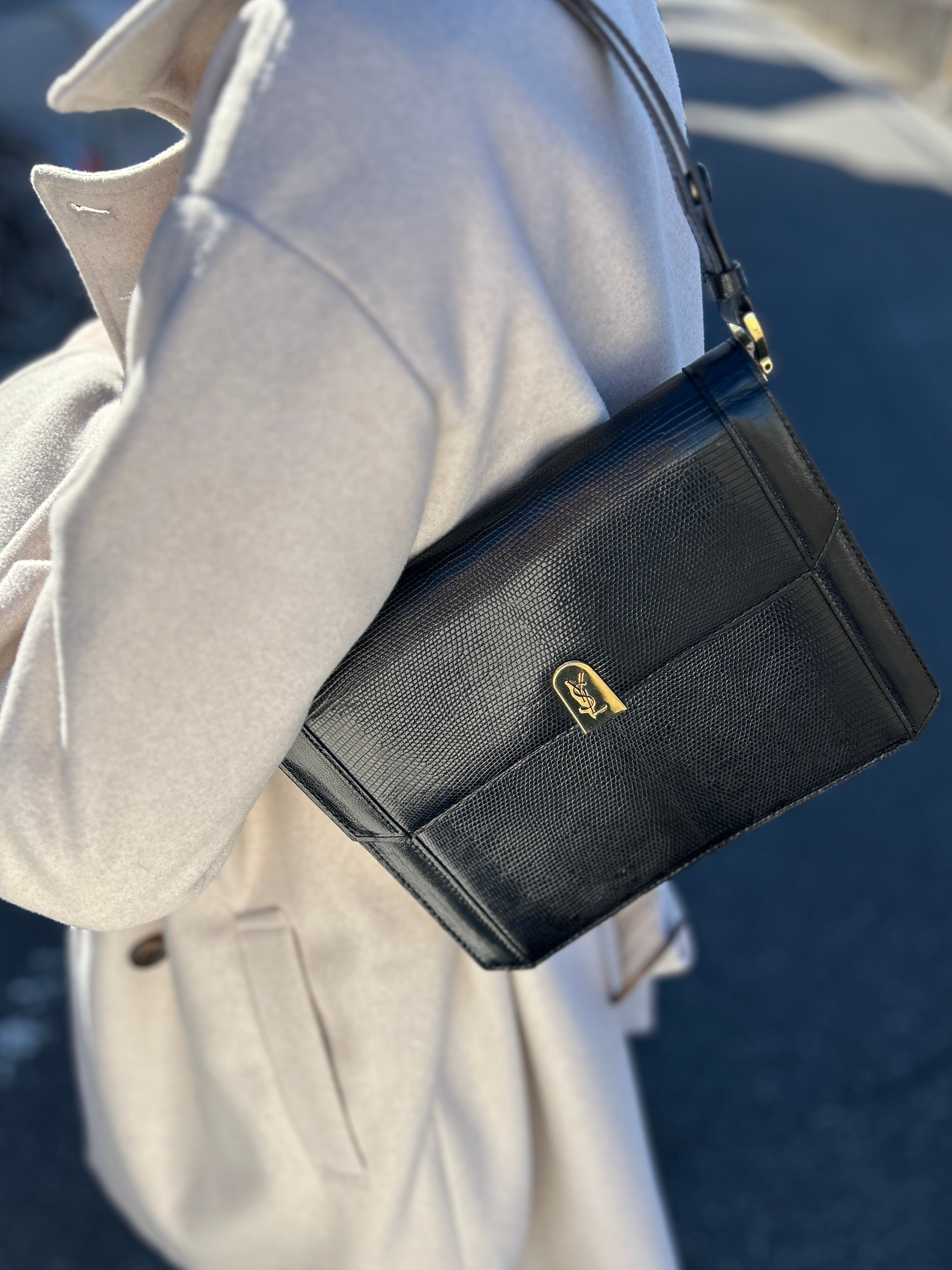 Yves Saint Laurent イヴ・サンローラン ショルダーバッグ ブラック YSL リザード型押し 5nbvi3