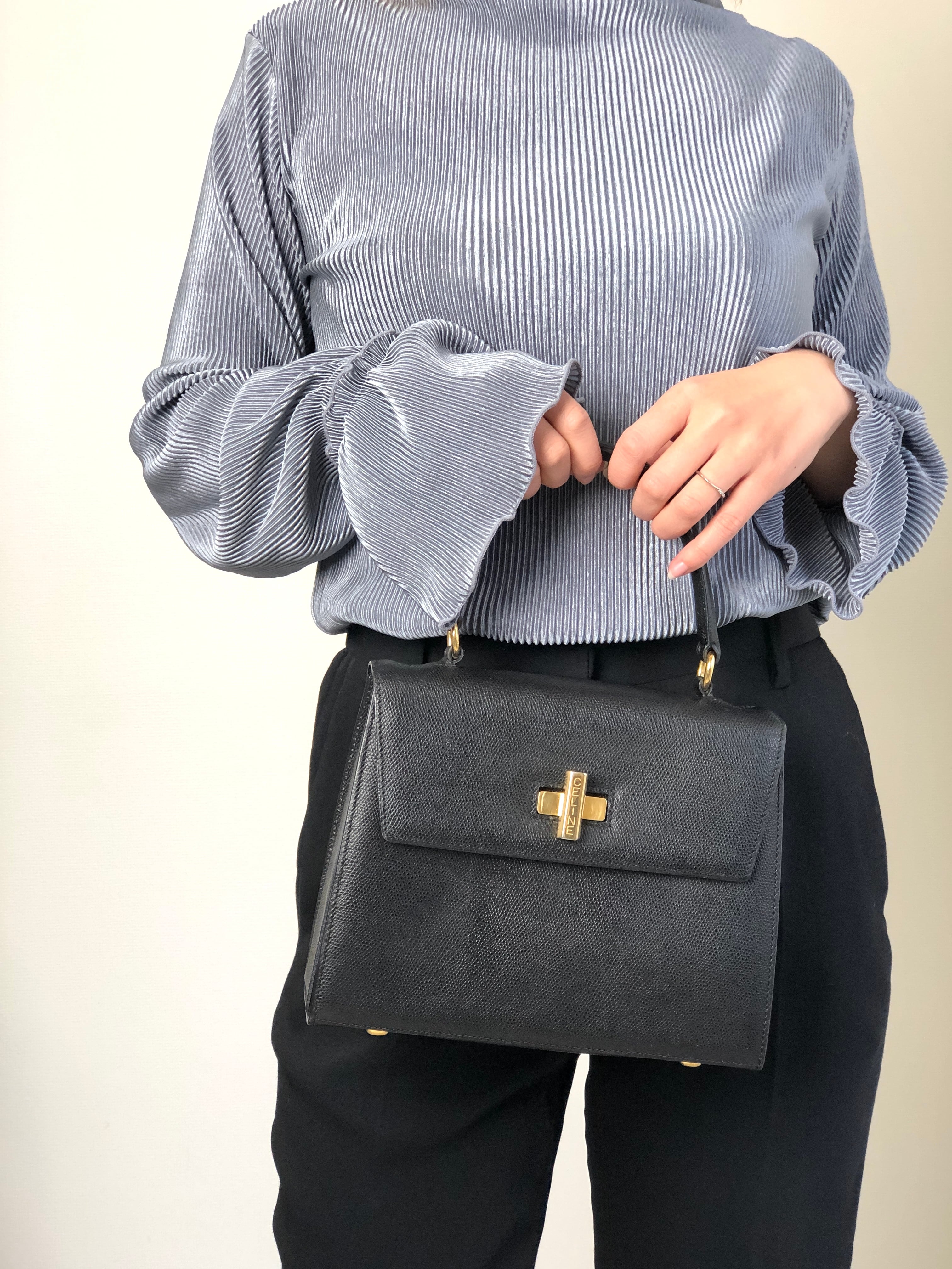 CELINE セリーヌ ハンドバッグ ブラック ターンロック ロゴ レザー 2way vintage ヴィンテージ オールド 2jnyiv