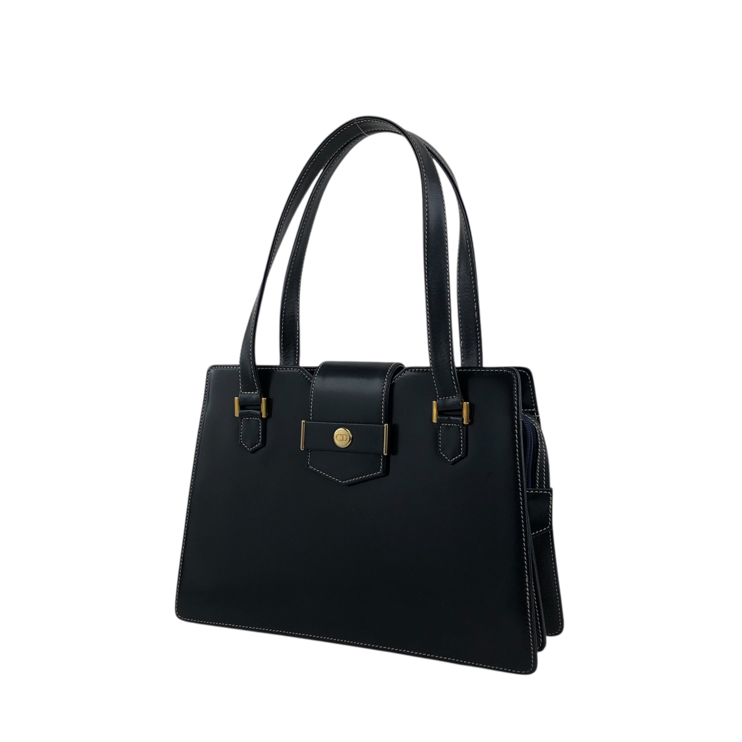 Christian Dior クリスチャン ディオール ハンドバッグ ダークネイビー ロゴ レザー vintage ヴィンテージ オールド undgi8