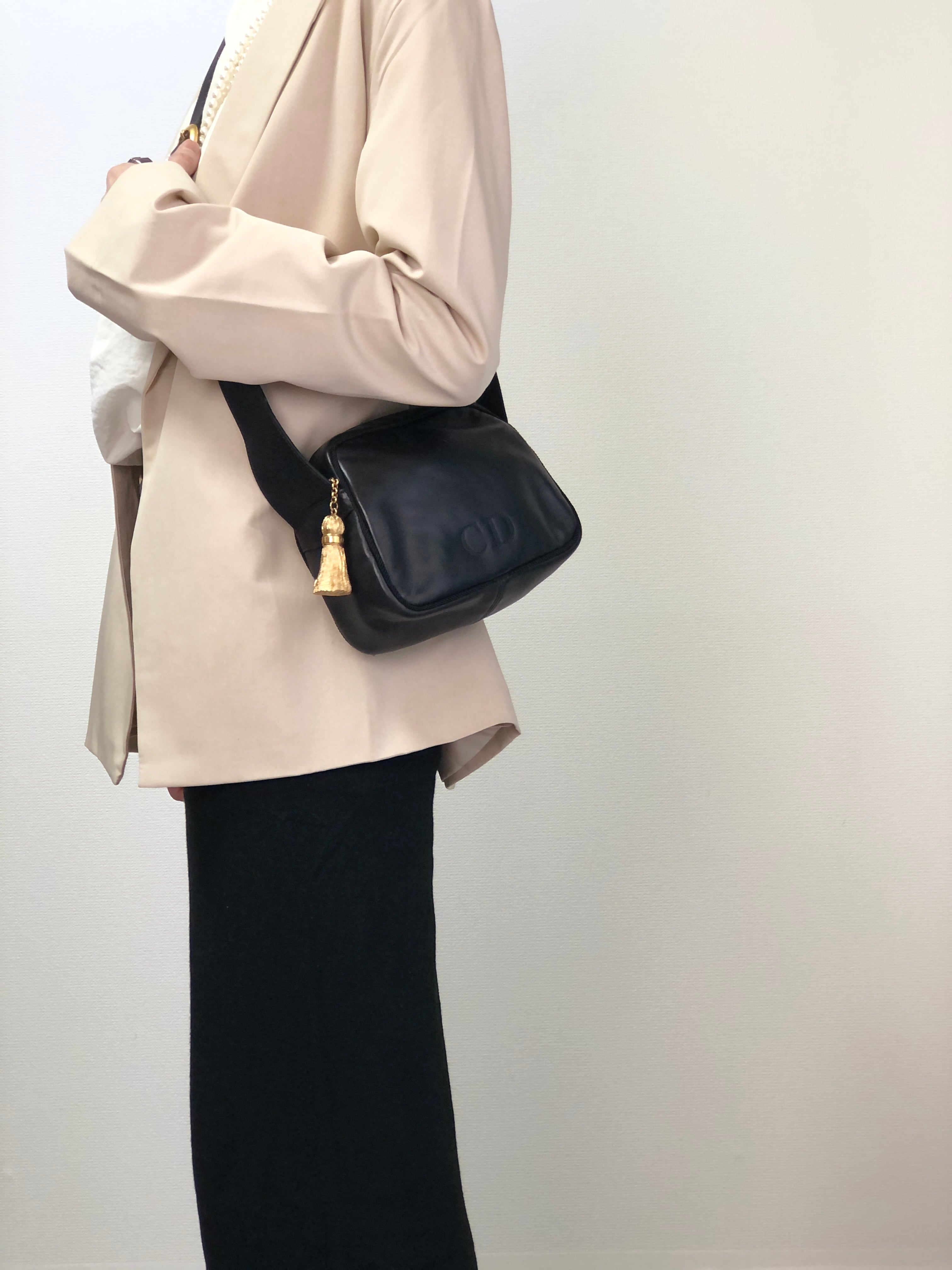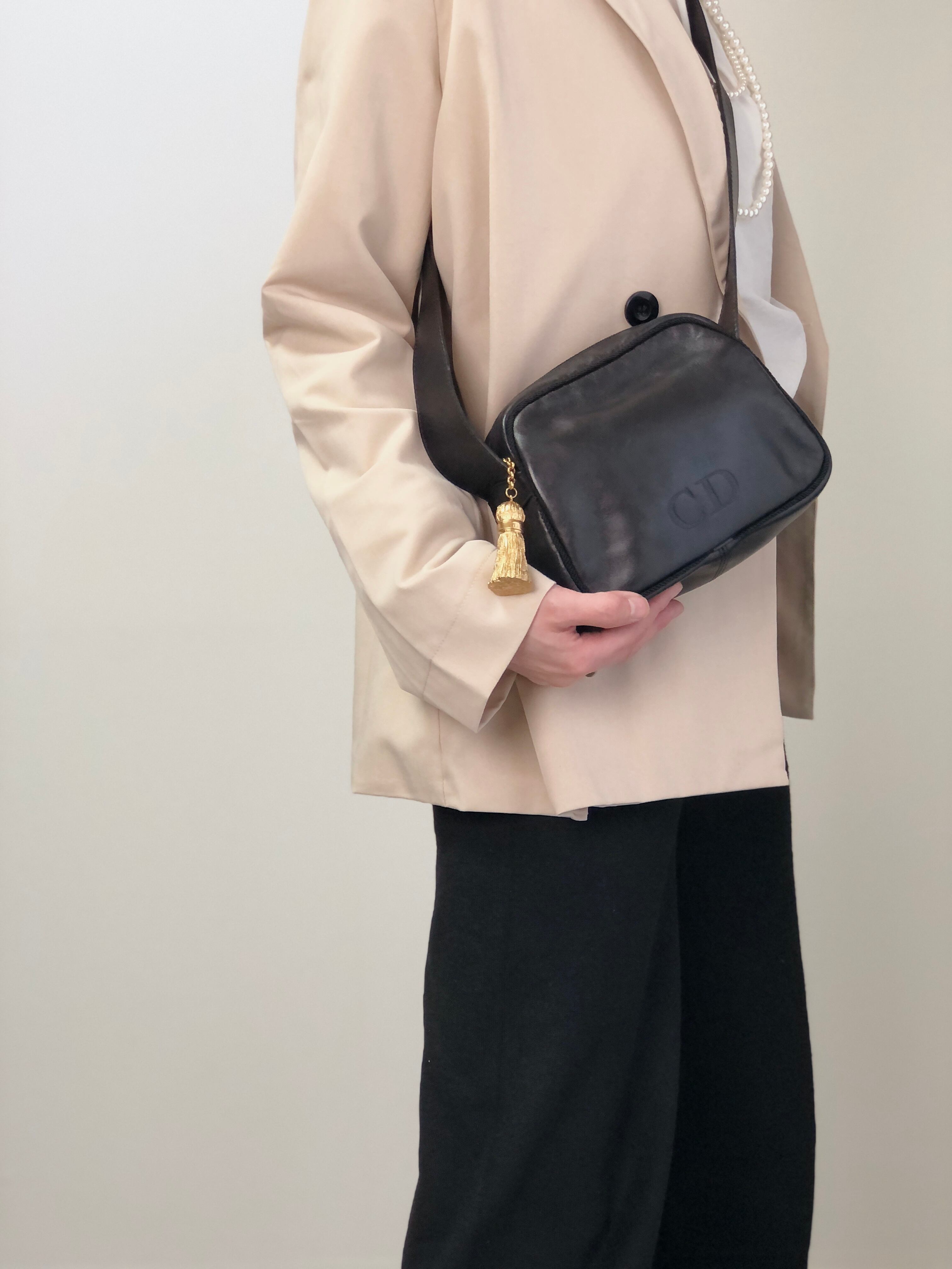 Christian Dior クリスチャン ディオール ショルダーバッグ ブラック ロゴ型押し タッセル レザー vintage ヴィンテージ オールド nvdfjx