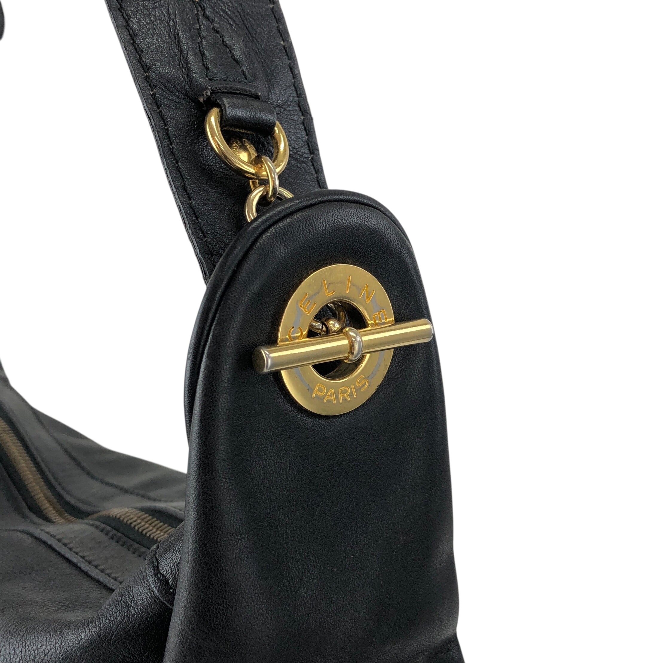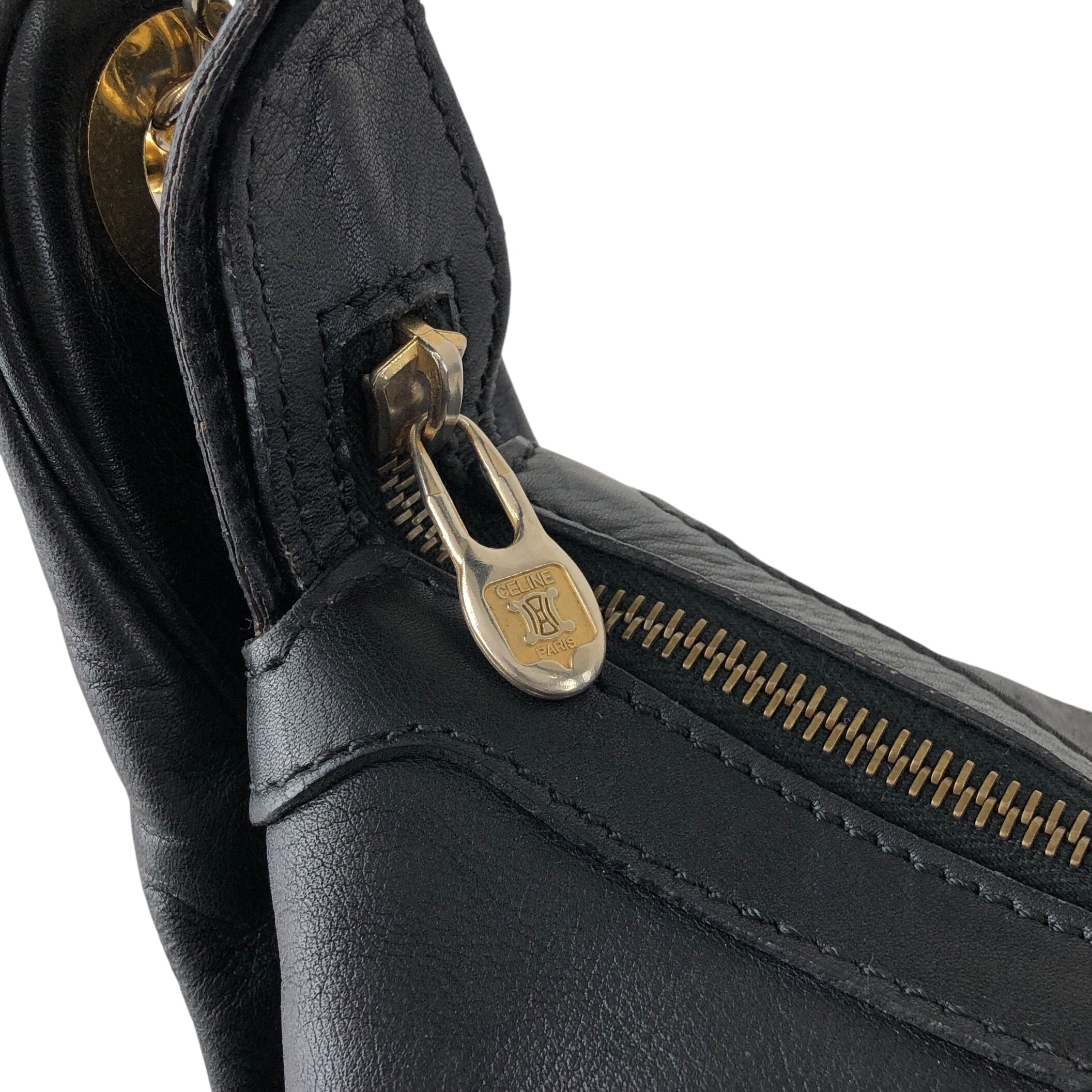 CELINE セリーヌ ショルダーバッグ ブラック ガンチーニ レザー vintage ヴィンテージ オールド etpu46
