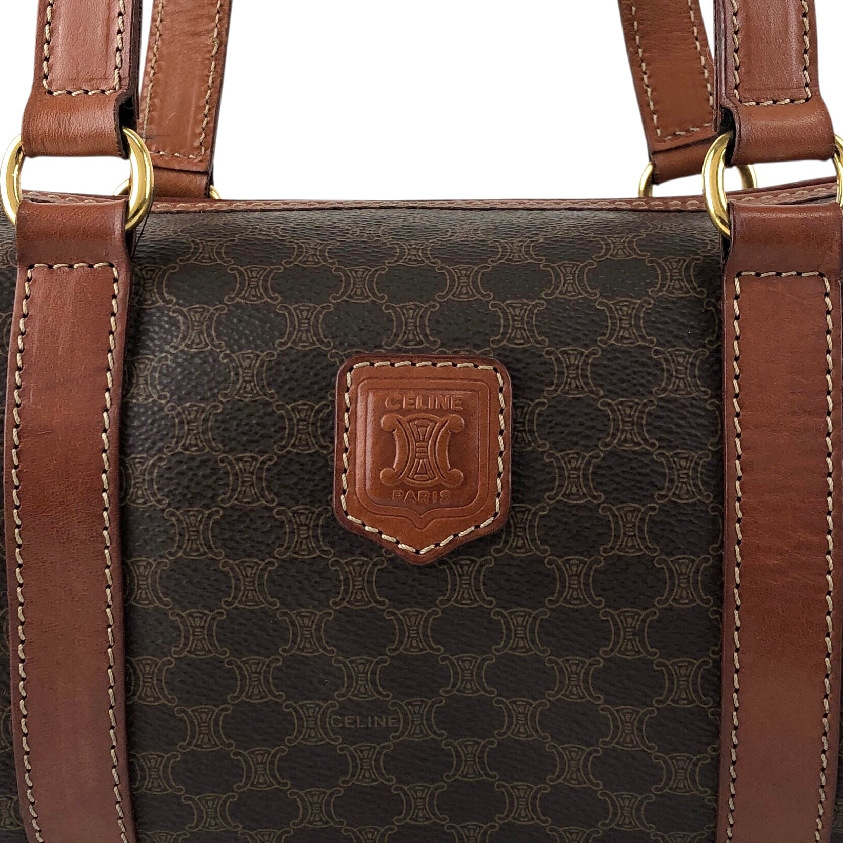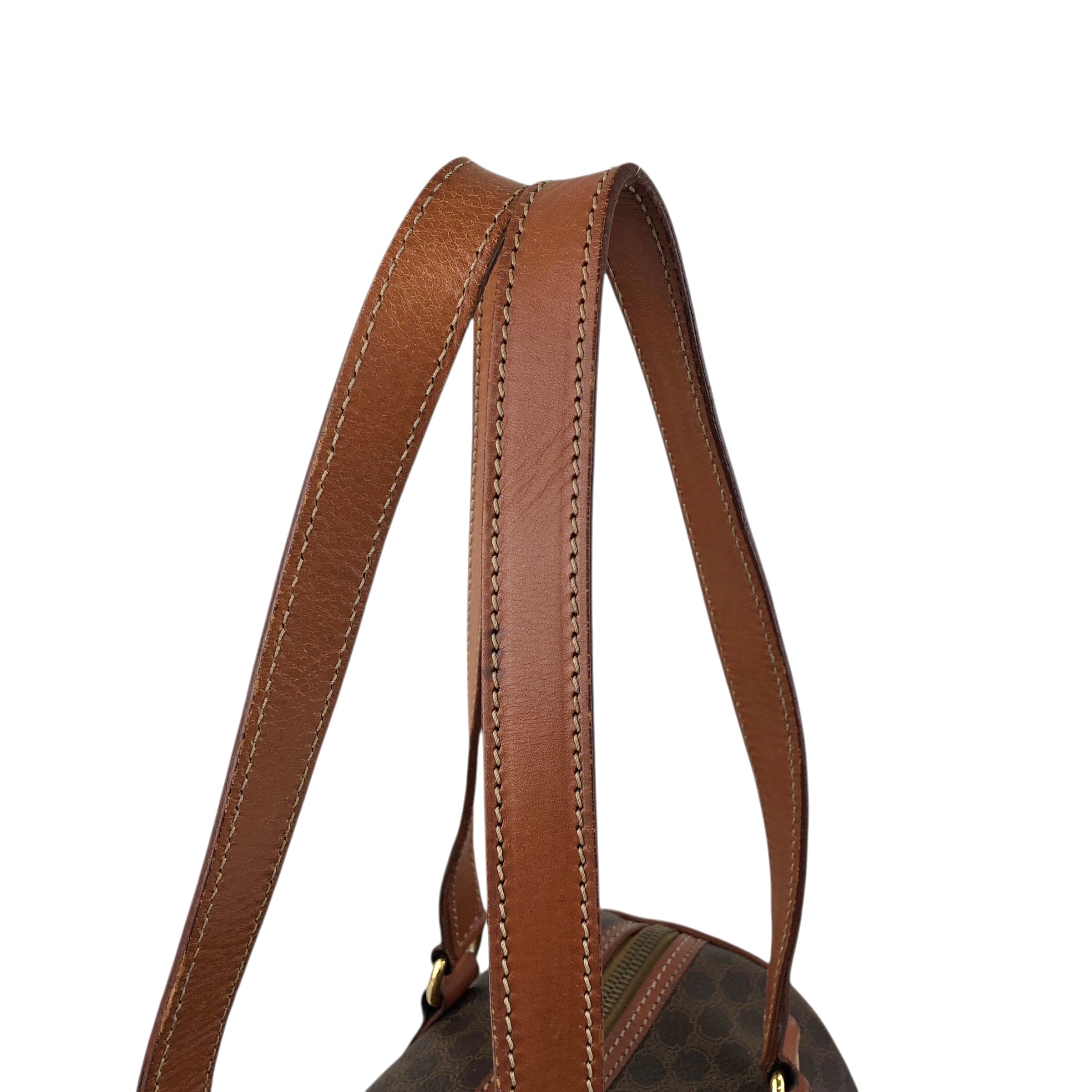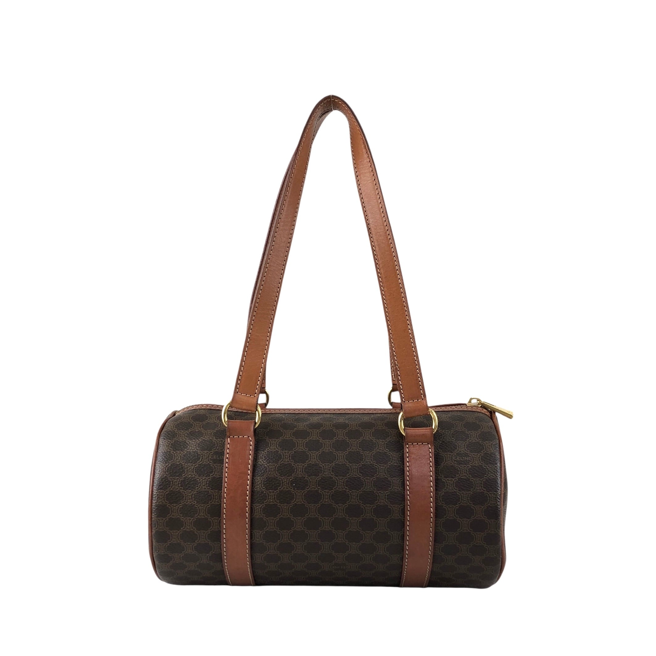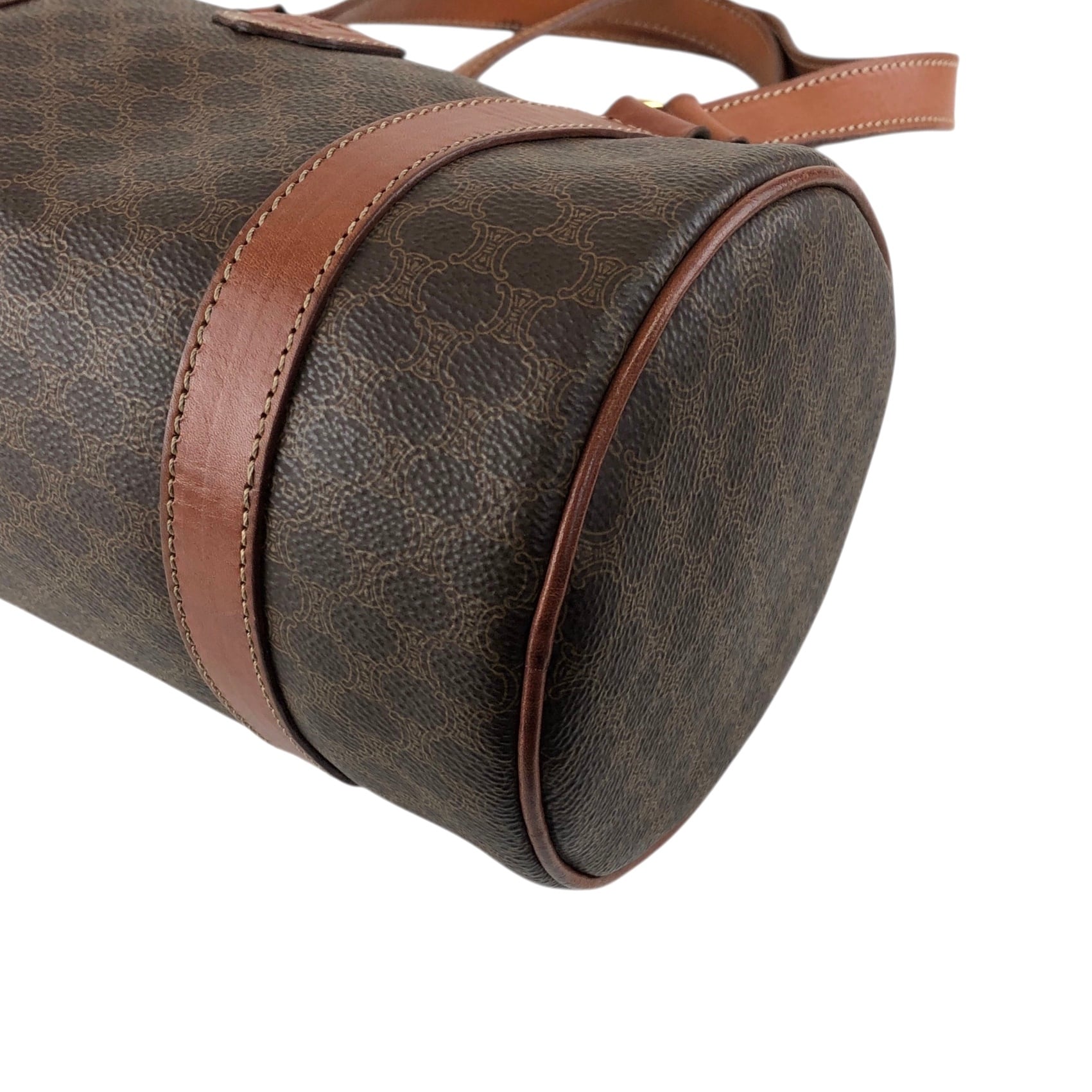 CELINE セリーヌ マカダム トートバッグ ブラウン ブラゾン型押し PVC レザー ロールバッグ vintage ヴィンテージ オールド d4wvhf