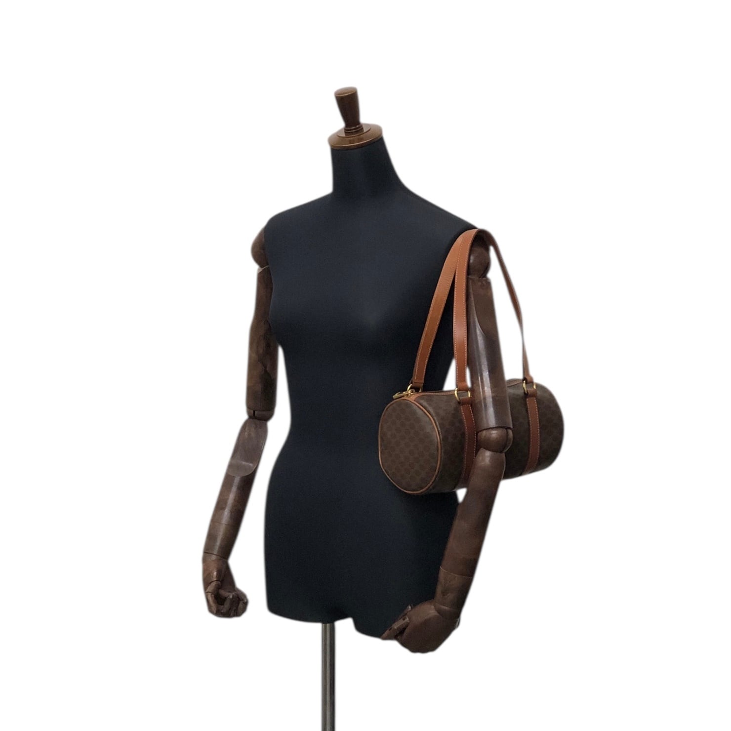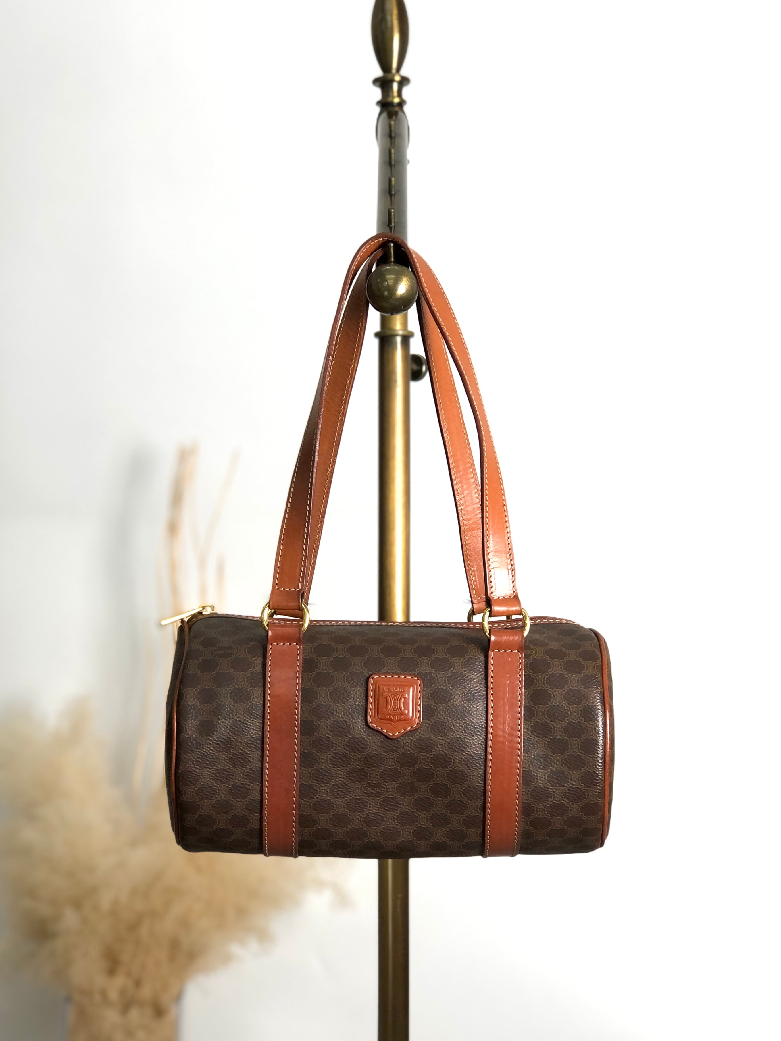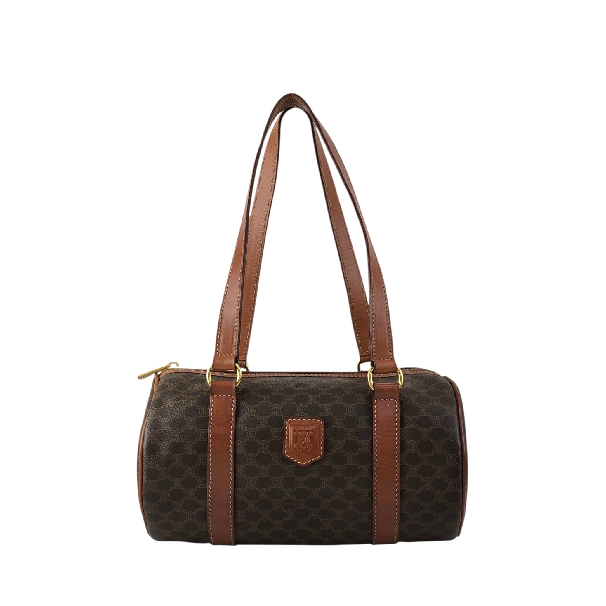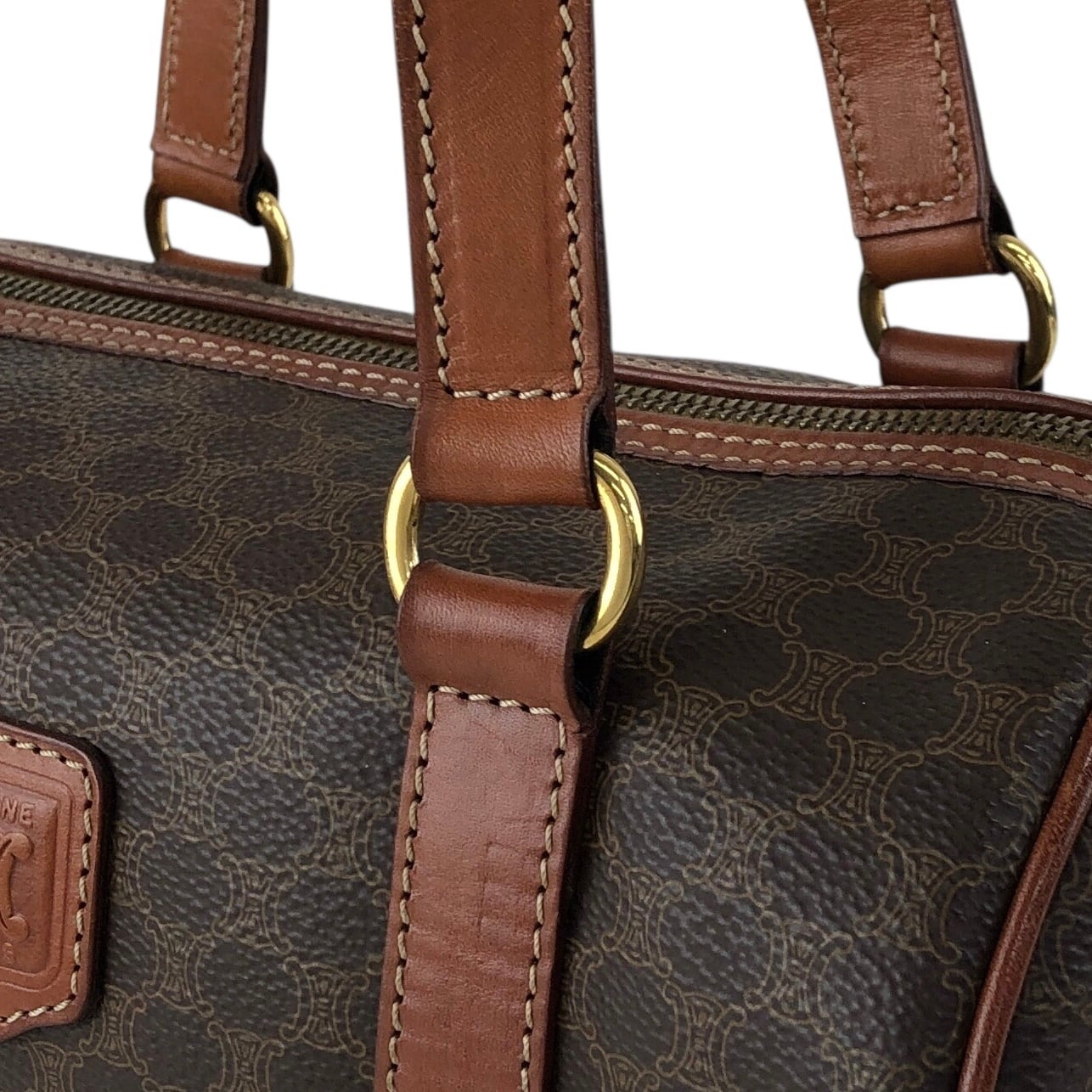 CELINE セリーヌ マカダム トートバッグ ブラウン ブラゾン型押し PVC レザー ロールバッグ vintage ヴィンテージ オールド d4wvhf