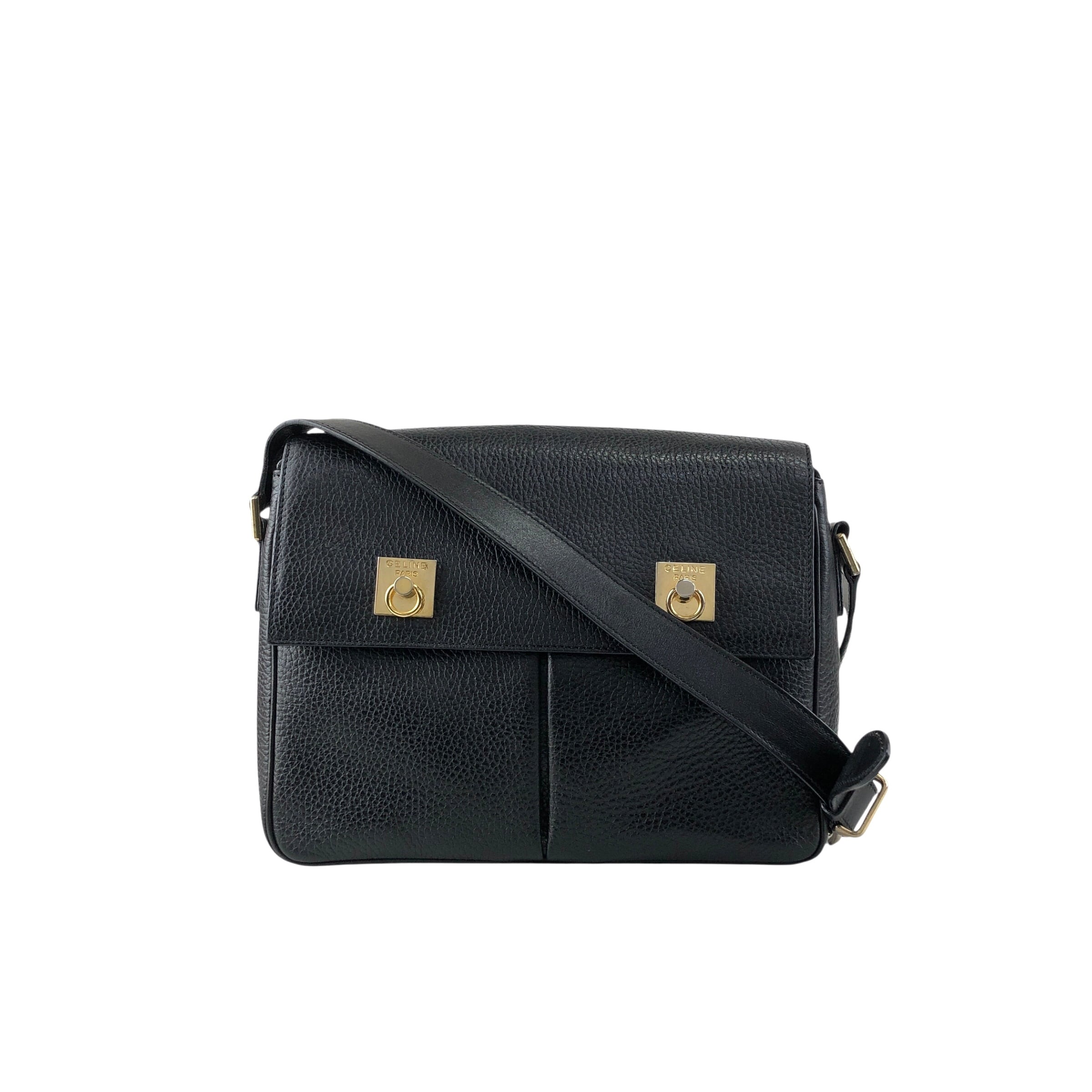 CELINE セリーヌ ショルダーバッグ ブラック ガンチーニ ダブル レザー vintage ヴィンテージ オールド s3twv4