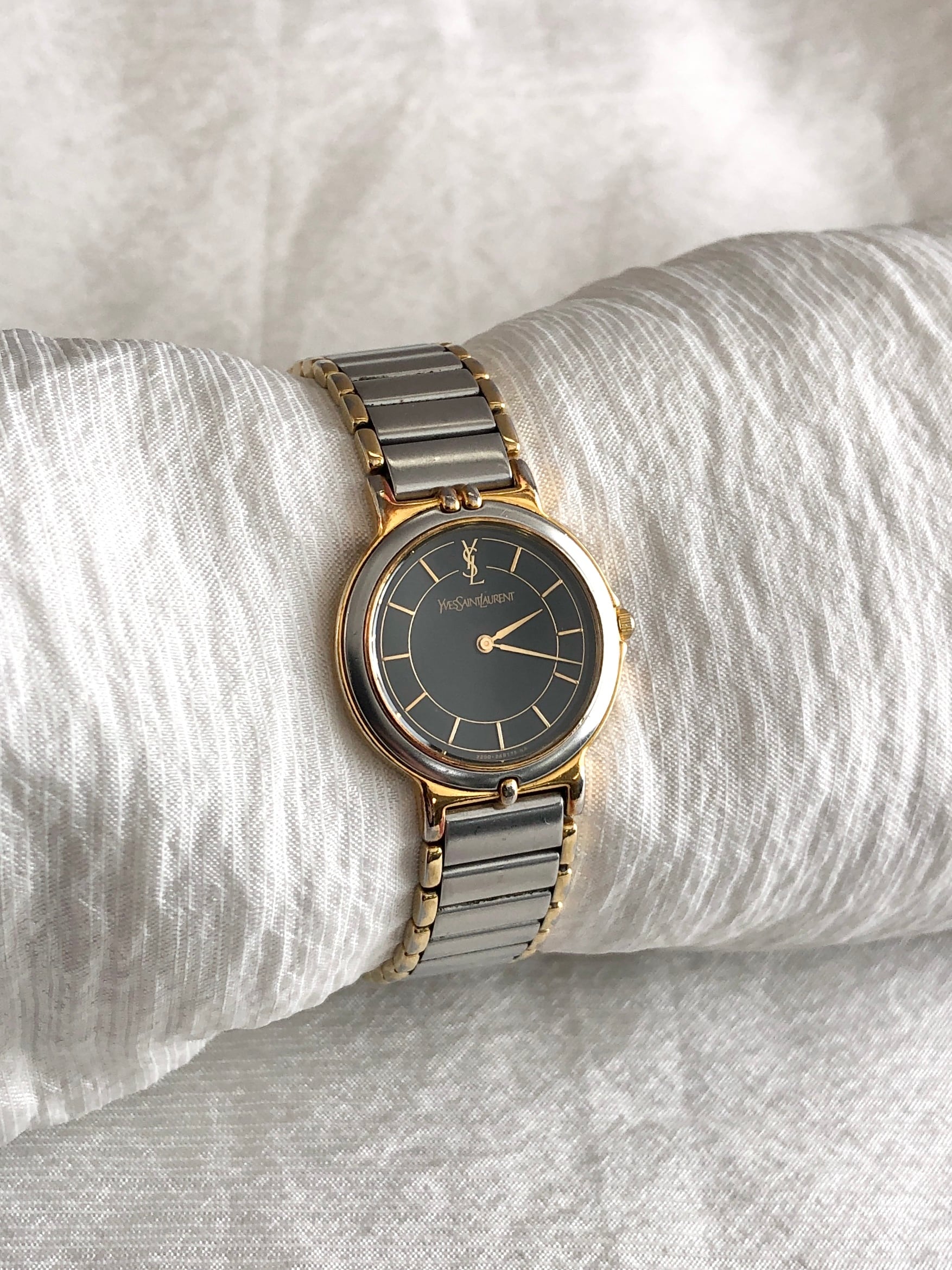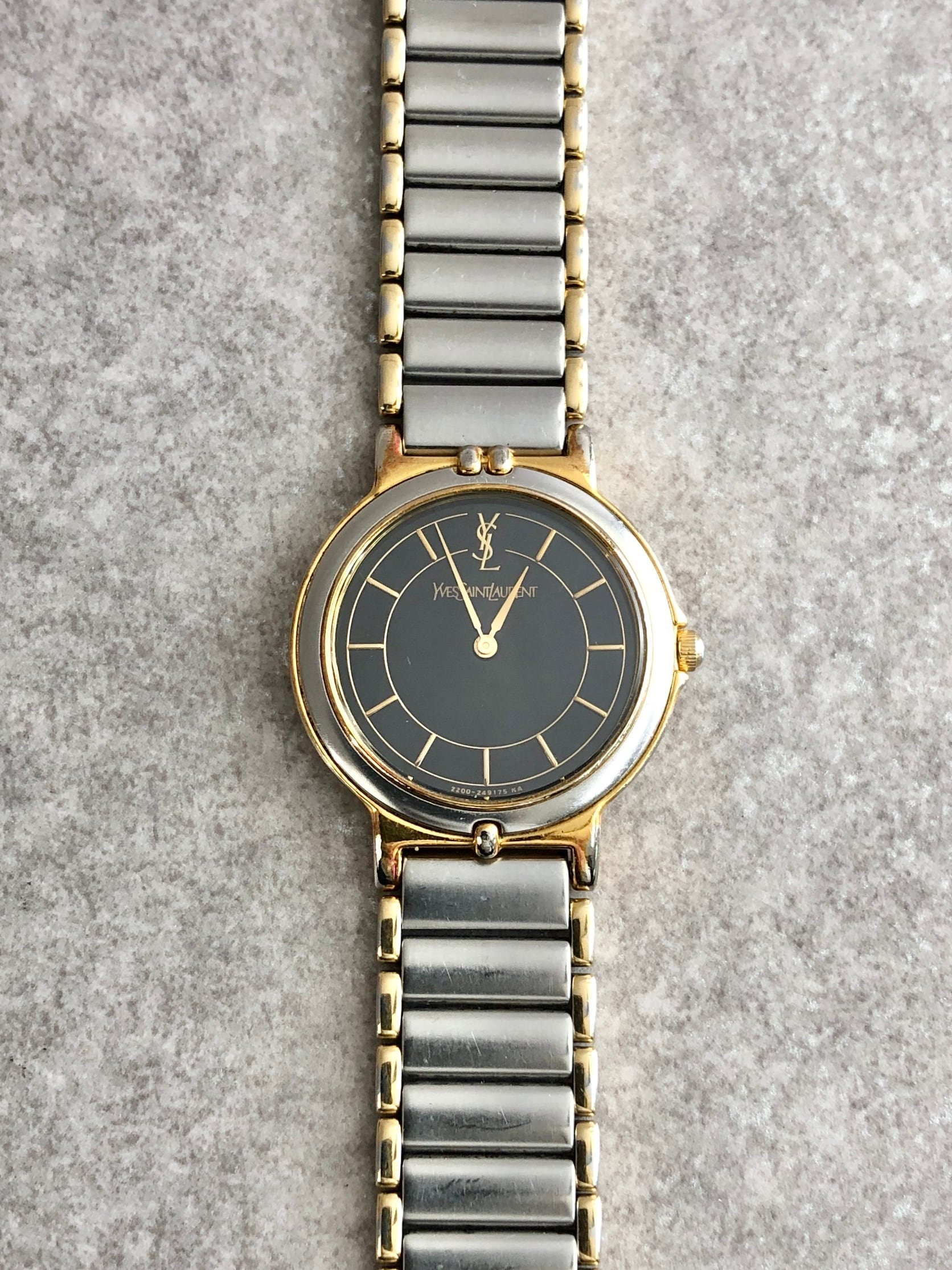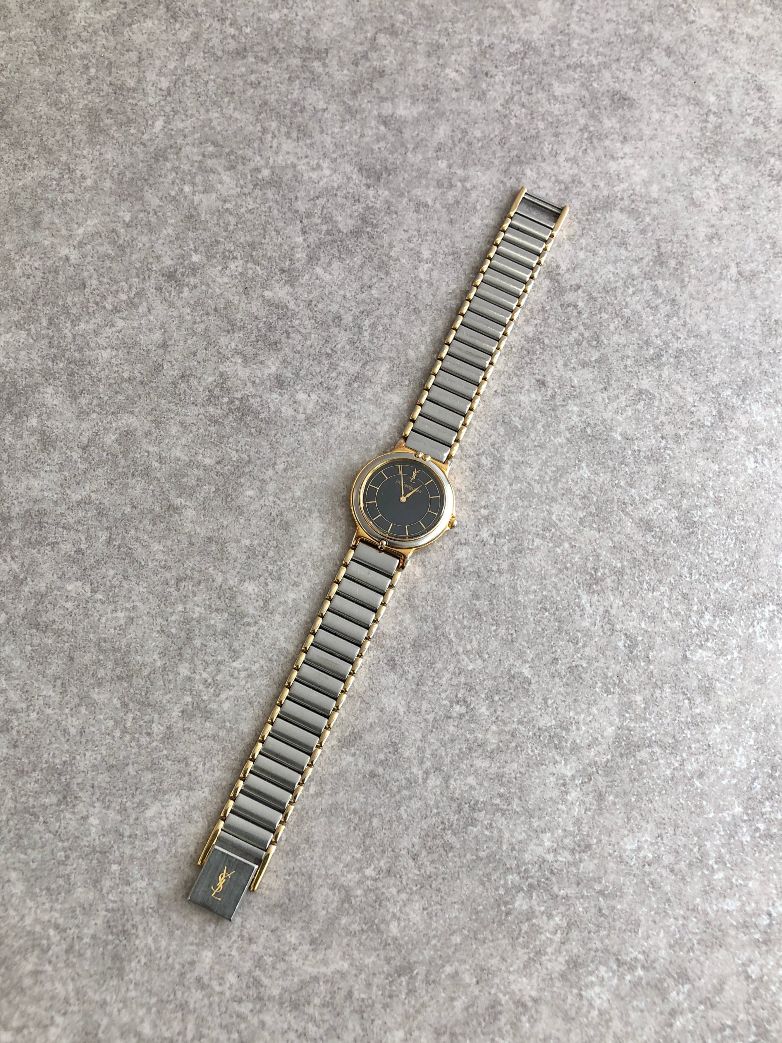 Yves Saint Laurent イヴ・サンローラン 腕時計 シルバー ブラック ステンレススチール クウォーツ 2200-228481 TA vintage ヴィンテージ オールド e56u24