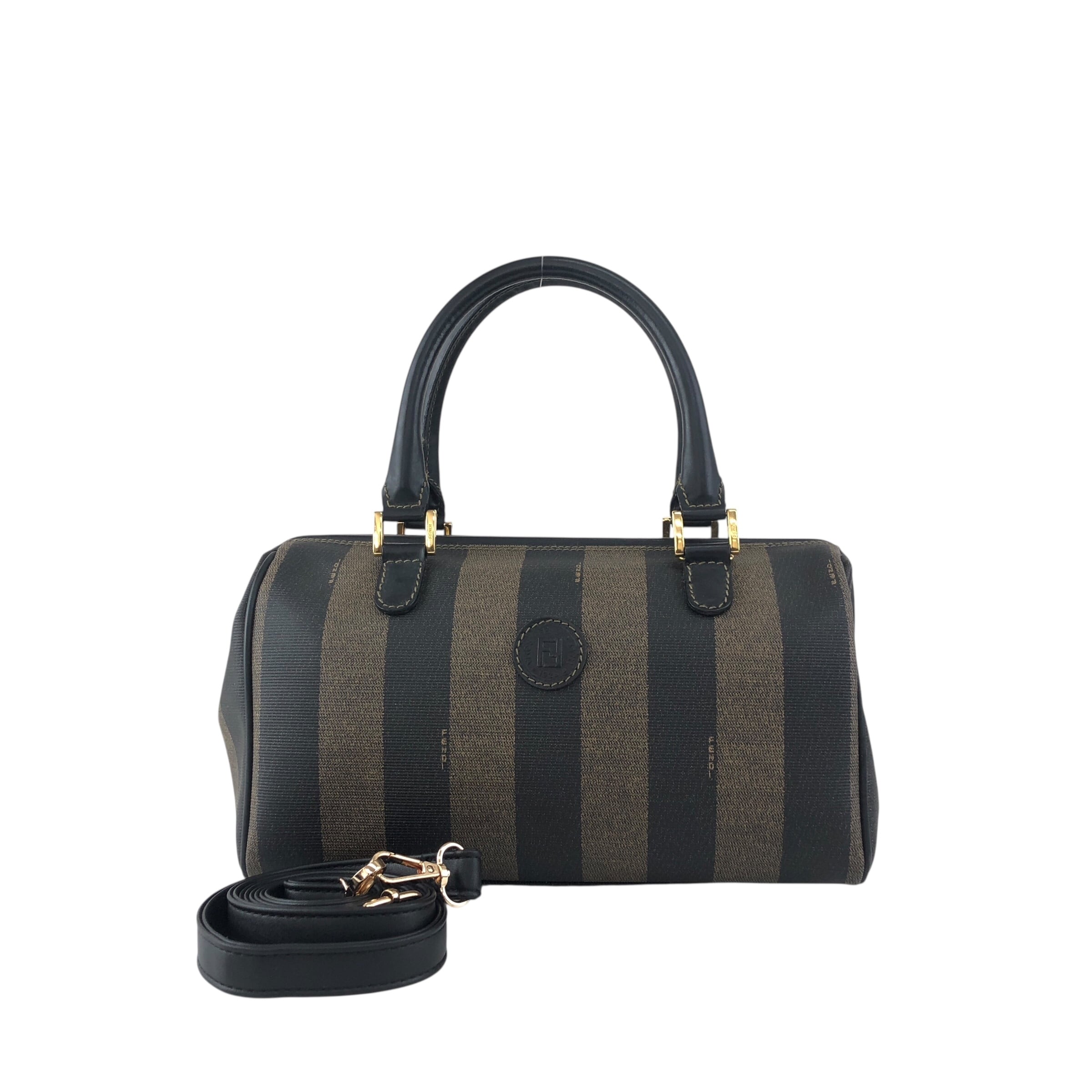FENDI フェンディ ペカン柄 ハンドバッグ ブラック PVCレザー 2WAY ミニボストン vintage ヴィンテージ オールド 63dppy