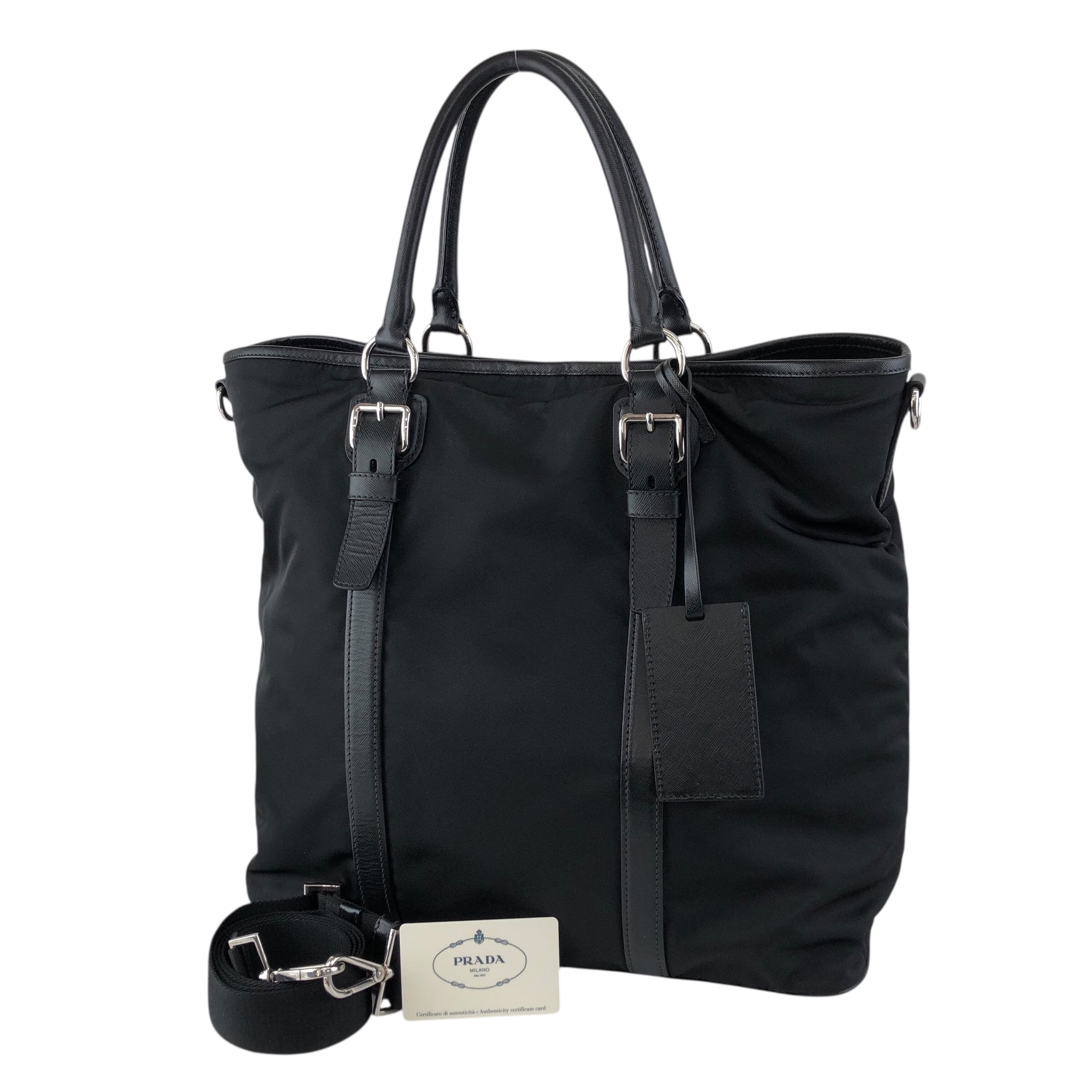 PRADA プラダ トートバッグ ブラック トライアングルロゴ レザー ナイロン 2way サフィアーノ vintage ヴィンテージ オールド a75iug