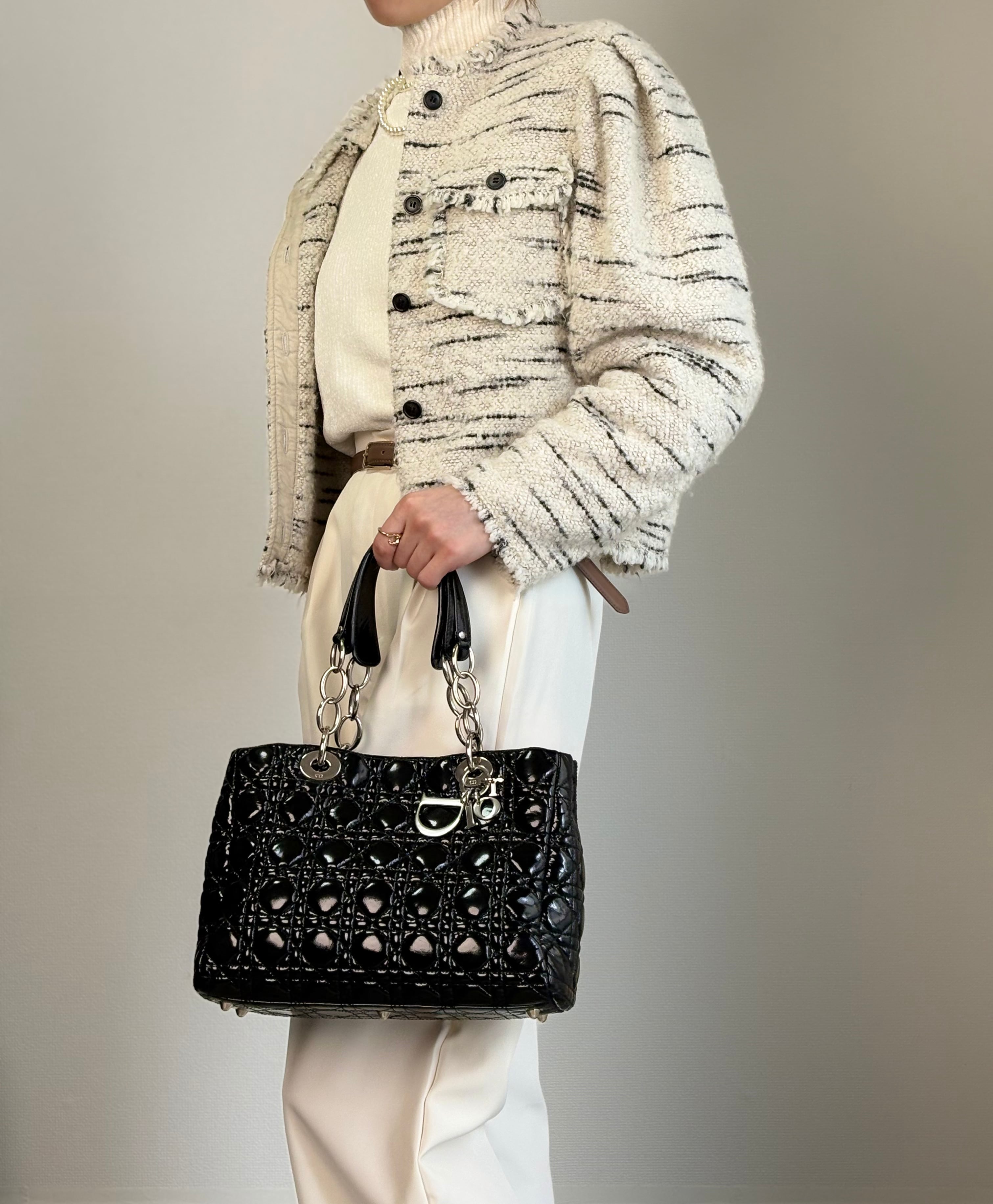 Christian Dior クリスチャン ディオール ハンドバッグ ブラック カナージュ エナメルレザー チェーン vintage ヴィンテージ オールド dthmxy