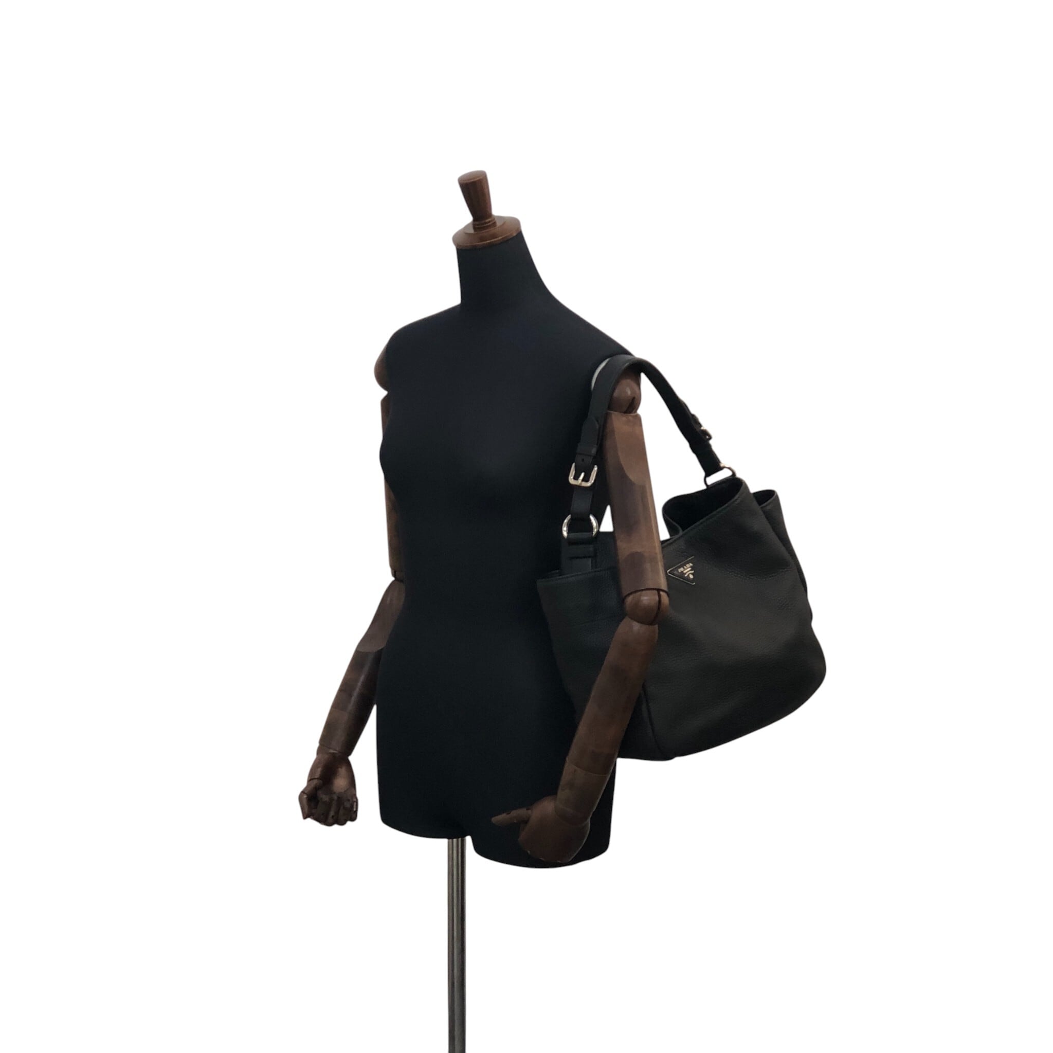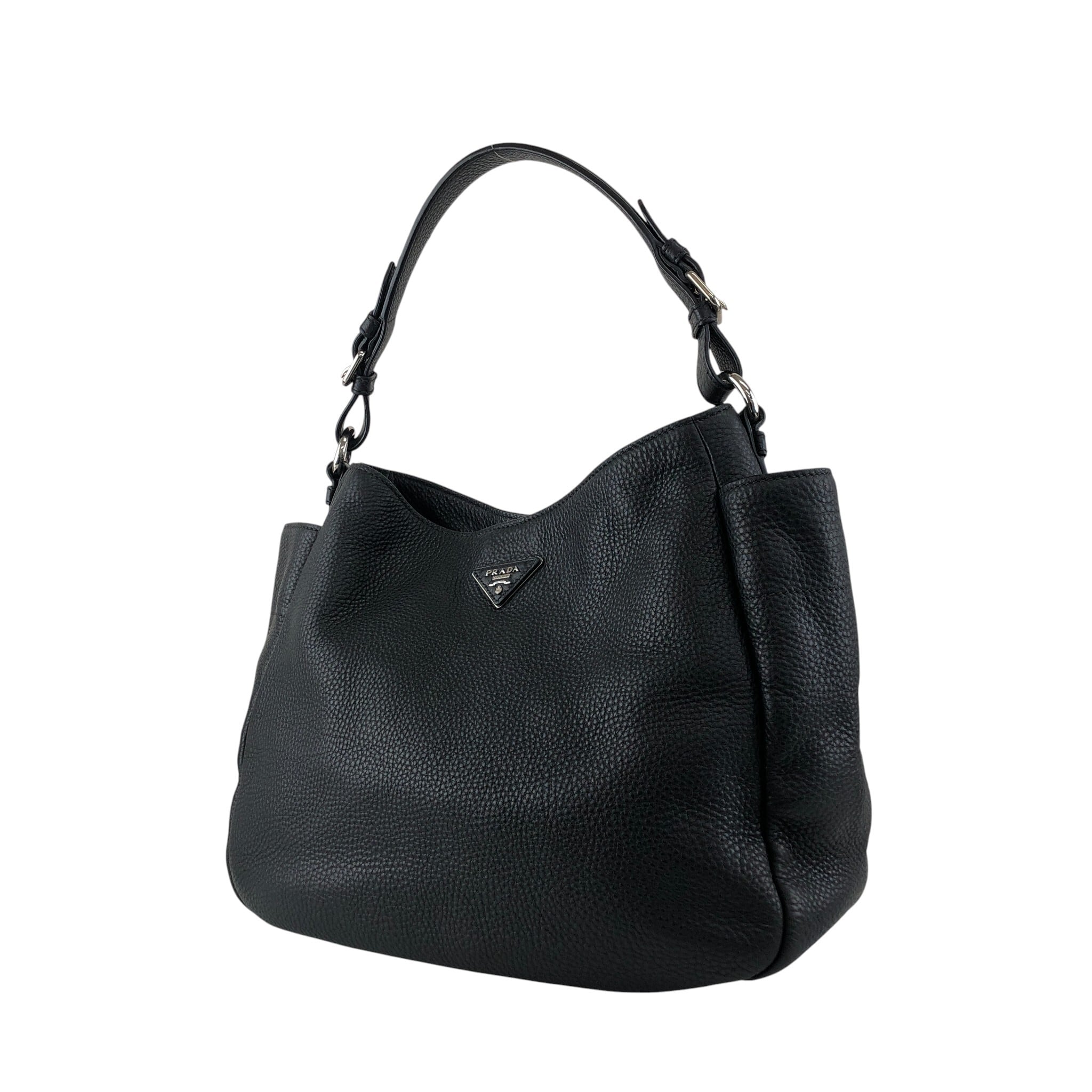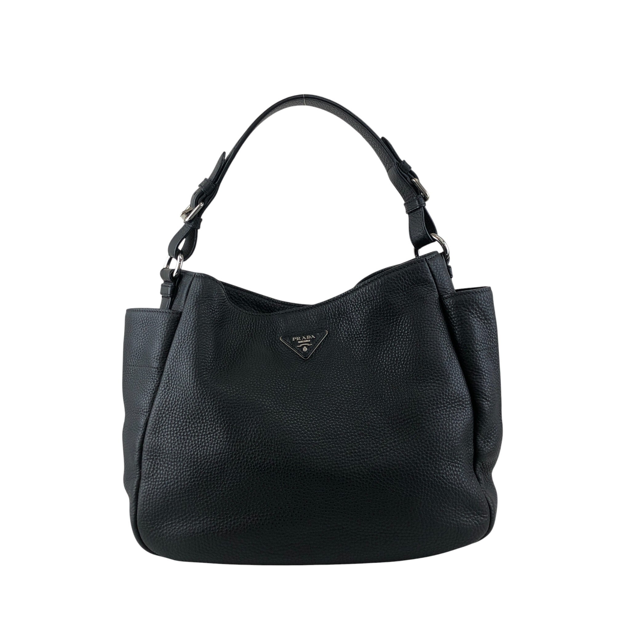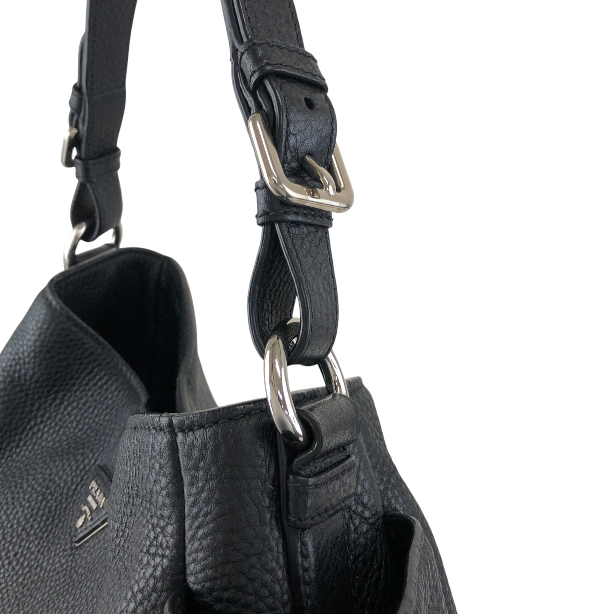 PRADA プラダ ショルダーバッグ ブラック トライアングルロゴ レザー サイドポケット セミショルダーバッグ vintage ヴィンテージ オールド wr45fx