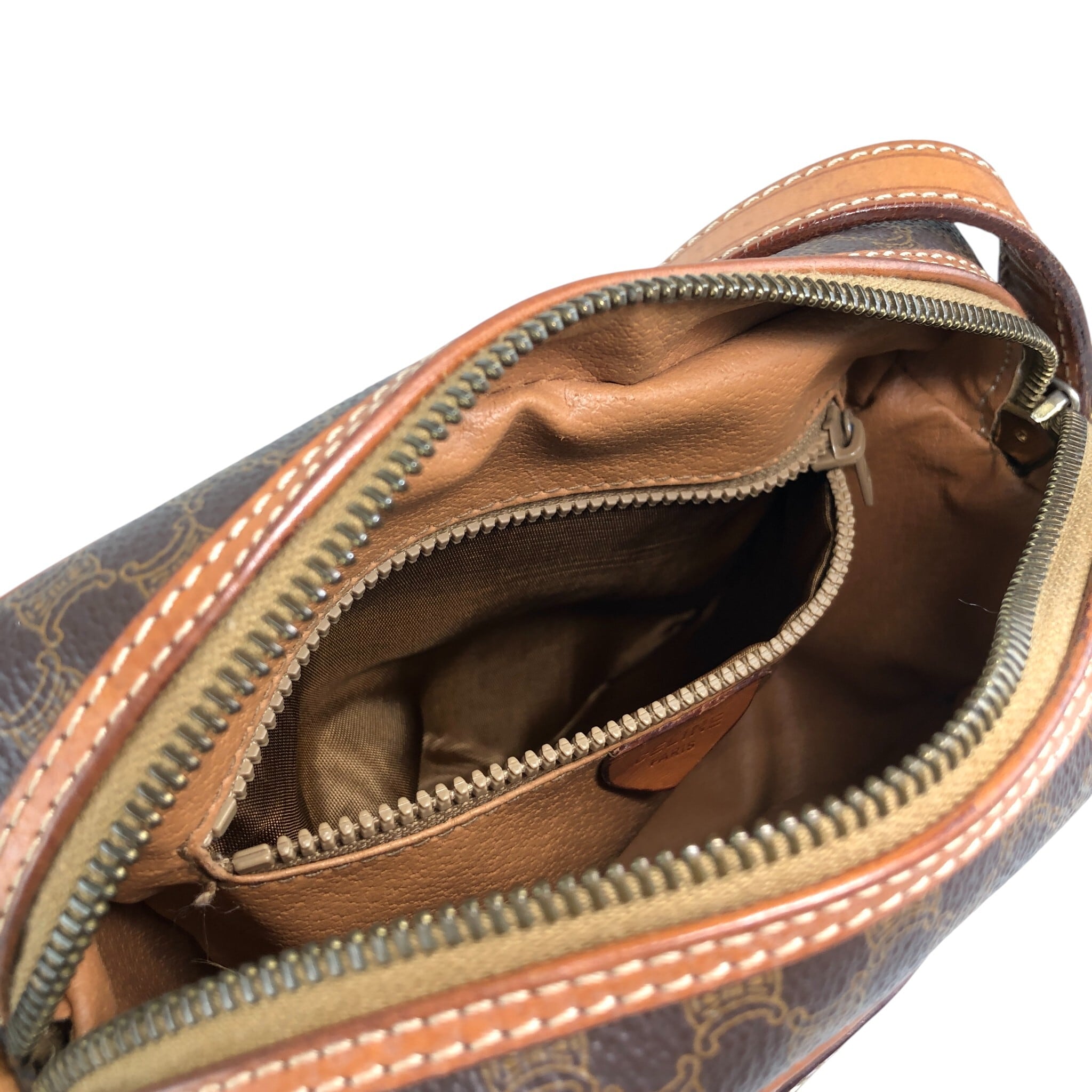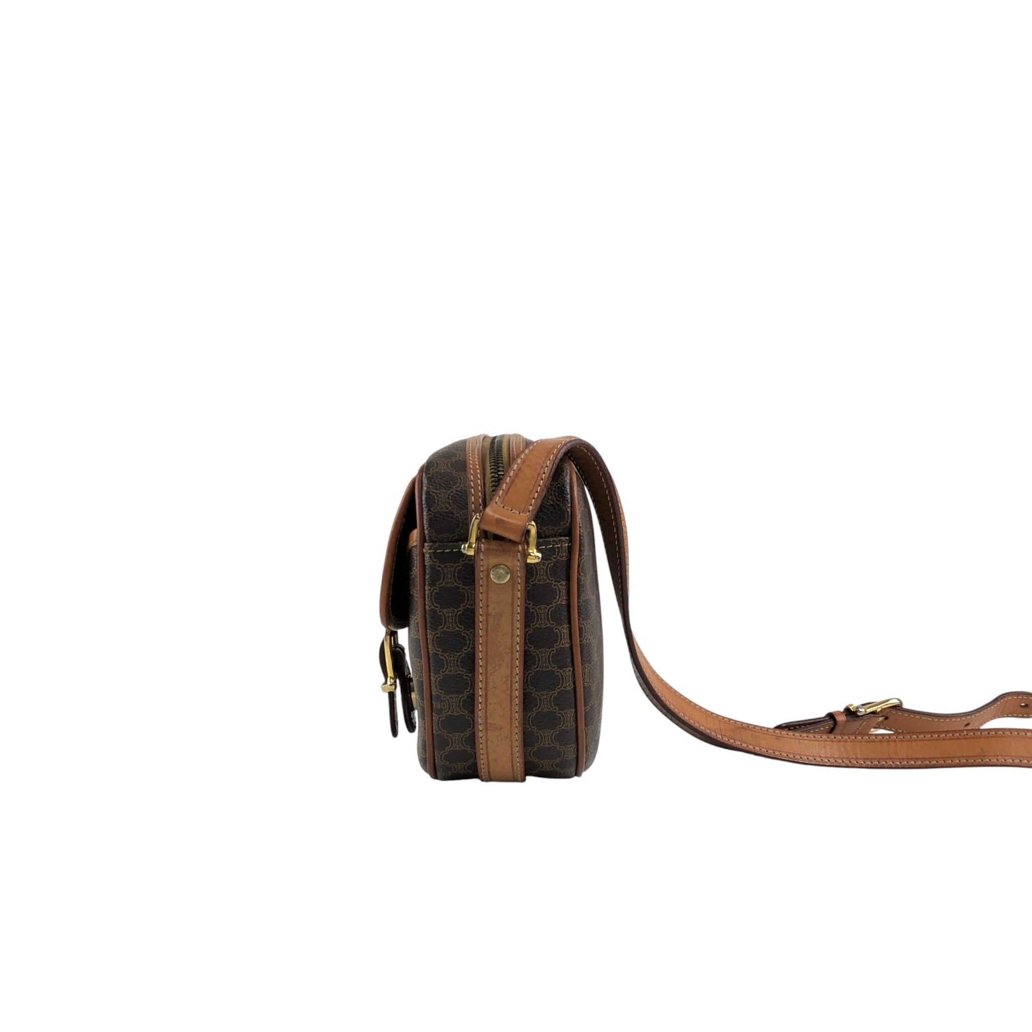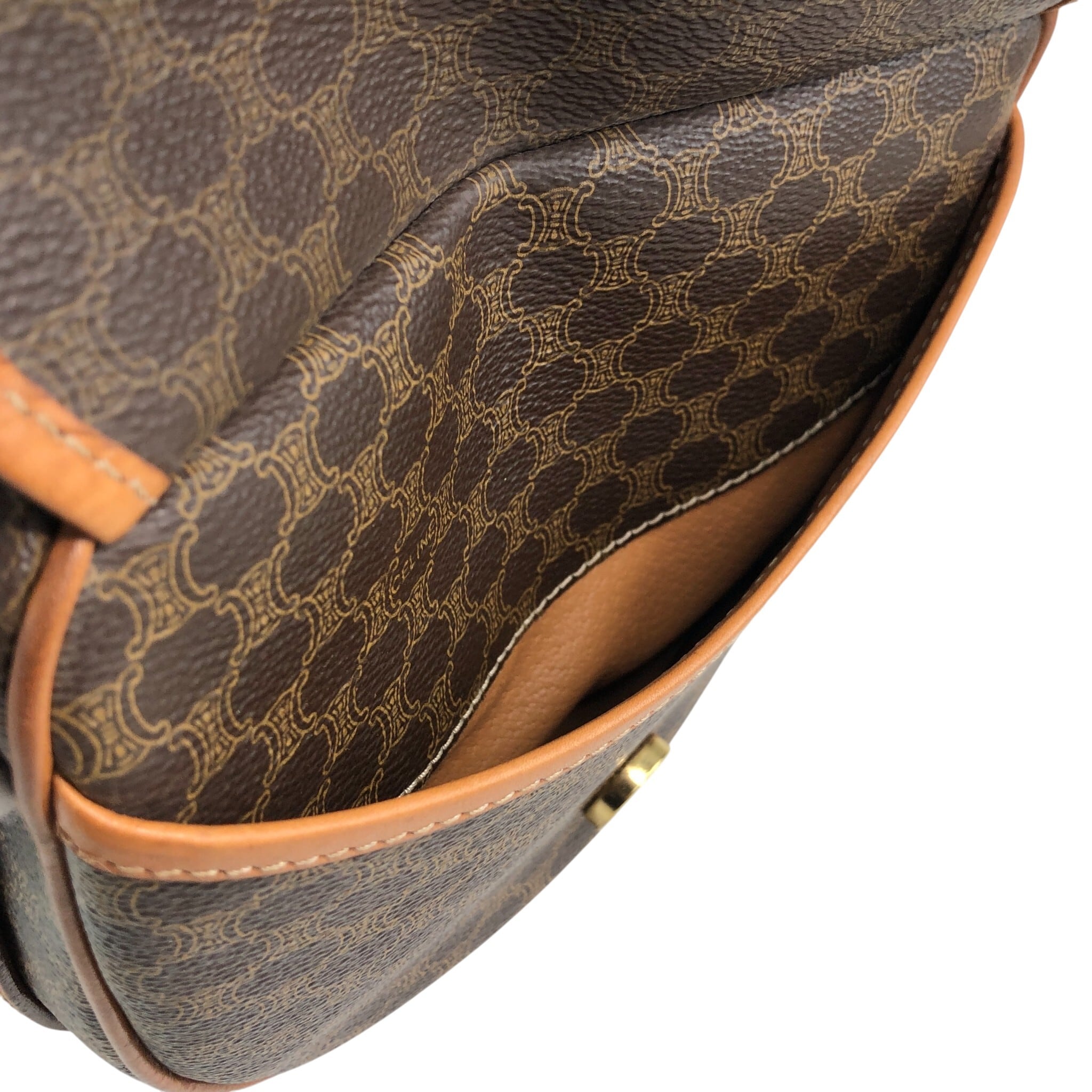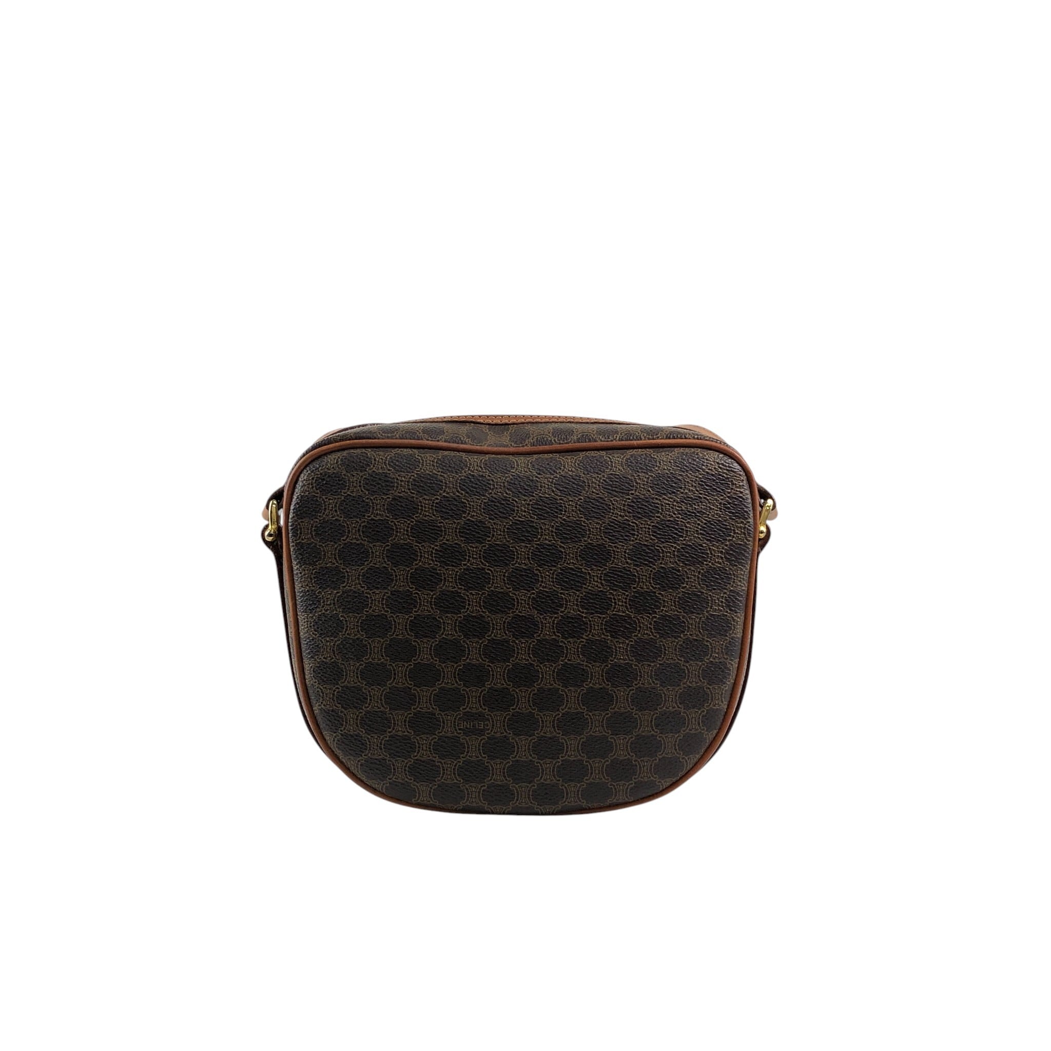 CELINE セリーヌ マカダム ショルダーバッグ ブラウン ブラゾン型押し フロントバックル PVC レザー vintage ヴィンテージ オールド 8awzkp