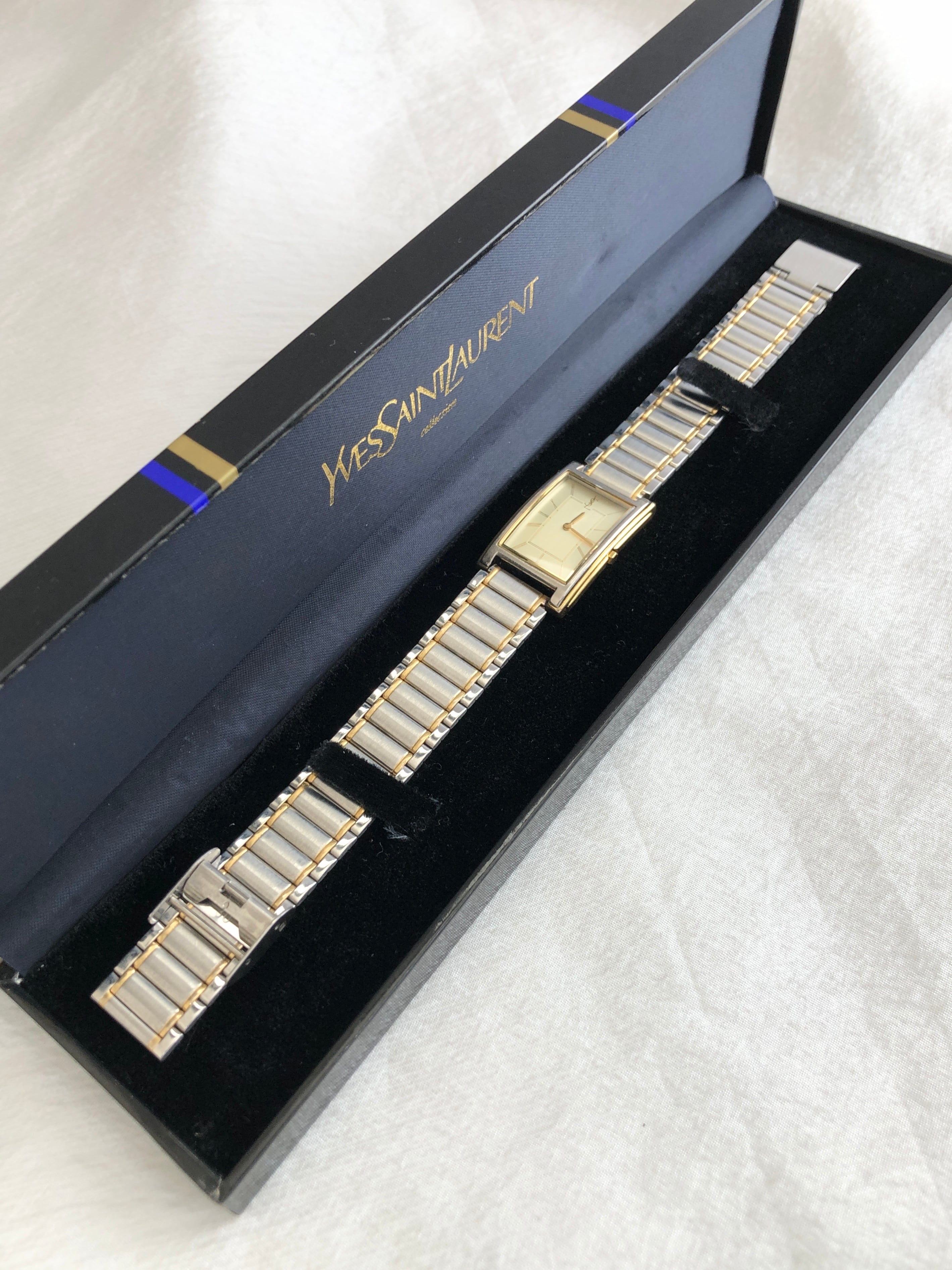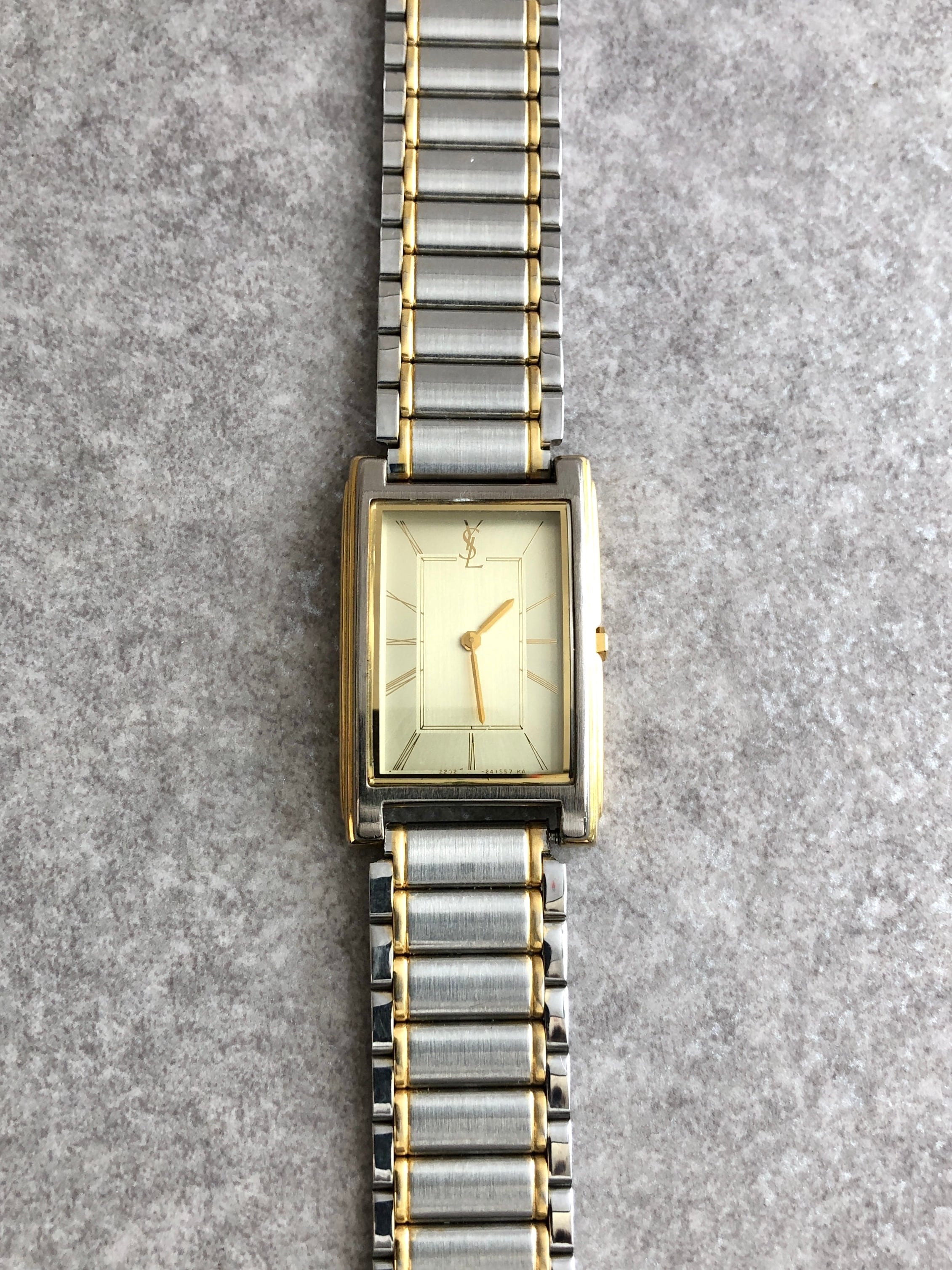 Yves Saint Laurent イヴ・サンローラン 腕時計 シルバー レクタンギュラ ステンレススチール クウォーツ vintage ヴィンテージ オールド ccijzb