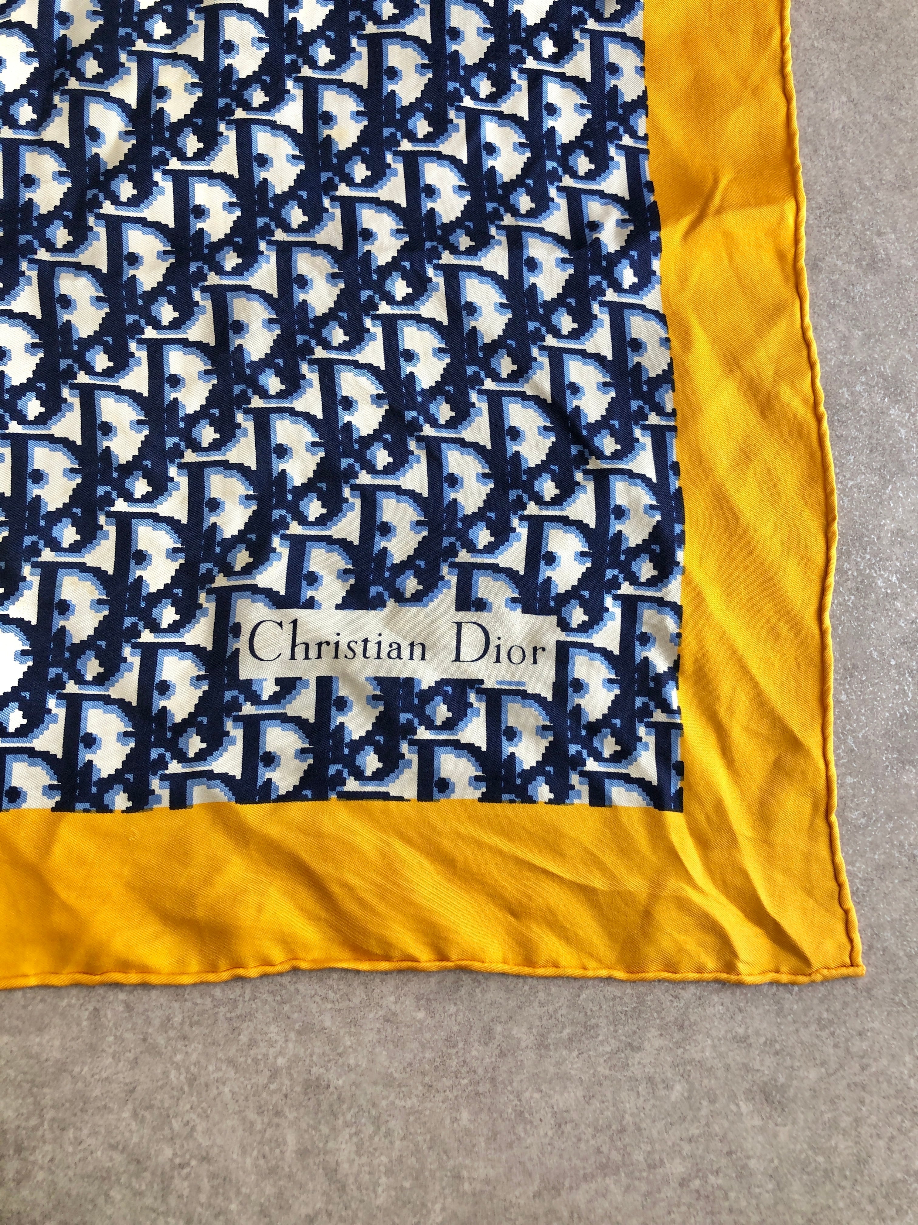 Christian Dior クリスチャン ディオール スカーフ オレンジ×ネイビー トロッター シルク vintage ヴィンテージ オールド 8kdkey