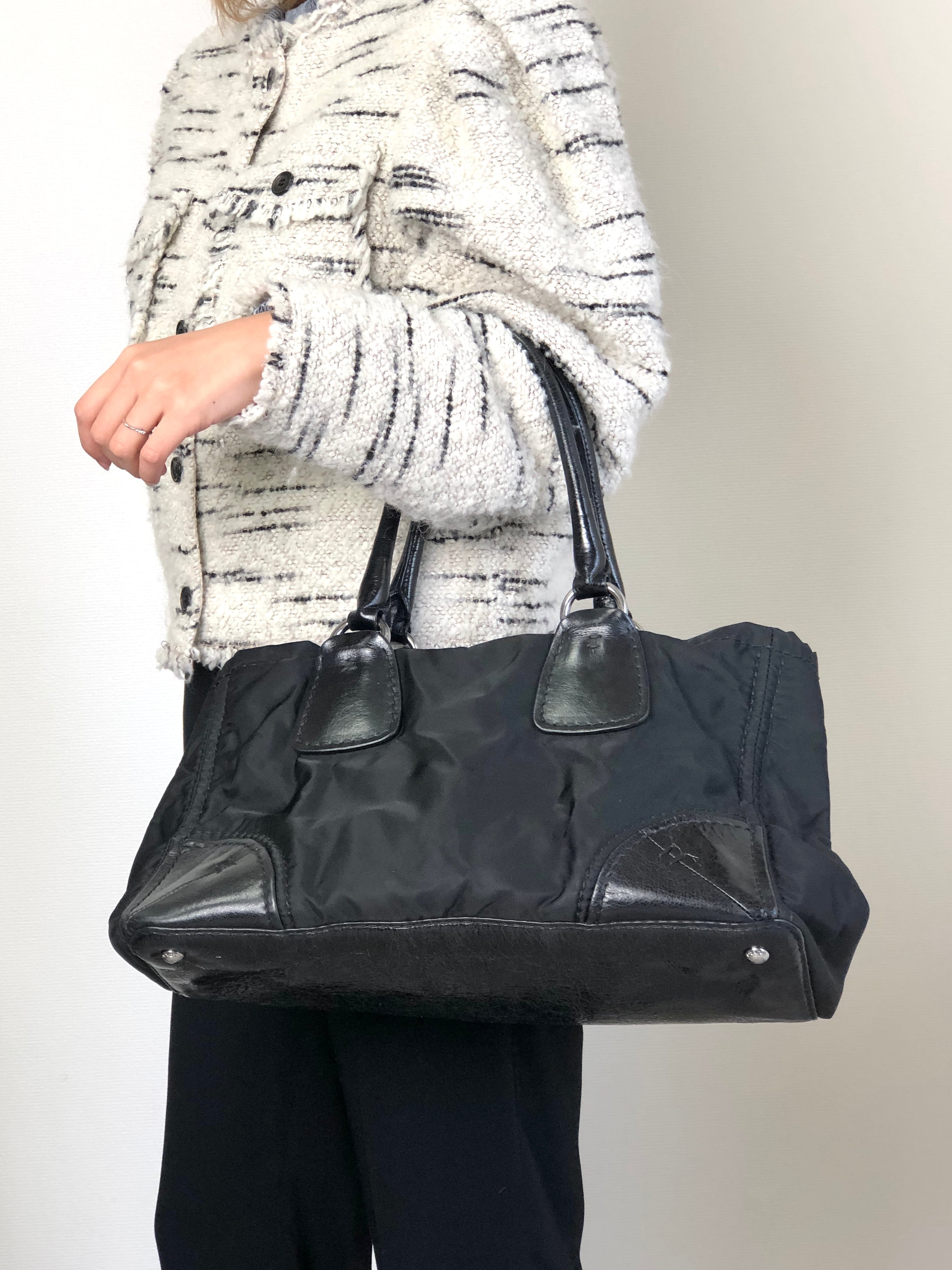 PRADA プラダ トートバッグ ブラック トライアングルロゴ レザー 加工 vintage ヴィンテージ オールド wd67a4