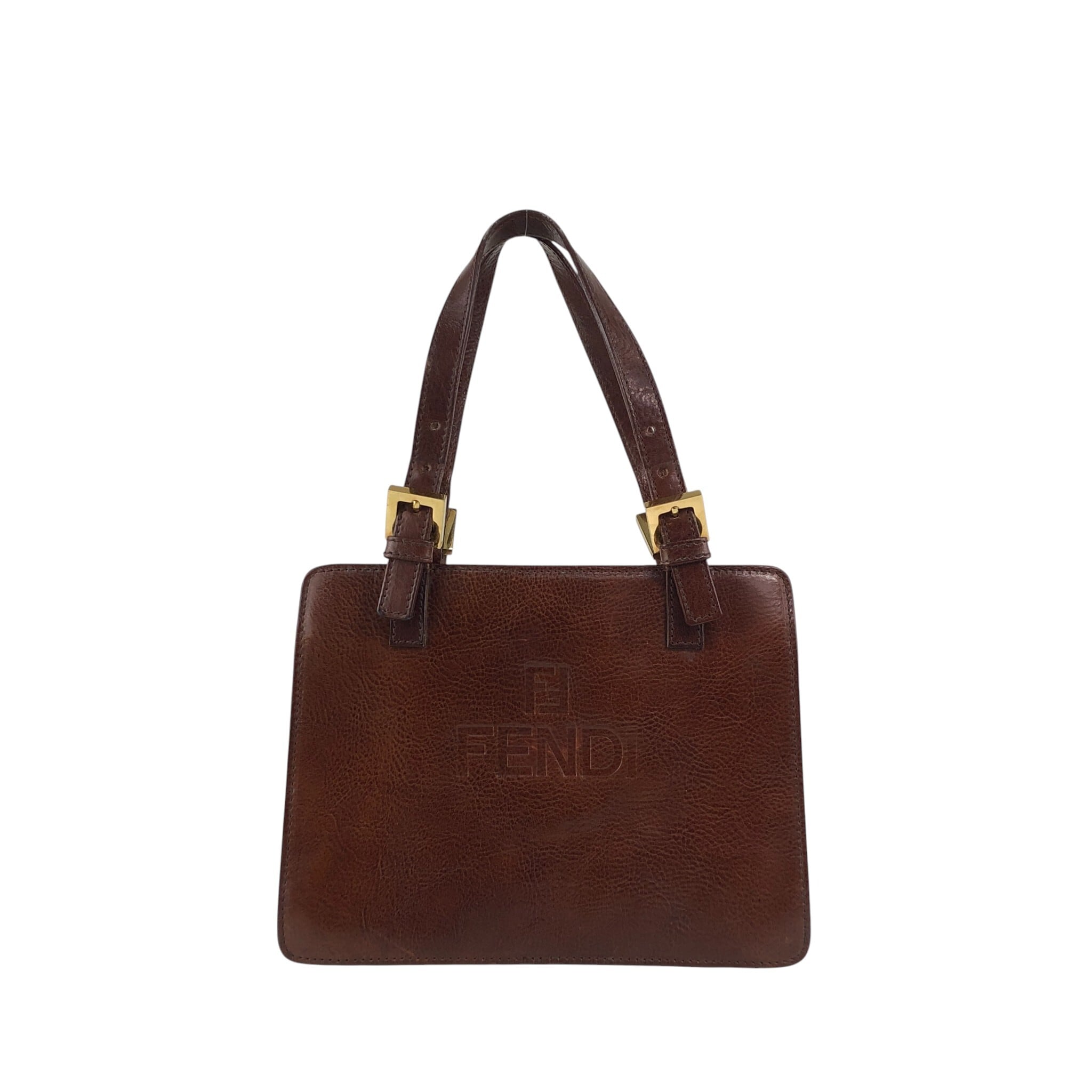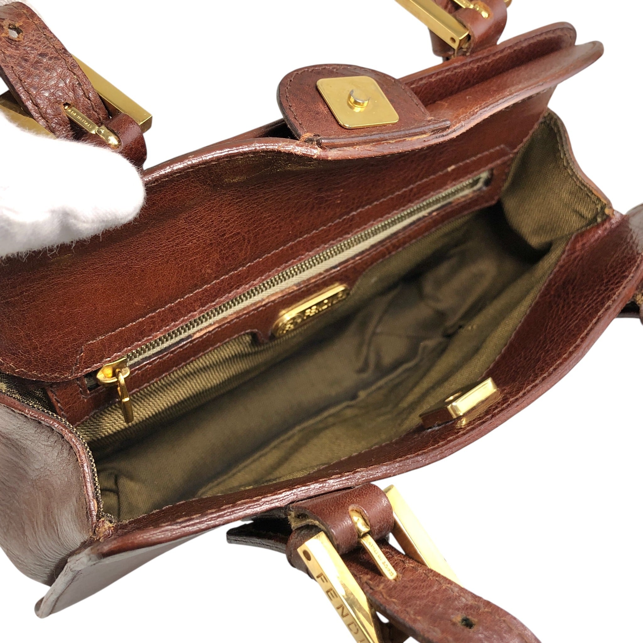 FENDI フェンディ ハンドバッグ ブラウン ロゴ レザー vintage ヴィンテージ オールド 8dvn7y