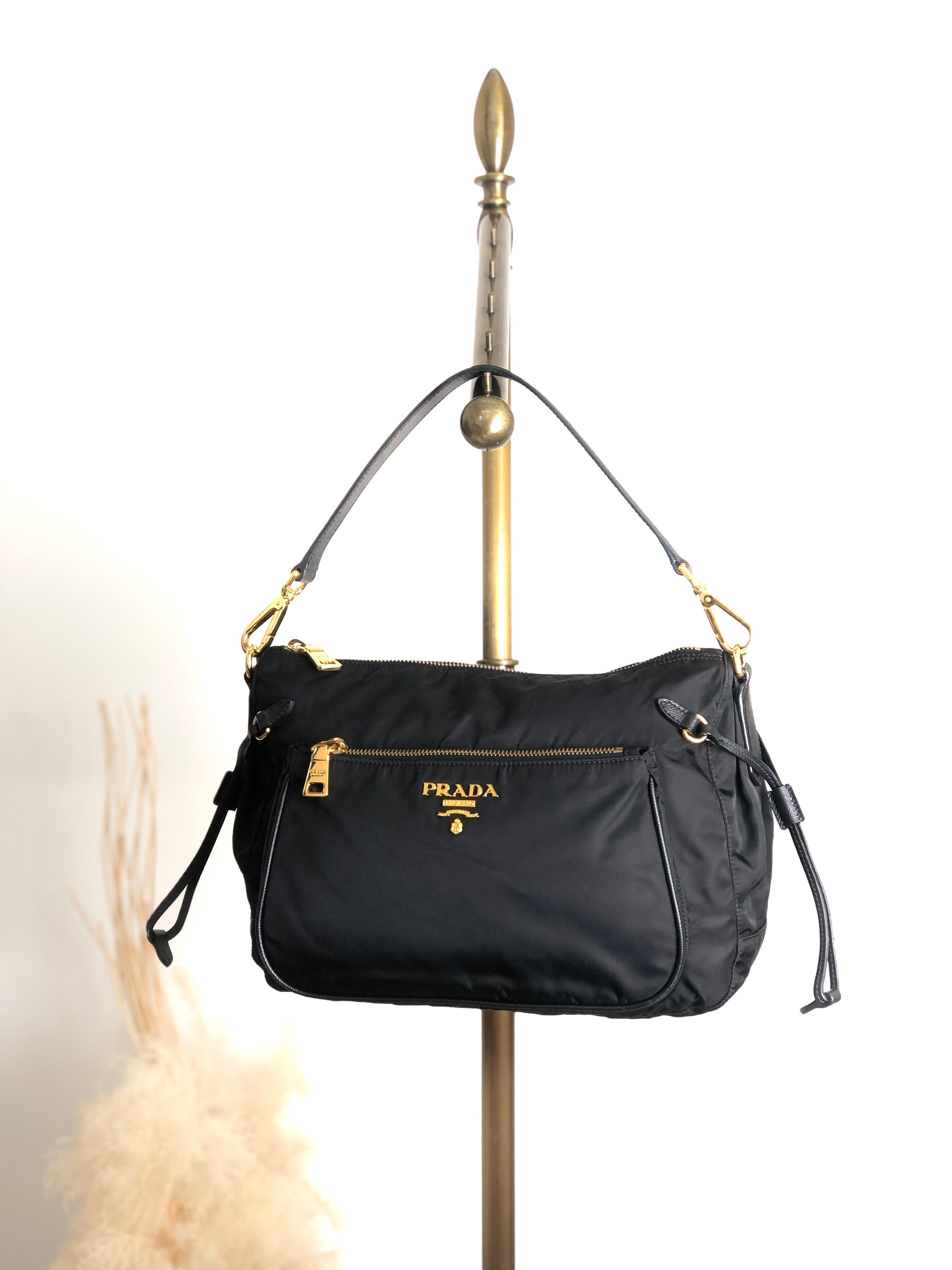 PRADA プラダ ハンドバッグ ブラック トライアングルロゴ ナイロン レザー vintage ヴィンテージ オールド pbc6hh
