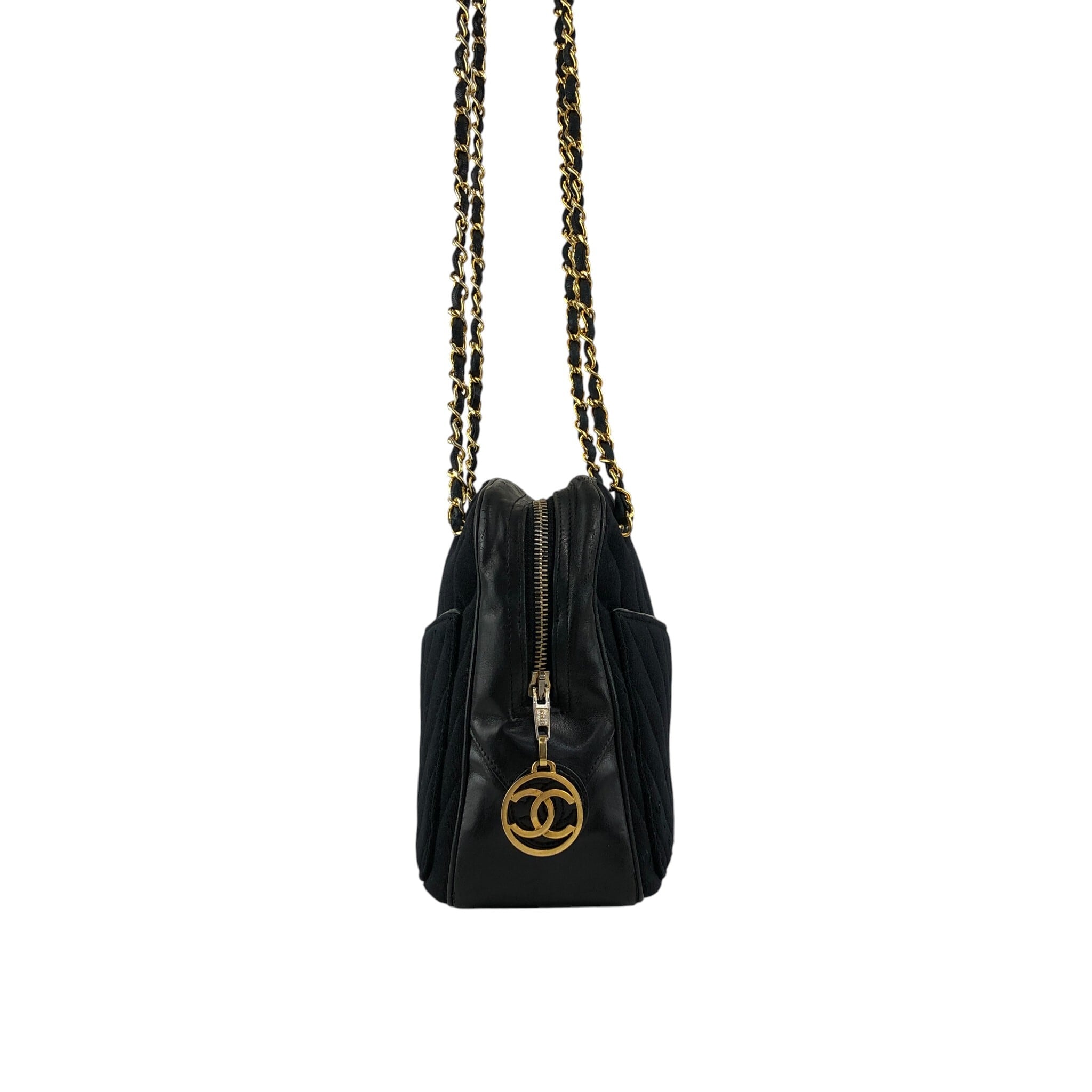 CHANEL シャネル ショルダーバッグ ブラック ココチャーム コットン シェブロン チェーン vintage ヴィンテージ オールド akbfxb