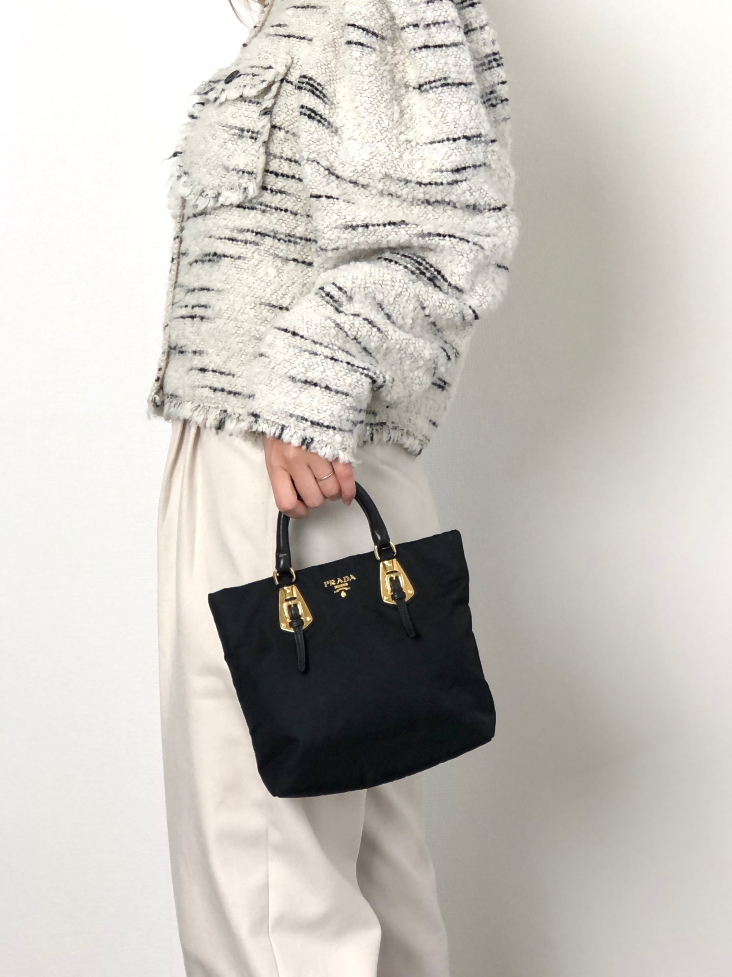 PRADA プラダ ハンドバッグ ブラック ロゴ ベルトモチーフ ナイロン vintage ヴィンテージ オールド zm3r7k