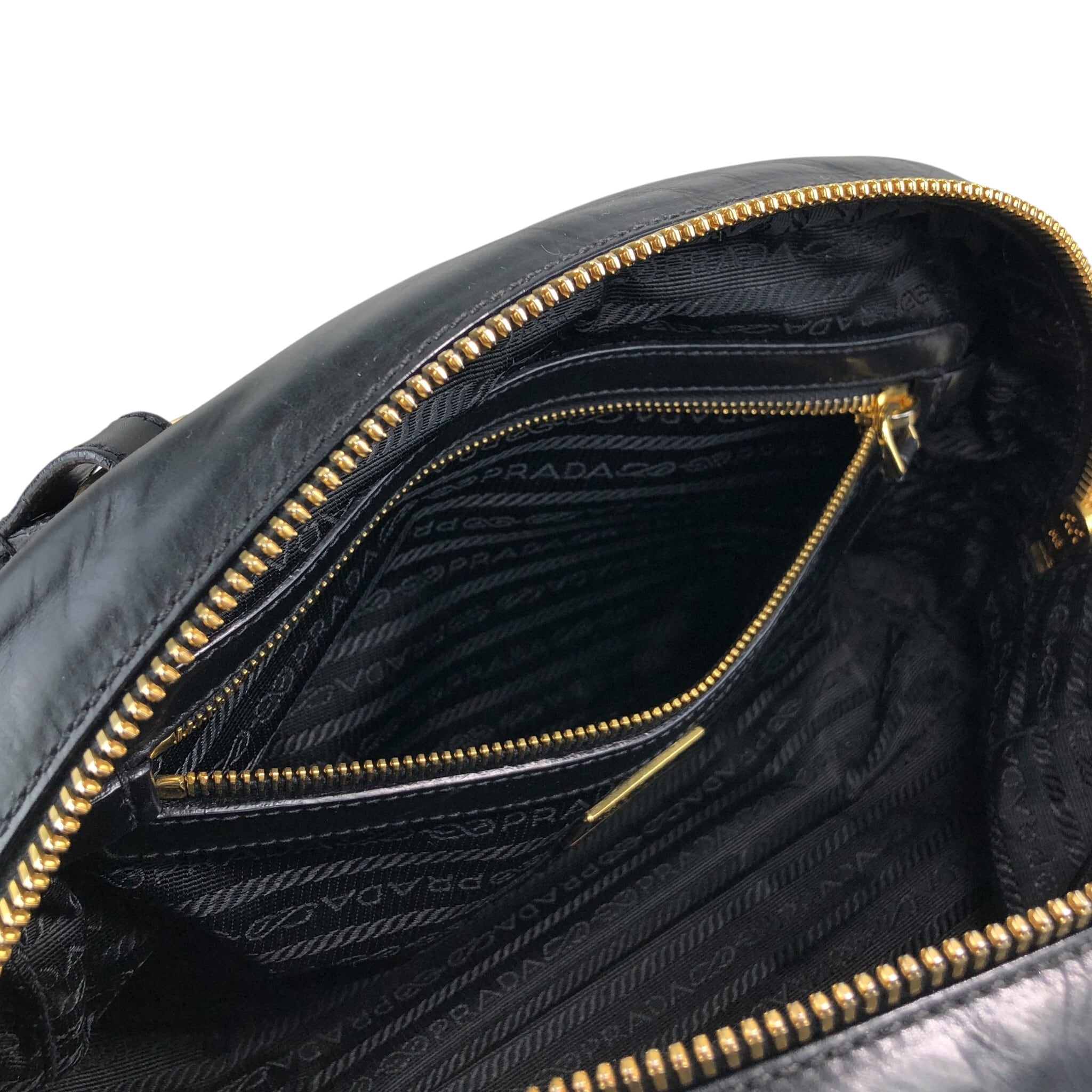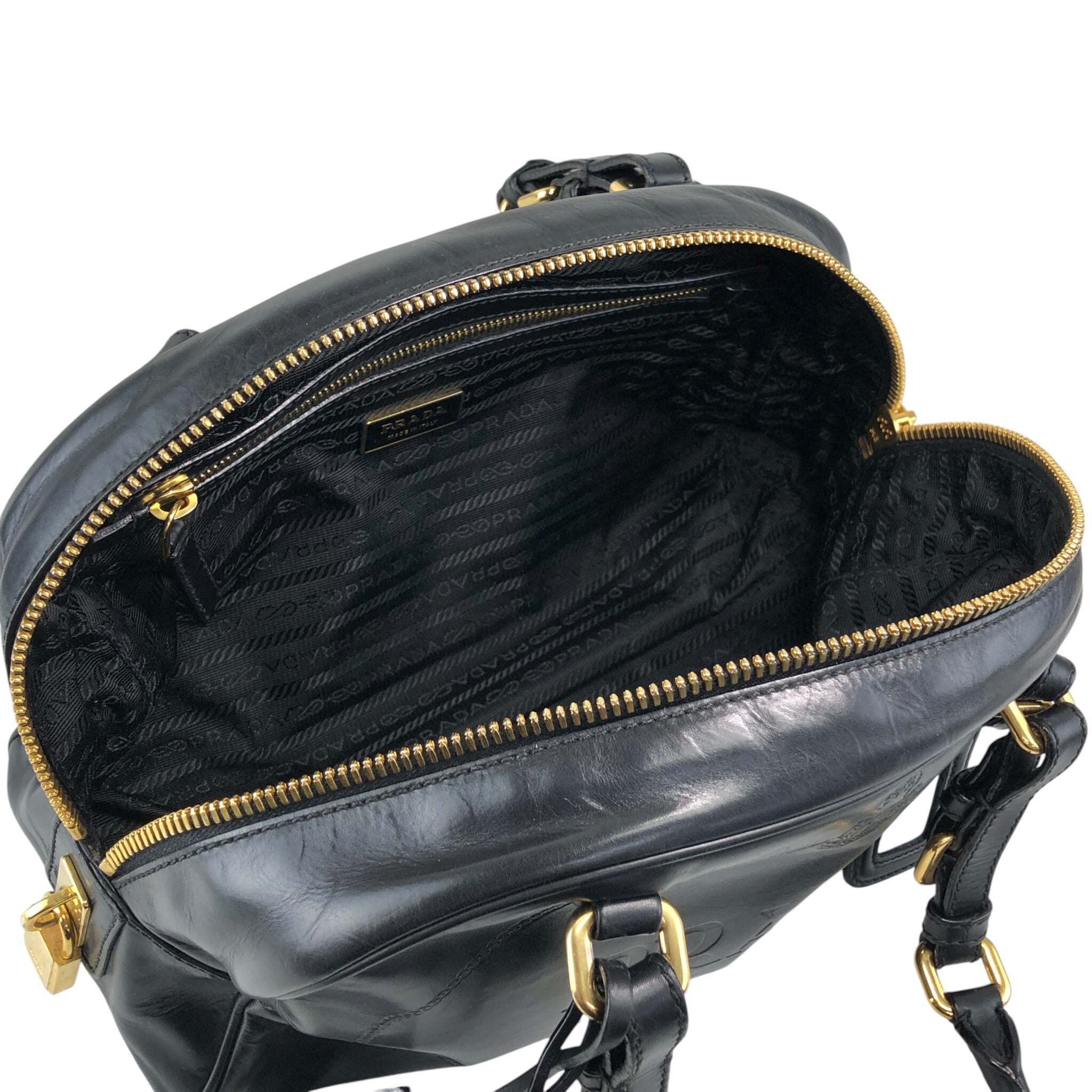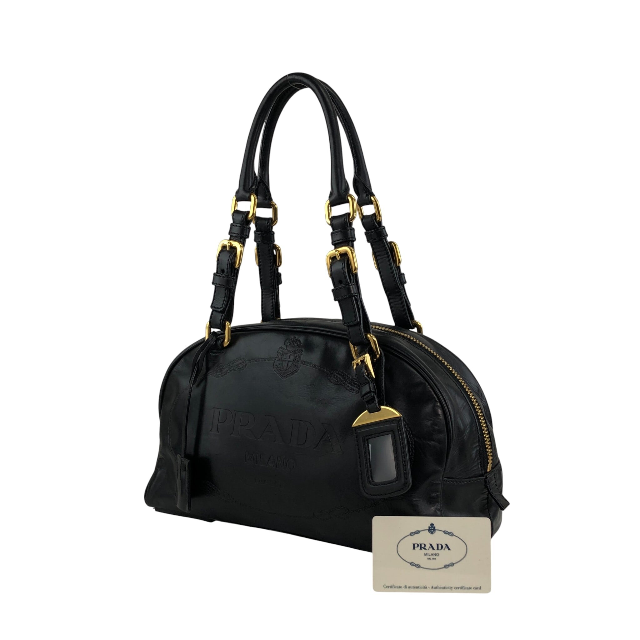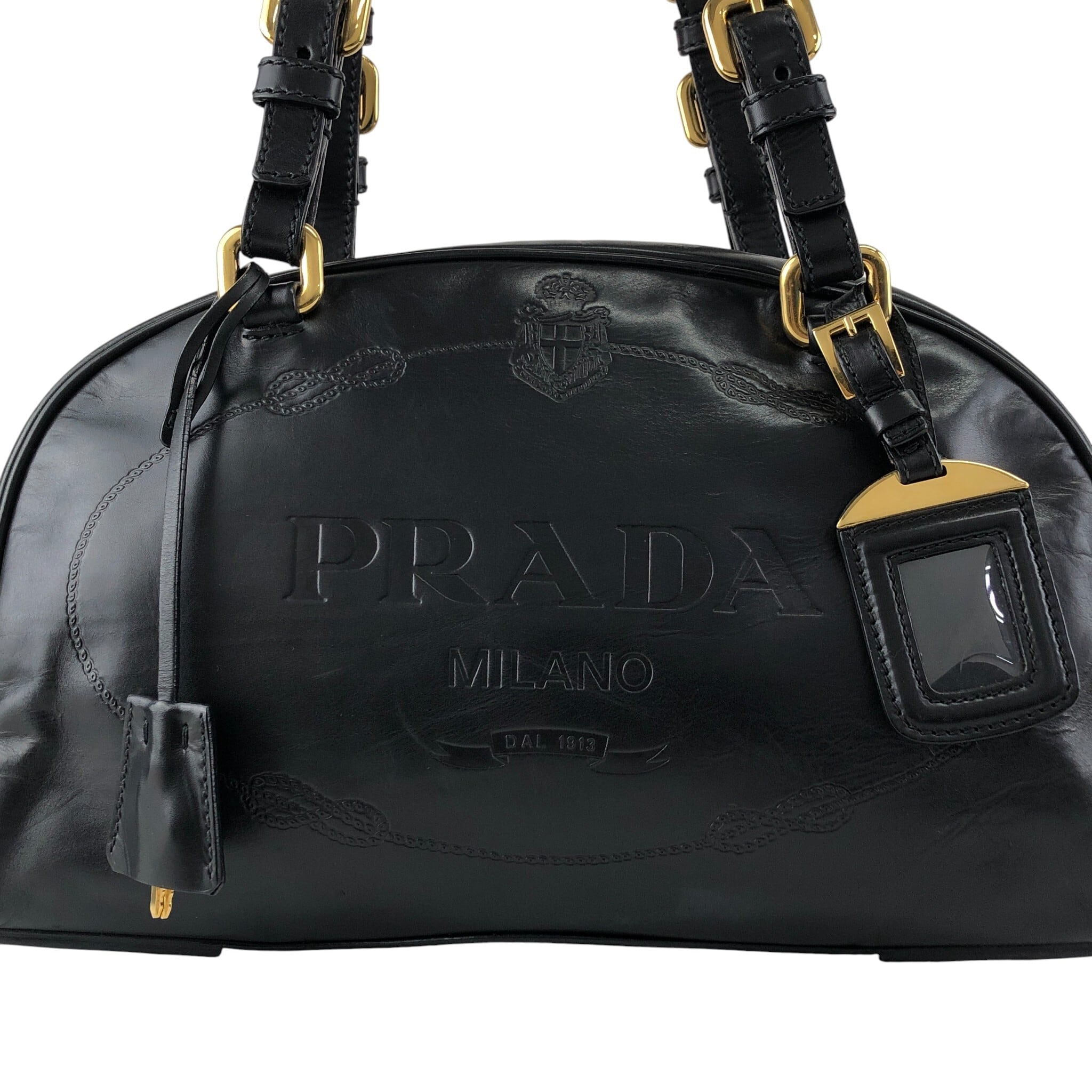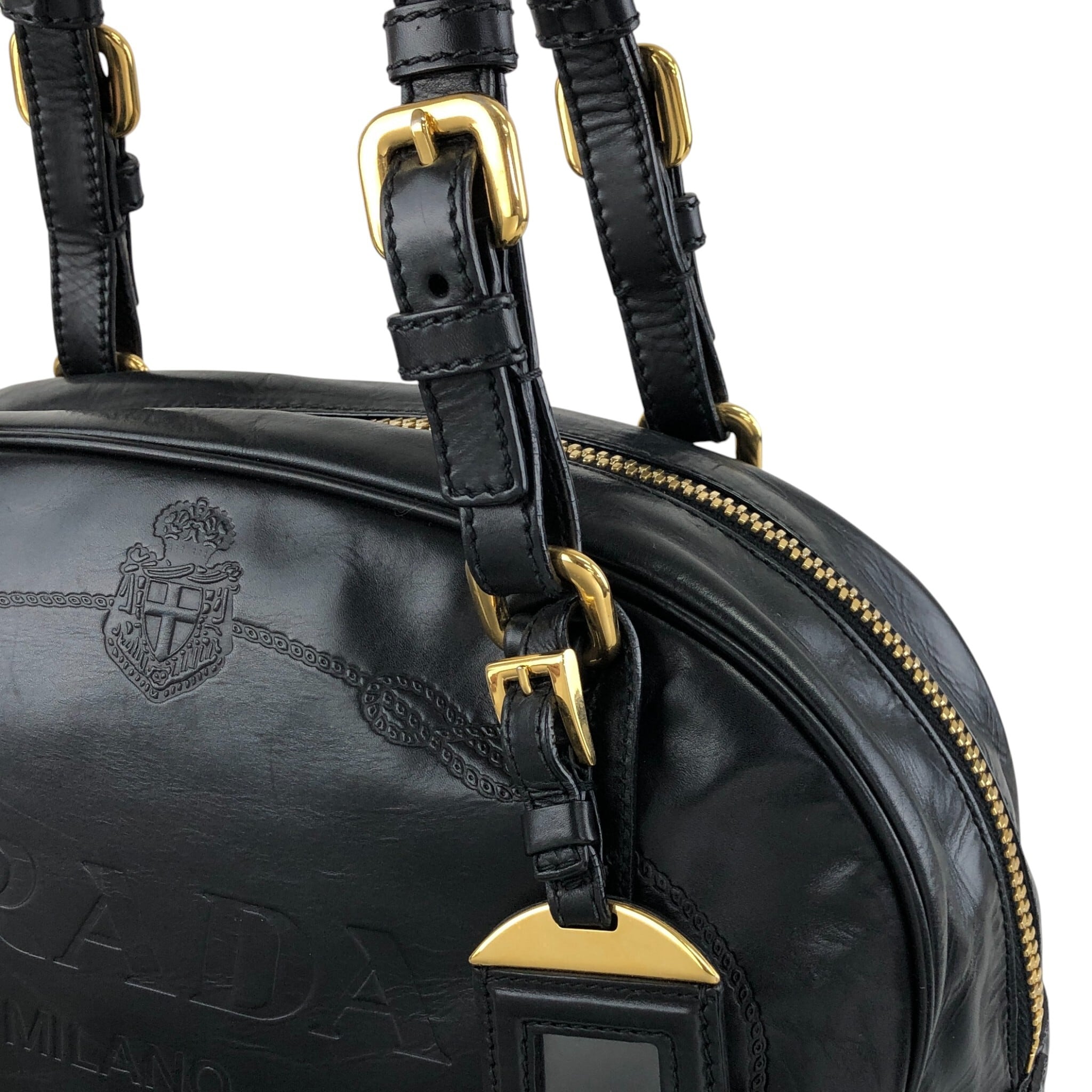 PRADA プラダ ハンドバッグ ブラック ロゴ型押し レザー ボストンバッグ vintage ヴィンテージ オールド nvtnhw